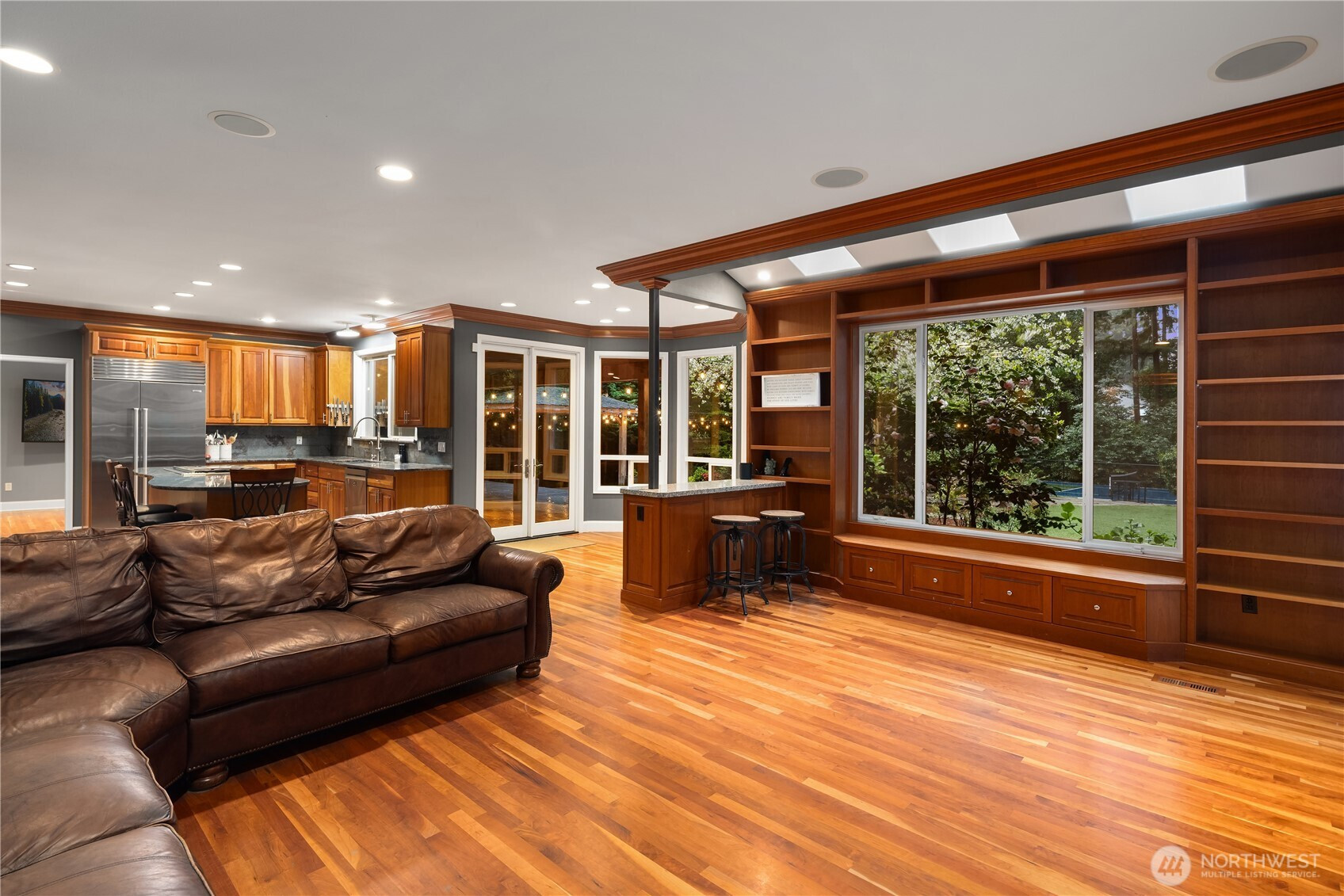 Set on an expansive 28,061 sq ft lot in the heart of Enatai, this beautifully designed Camwest home offers a rare blend of space, comfort, & lifestyle just minutes from downtown Bellevue, 520, and 405. Hardwood floors, dual staircases, a private office, & refined formal spaces create a sense of quiet sophistication, all leading to a chef’s kitchen with a Wolf range, Subzero refrigerator, & an oversized island that opens seamlessly to a light filled great room w/ skylights that bring in natural light throughout the day. The primary suite provides a peaceful retreat with a sitting area & spa inspired bath. 5 additional bedrooms plus a large bonus room with a step out deck are thoughtfully positioned on the upper level. Outdoors, a covered patio with skylights, stone & flagstone entertaining areas, a new turf yard, & a full professional pickleball court complete the setting, all just moments from Enatai Beach Park, award winning Bellevue schools, & premier shopping & dining.