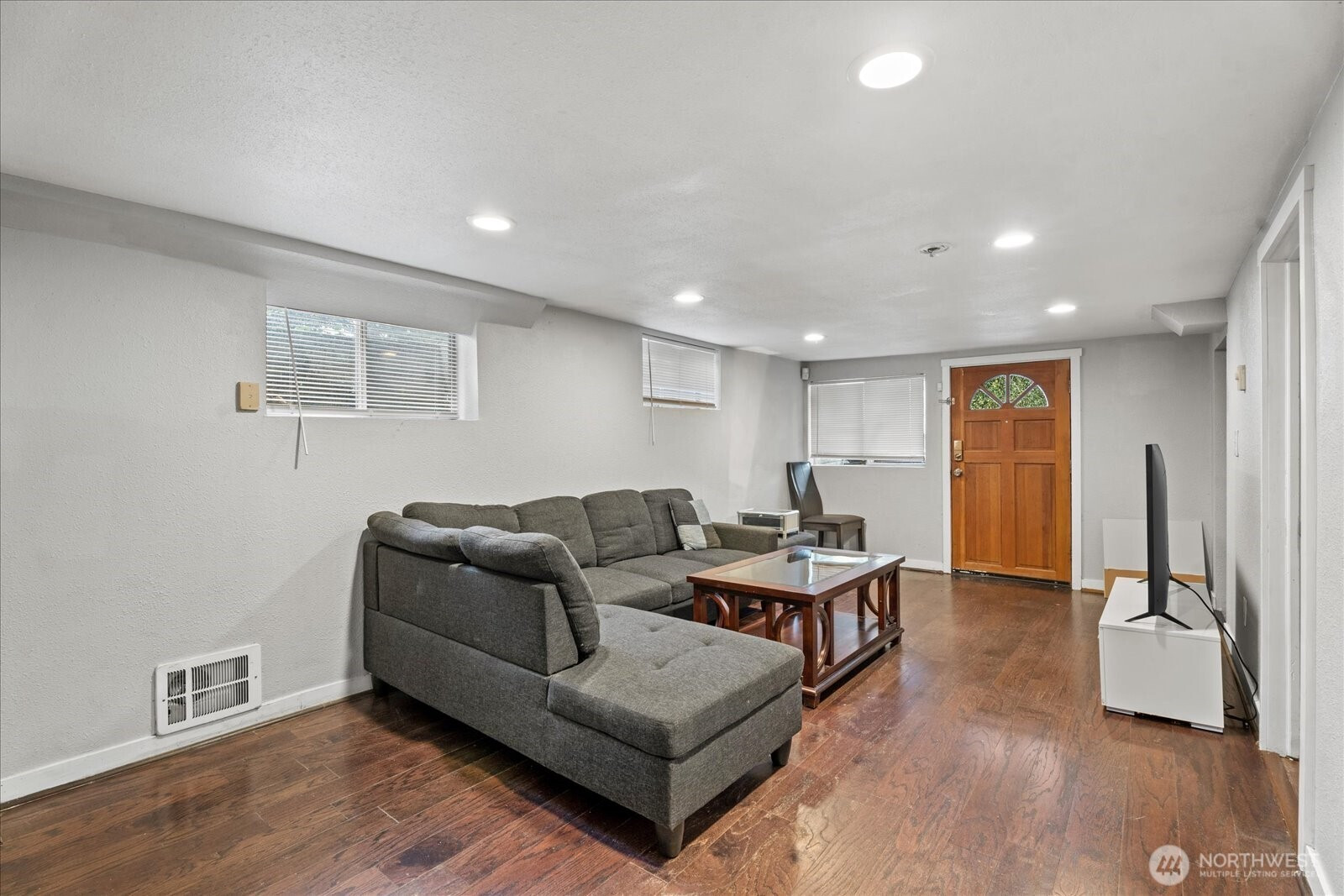 Step into this refreshed daylight rambler where space and flexibility shine. Upstairs offers 3 bright bedrooms and an open-concept living area with new flooring and modern finishes. Downstairs, 3 roomy bonus spaces are ready for an office, gym, media room, or guest suite. The updated kitchen sparkles with brand-new stainless steel appliances. Enjoy a large, fully fenced yard and a stylish new deck for easy entertaining. Plenty of storage plus potential to create an ADU or rental for added income. Just 14 minutes to downtown Seattle and about a mile to light rail—commute with ease.