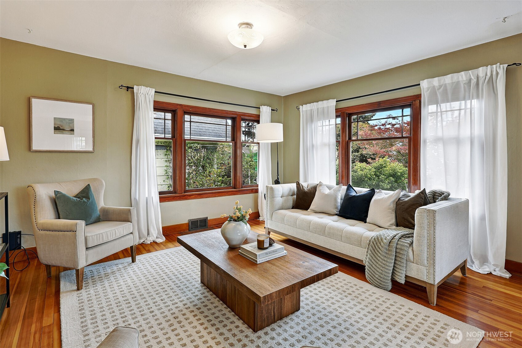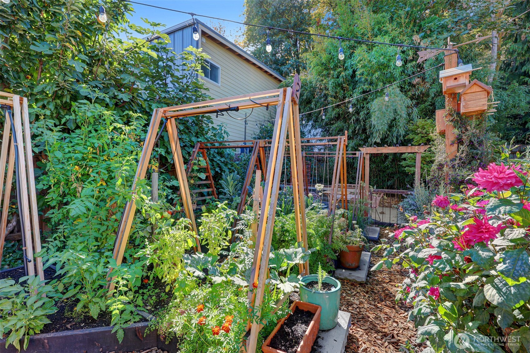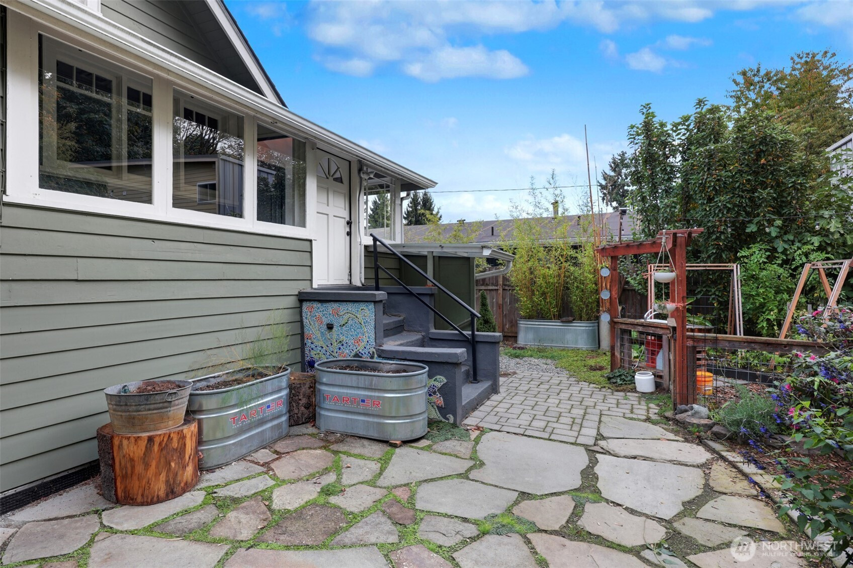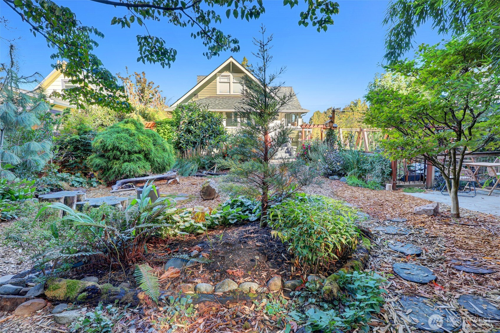 Come home to this 1900 Craftsman farmhouse; remarkable from the street and even better as you explore inside. Notable landscaping surrounds this homestead, from the pollinator-friendly plantings in front to the extensive garden space in the back. The flagstone patio and fire pit are perfect spots to entertain in an exquisite setting. Inside bursts with warmth & charm, abundant windows and natural light. Updated electrical & plumbing, A/C, new roof, original fir floors, wood-wrapped windows, waterproofed foundation. Dual mud rooms offer functionality, and the shop space and office downstairs are true bonus features for work & hobbies. Garage + parking pad. A wonderful home in a convenient location, just blocks from great restaurants & shops!
