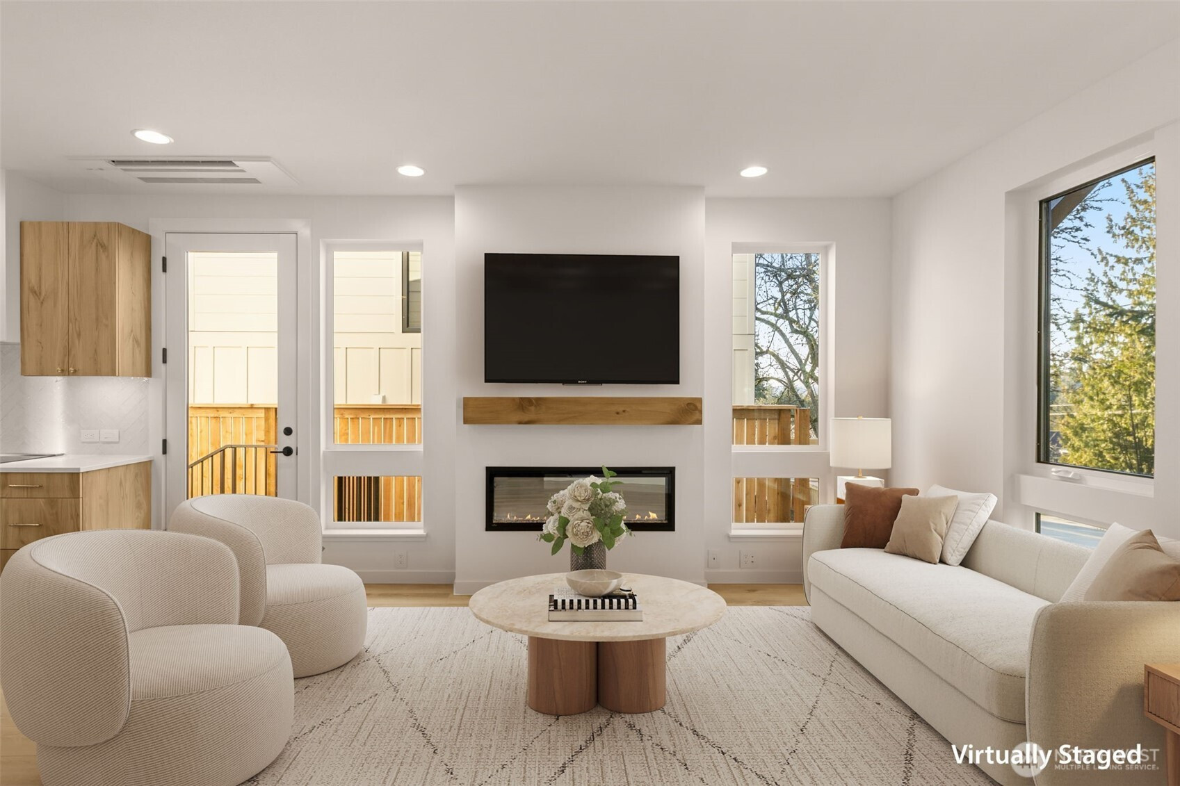 Experience exceptional new construction by Mirra Homes, where timeless design and meticulous craftsmanship come together in a thoughtfully curated floor plan tailored for refined living and effortless entertaining.The main level showcases an expansive open-concept layout with seamless flow between the living, dining, and designer kitchen featuring a generous island, Calacatta quartz countertops, custom Bellmont cabinetry, and Bosch appliances, including a 36” induction range. A dedicated wine and beverage center adds both style and convenience, making the space ideal for hosting, casual gatherings, or quiet evenings at home. The main-level primary suite offers a private retreat with a spa-inspired bath and generous walk-in closet, creating a sense of calm and comfort. A stylish powder room, dedicated mudroom, and inviting covered porch enhance everyday functionality.Upstairs, three additional bedrooms are thoughtfully positioned for privacy, with one offering flexibility as a versatile bonus room ideal for a media lounge, executive office, or guest retreat.A detached one-car garage plus an additional designated parking space, both EV-ready, provide modern convenience. Located just minutes from downtown Kirkland, waterfront parks, acclaimed dining, boutique shopping, and major commuter routes, this home blends elevated modern living with the charm of an established neighborhood.