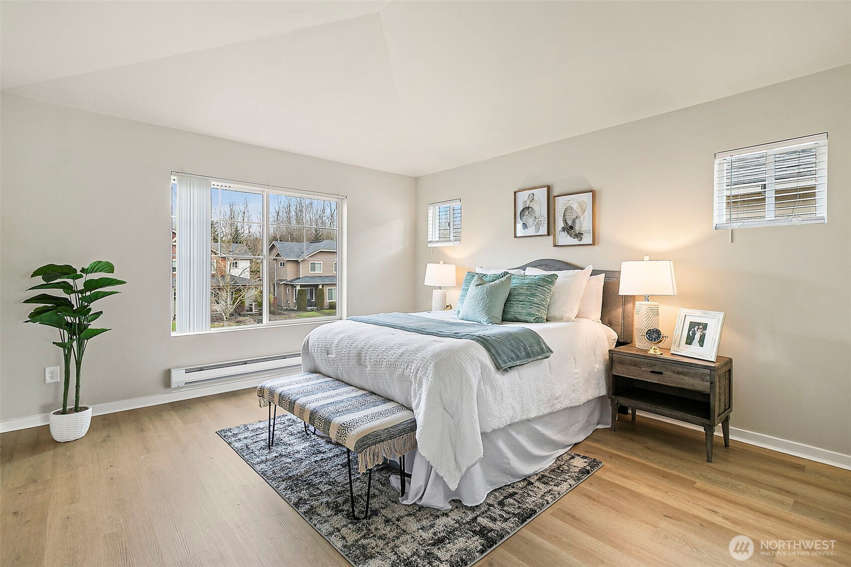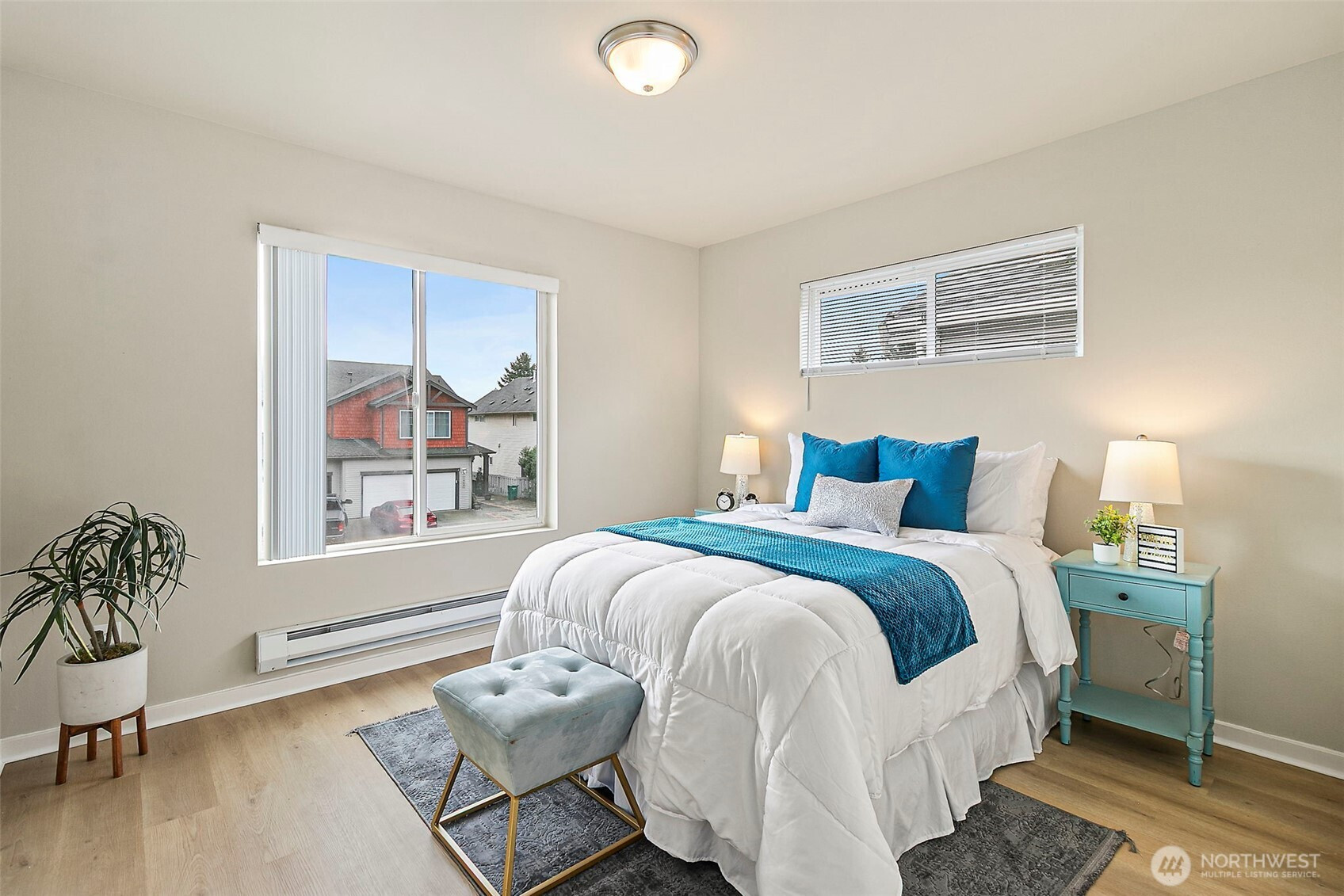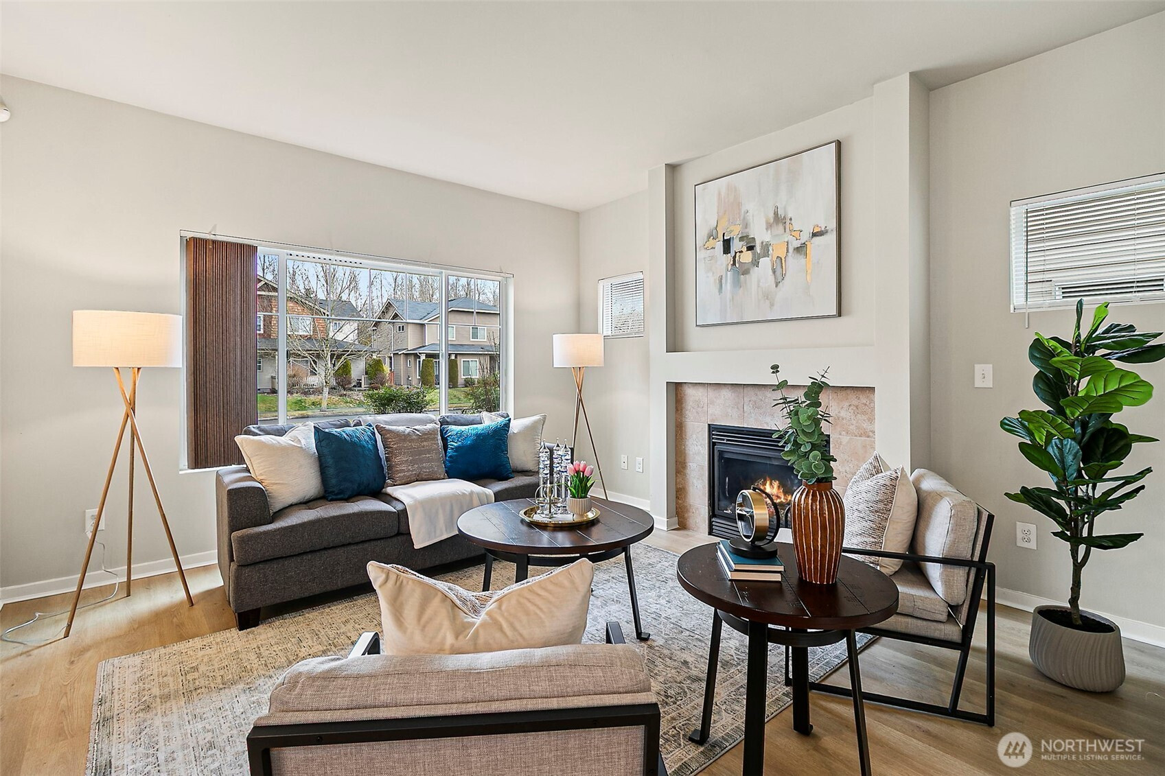 Welcome Home! This well maintained home features a great open concept of living, dining room and kitchen area with center island. All new hardwood floors and freshly painted Interior. Tile counter and stylish backsplash complements the nicely appointed cabinets. Master suite features vaulted ceiling, five piece bath with huge walk in closet. Laundry room and loft complete the upstairs. Spacious two car garage and tankless water heater, garage access is behind house where you'll find more parking. Community Park and River Trail are within walking distance.