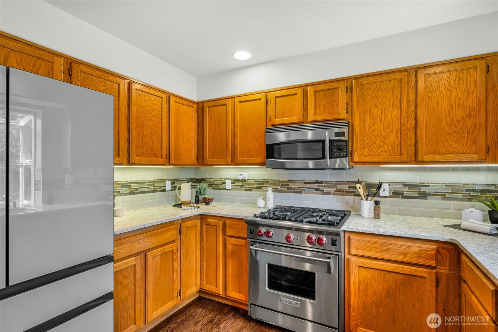 Experience the perfect harmony of sophisticated updates and Pacific Northwest charm in this beautifully reimagined Redmond retreat. Bathed in the golden glow of westerly exposure, this home is a sanctuary designed for those who value both tranquility and connection. Step inside to find a seamless blend of elegance and modern comfort, featuring newly refinished hardwoods, fresh interior paint, and the plush touch of brand-new carpet and LVP flooring. The main level invites effortless entertaining, where the gourmet kitchen flows into a light-filled dining area and a living room anchored by a cozy gas fireplace, the ultimate backdrop for crisp Washington evenings. The upper-level primary suite is a true escape, boasting double closets and a spa-inspired ensuite with a deep soaking tub. Step out onto your private deck to toast the day’s end with vibrant sunset views. With a versatile downstairs bonus room and an upstairs laundry for ultimate convenience, every inch of this home is optimized for your lifestyle. Located moments from the Sammamish River Trail, the world-class pours of Woodinville Wine Country, and the tech hubs of Downtown Redmond, you are perfectly positioned at the intersection of nature and innovation.