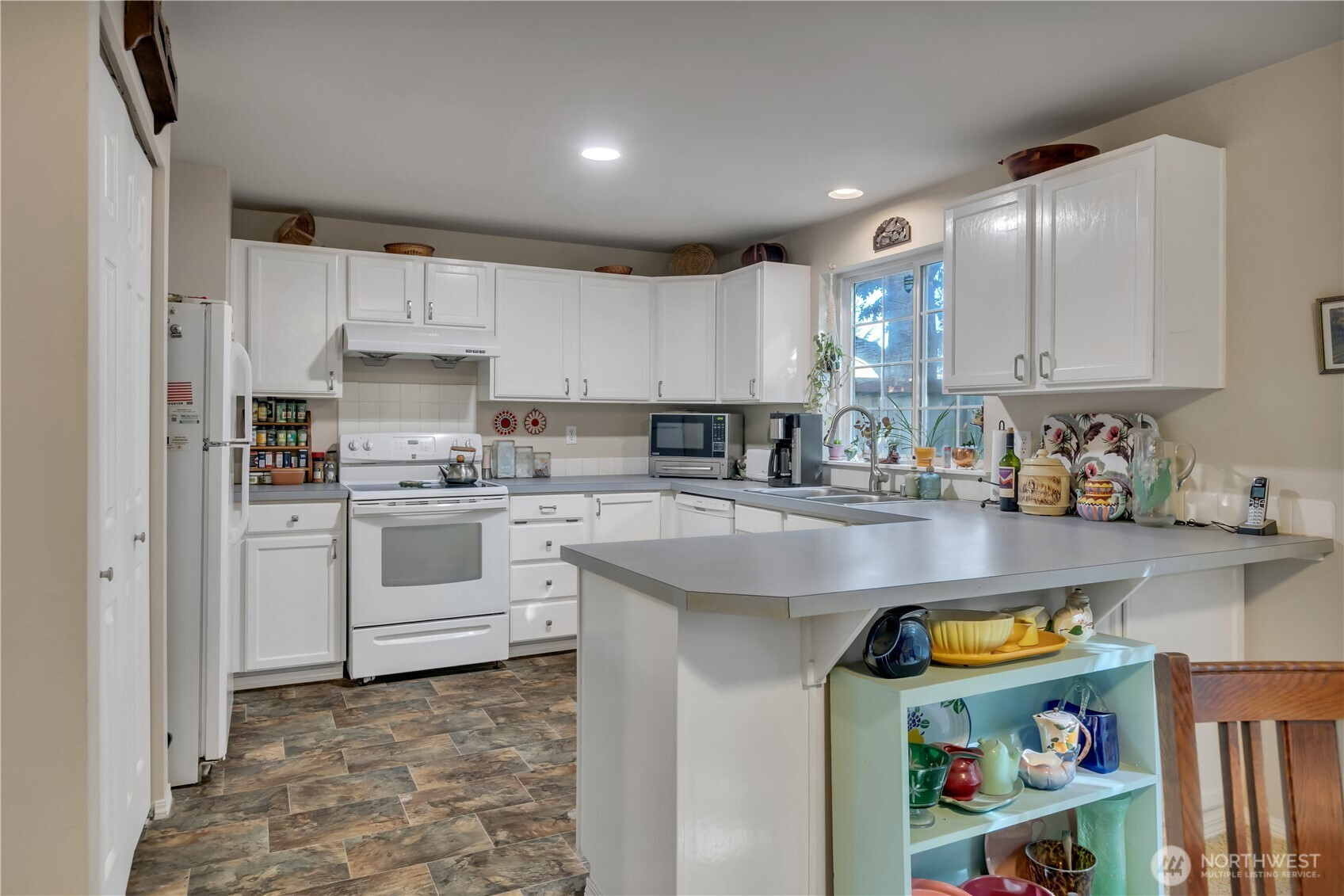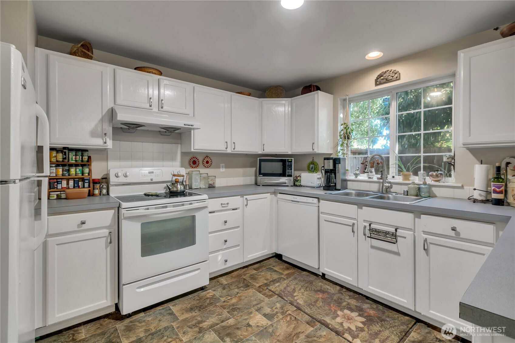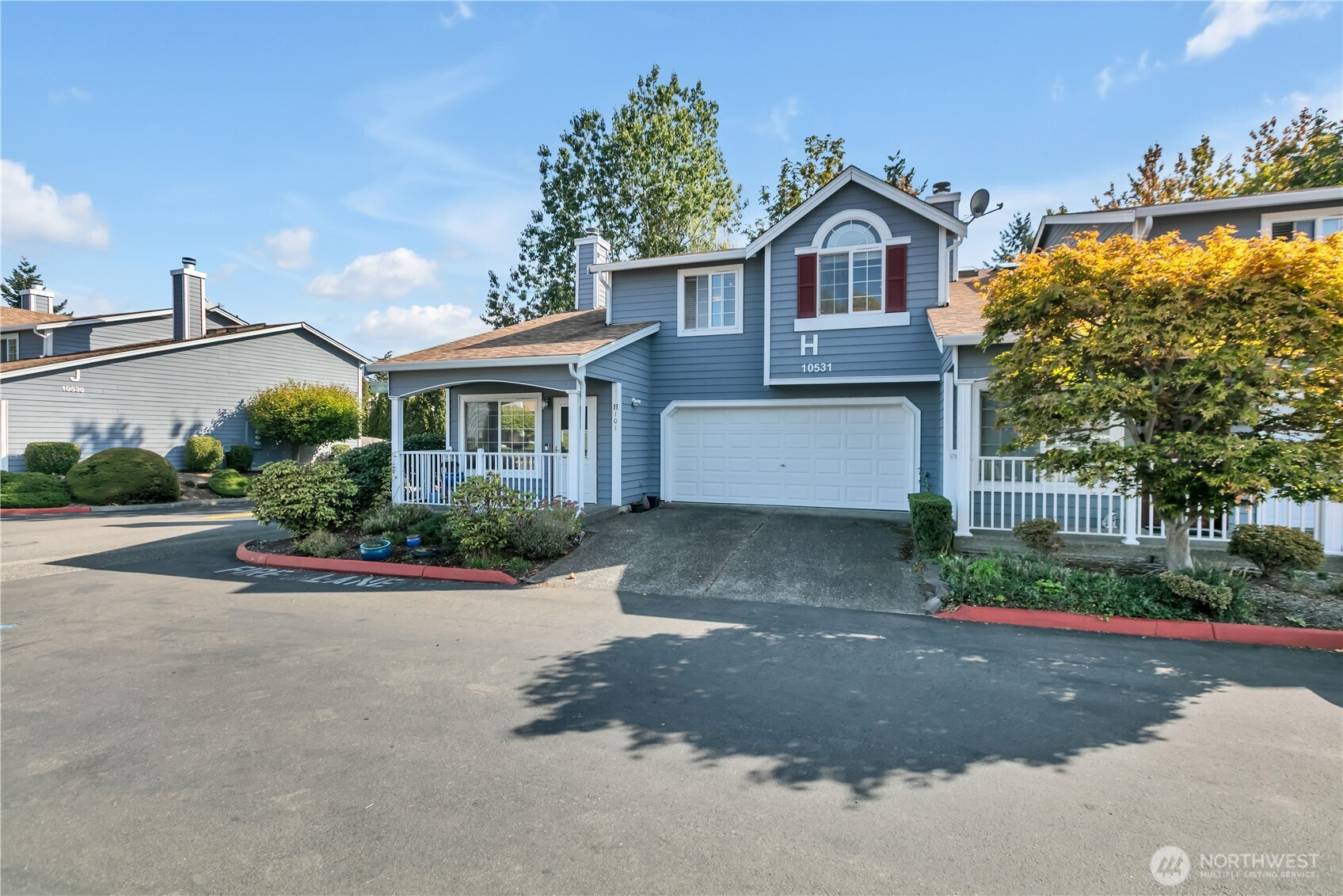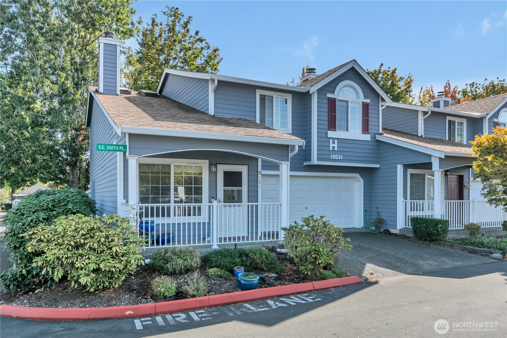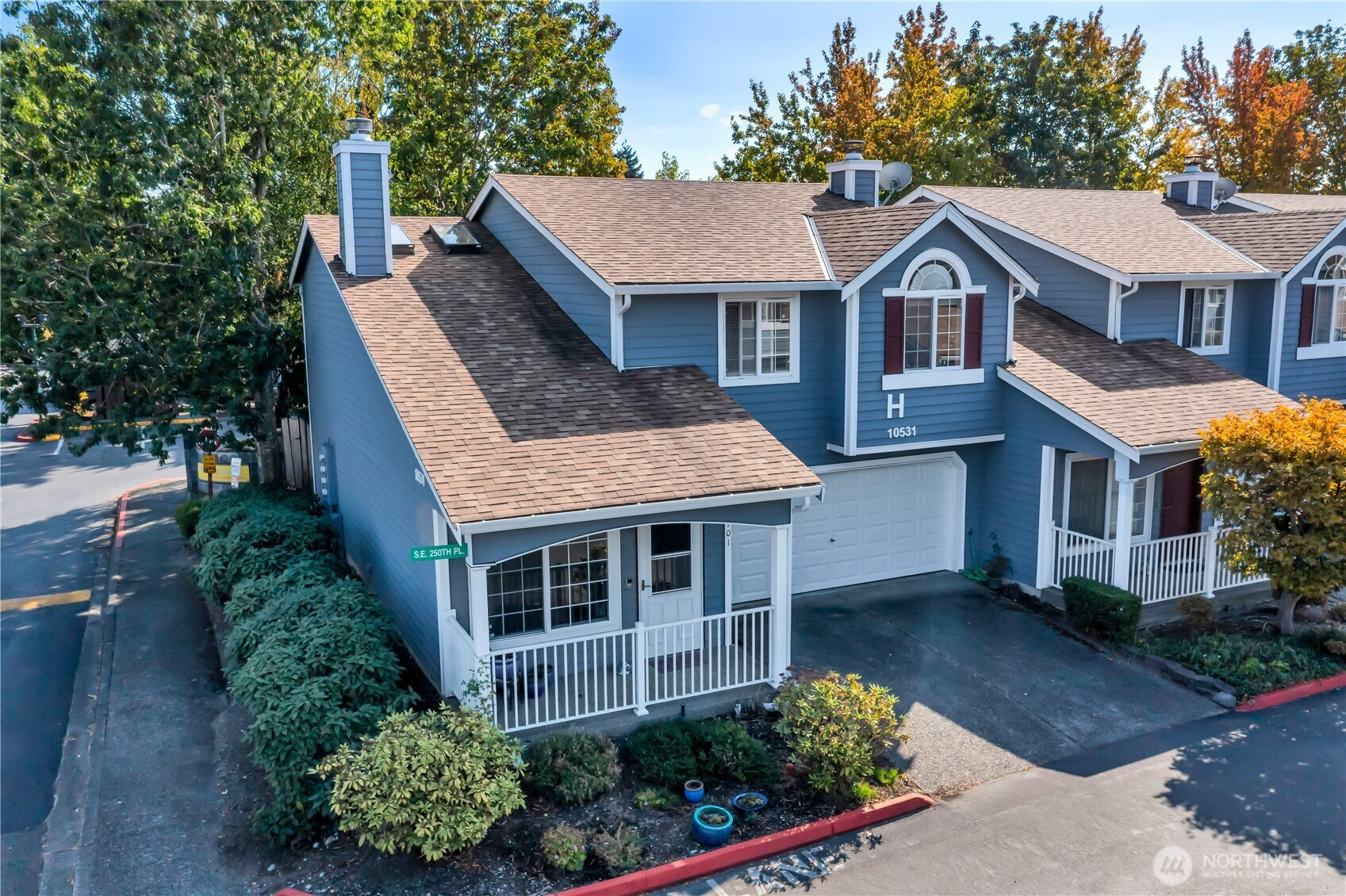Quiet Townhome community in Kent with private attached 2 car garage and fenced yard. From the covered front porch you'll enter into the first of 2 living rooms. You'll be greeted with soaring ceilings and a cozy fireplace. Around the corner you'll find an open concept kitchen and the second living room and half bath. The kitchen has all appliances included, a pantry and a peninsula with space for eating. There is room for a dining table by the slider. From here you could head to the private fenced yard or the second living space. Upstairs is an insanely large primary bedroom with 2 closets and a 5 piece bath. The laundry room with a tub sink is down the hall along with the second full bath and 2 more bedrooms. Close to shopping and dining.