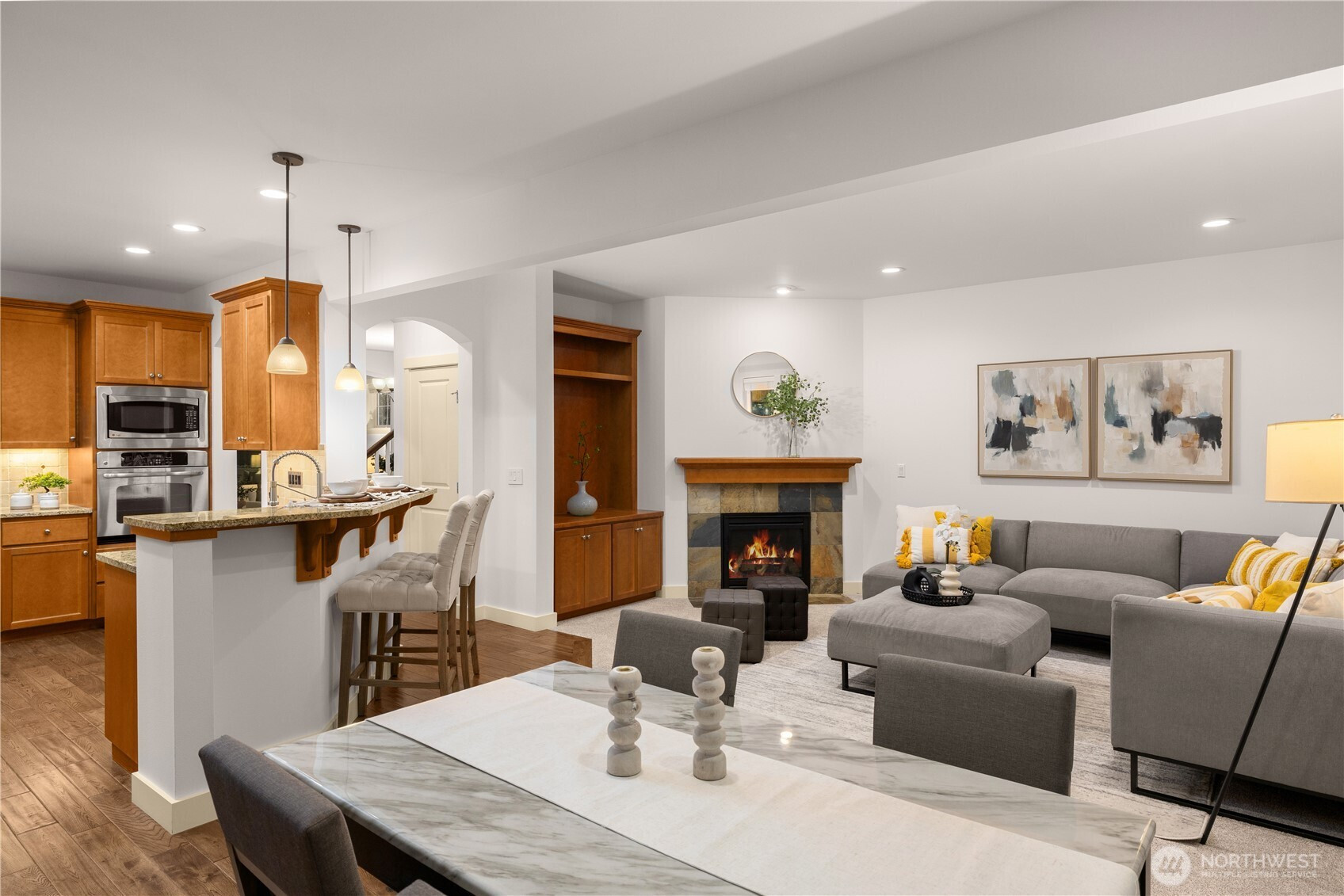 Welcome to this exceptional custom-built Chaffey home in Kirkland’s coveted Forbes Creek neighborhood—just minutes from Juanita Beach, lively restaurants, downtown Kirkland, and effortless freeway access. This beautifully maintained 5-bed, 2.75-bath residence features a rare main-floor bedroom with an adjacent three-quarter bath, an expansive media/family room, and an airy open layout with dramatic ceilings that flood the home with natural light the moment you step inside. Pride of ownership shines throughout, highlighted by a long list of upgrades: a brand-new roof, fresh interior and exterior paint, brand-new carpet throughout the entire home, a fully remodeled primary bath, new appliances, a new furnace, and a newly built and stained fence. Every improvement enhances comfort, style, and peace of mind. The home also includes a spacious 3-car garage, offering exceptional storage, parking, and flexibility—an increasingly rare find in this highly sought-after area. The private, lush backyard provides unobstructed territorial views, and the quiet neighborhood streets create a serene retreat—all within an excellent school district. This home blends timeless quality with modern updates in one of Kirkland’s most desirable locations. It’s truly a must-see in person.