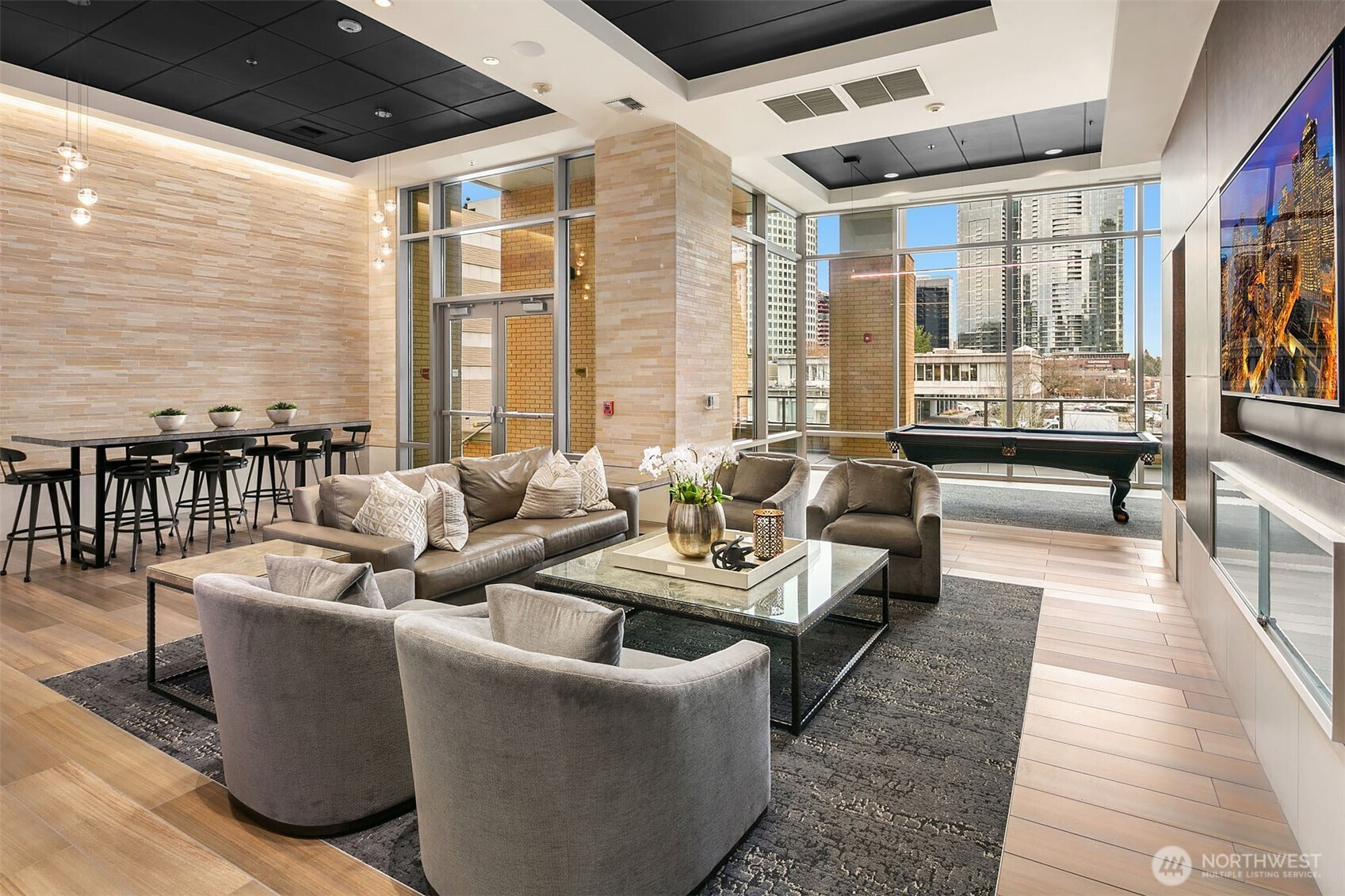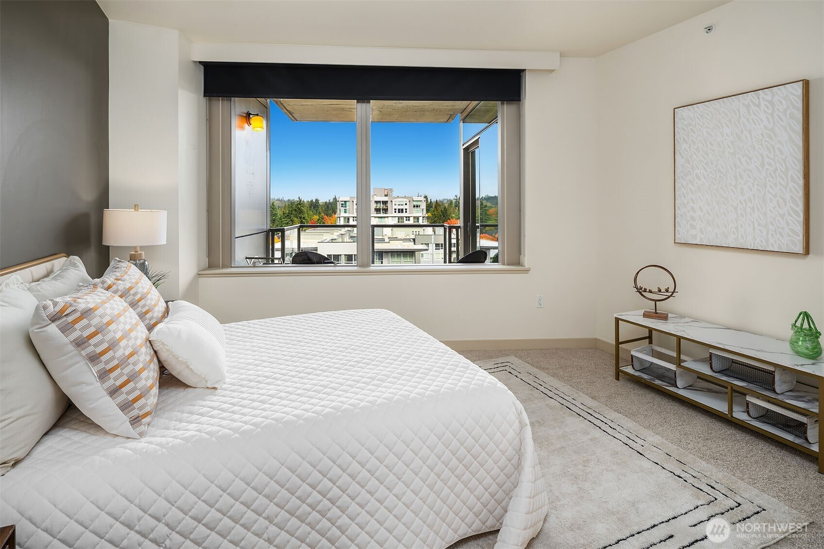 Experience luxury living at Washington Square, where breathtaking city views meet sophisticated design. This spacious residence features soaring 10-foot ceilings and floor-to-ceiling windows that flood the space with natural light. The chef’s kitchen boasts stainless steel appliances and a gas range, ideal for gourmet cooking. The serene bedroom offers privacy with custom shades and blackout drapes. Indulge in the spa-inspired five-piece bath, complete with a soaking tub and frameless glass shower. An open-air den provides the perfect home office setup, complemented by a convenient half bath. Relax on your private balcony or enjoy amenities like the updated Owner’s Lounge, Gym, and Spa. Includes oversized secure parking and storage.
