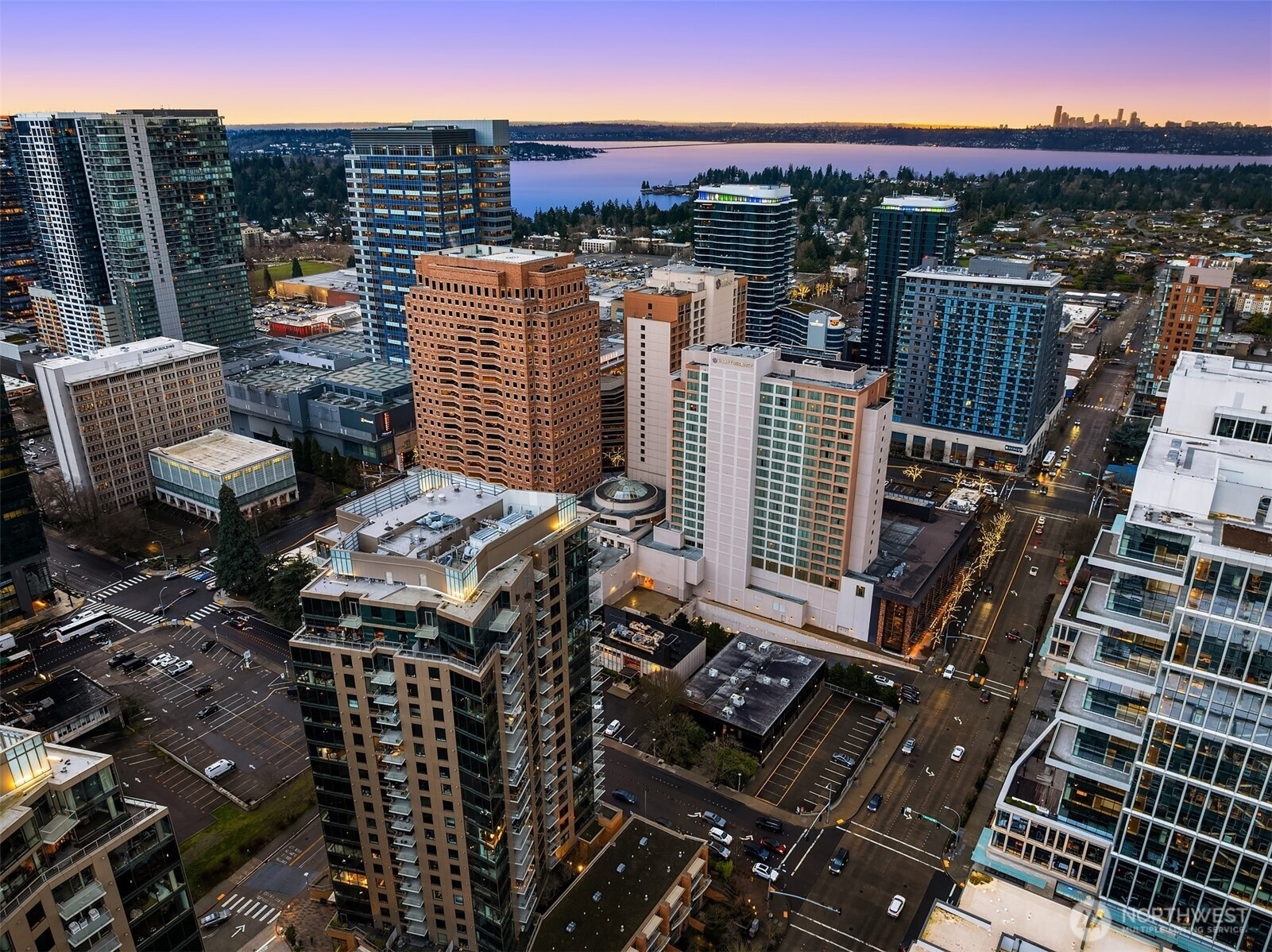 Embrace modern elegance on the 8th floor of Washington Square Tower I, where floor-to-ceiling windows showcase dramatic city views and thoughtfully designed living spaces. This 2-bedroom, 2-bath residence features 10-foot ceilings, all-new interior paint, central A/C, and a gas fireplace, creating a light-filled and comfortable home in the heart of Downtown Bellevue. The kitchen offers gas cooking, stainless steel appliances, cherry cabinetry, granite countertops, and an island, opening seamlessly to the living and dining areas for effortless entertaining. The covered private balcony — accessible from both the living room and primary suite — extends the living space outdoors. The spa-inspired primary bath includes a soaking tub and frameless glass shower. This home includes TWO secure garage parking spaces and access to Washington Square’s premier amenities, including concierge service, fitness center, spa, resident lounge, meeting rooms, guest parking, and EV charging. Ideally located just steps from Bellevue Square, Lincoln Square, Downtown Park, restaurants, Amazon, Microsoft, Nintendo, Meta, Salesforce, Bellevue Transit Center and Future Light Rail - this residence offers the best of Downtown Bellevue luxury condominium living.
