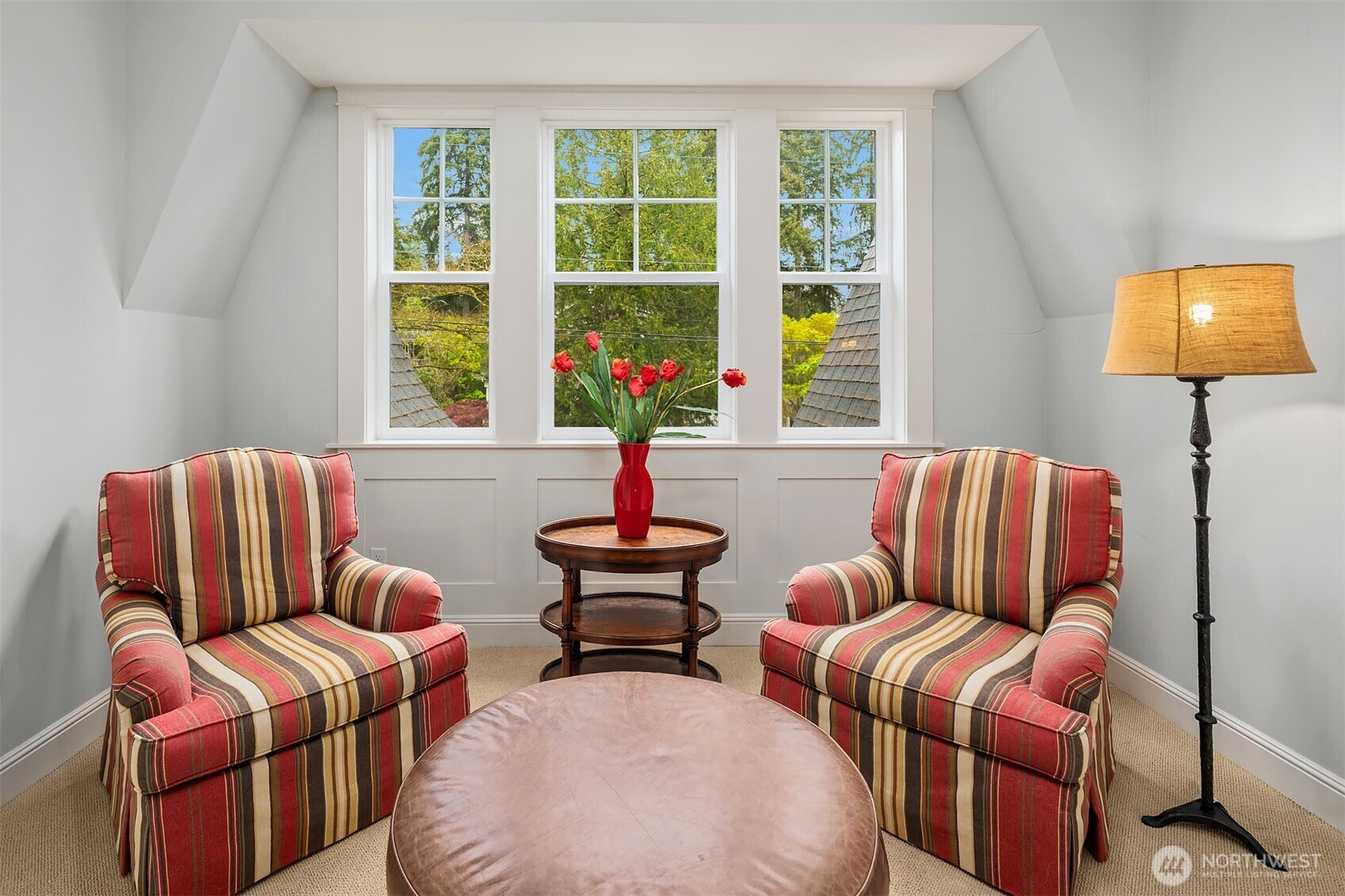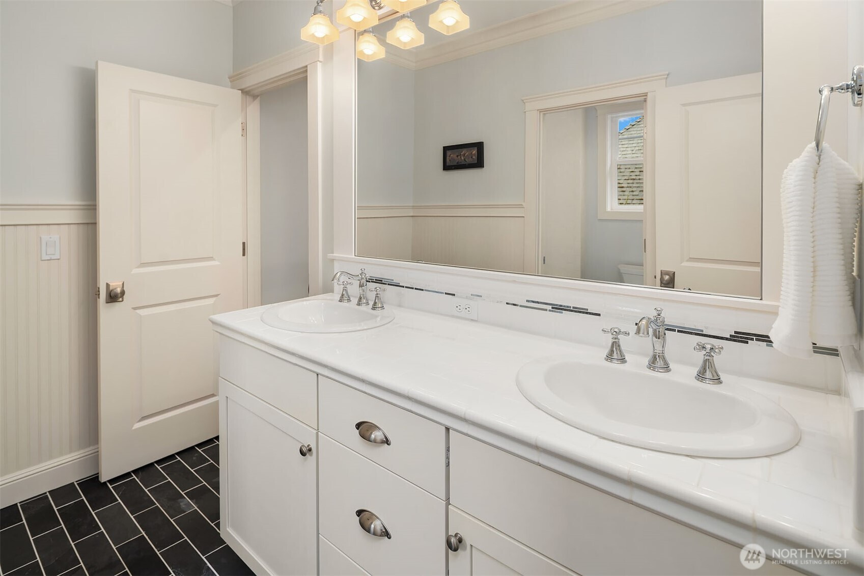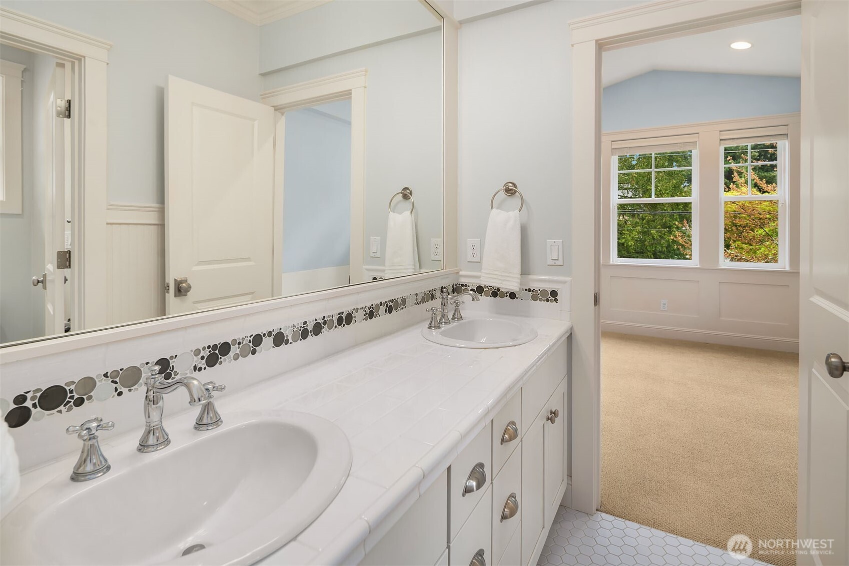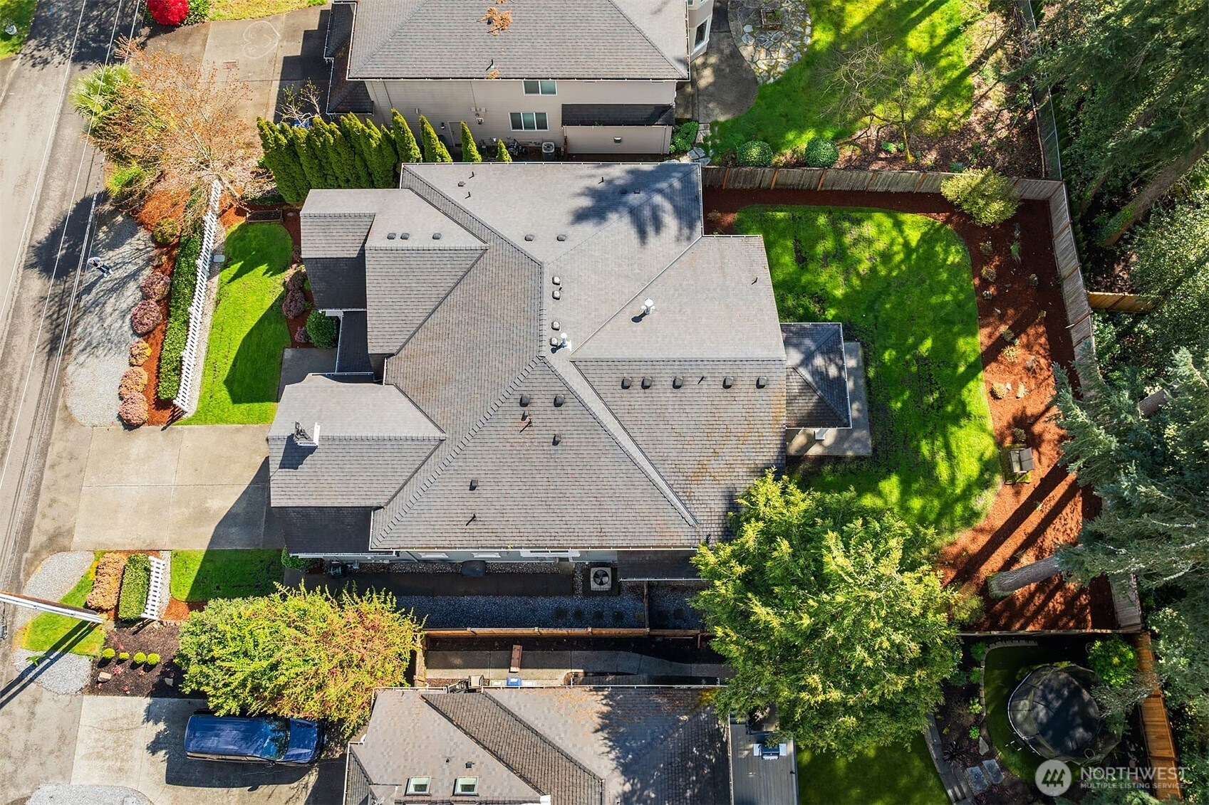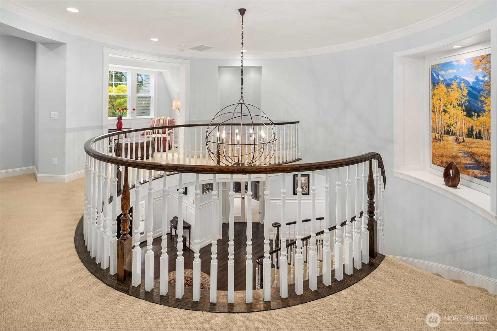 Timeless elegance meets modern comfort in this beautifully crafted one-owner home accented with rich hardwoods, extensive millwork, gorgeous marble, and expansive windows. A welcoming covered front porch opens to a grand rotunda entry highlighted by a stunning bridal staircase. The masterful kitchen is generous in size and functionality with premium appliances, walk-in pantry, an impressive island with breakfast bar, and a slider to the covered patio. Open to the kitchen, the inviting family room showcases a cozy gas fireplace, custom built-ins, dramatic 2-story box-beam ceilings, and clerestory windows that flood the space with natural light. Enjoy formal and casual dining options ideal for both elegant gatherings and everyday living. The main floor den offers flexibility with French doors, built-ins and a closet—a comfortable home office or guest space. Upstairs, the primary suite offers vaulted ceilings, fireplace, luxurious 5-piece bath, and a walk-in closet. 2 additional storybook bedrooms share a Jack-and-Jill bathroom, and the 4th bedroom features a continental bath. The spacious bonus/media room adds versatility and provides the perfect get-away. The gorgeous setting with southern exposure features landscaped garden beds, a charming white picket fence, and a private fenced yard with a covered patio and built-in speakers for optimal outdoor entertaining. The desirable location is just blocks to neighborhood parks, Enatai Elem and minutes to downtown Bellevue and I-90.