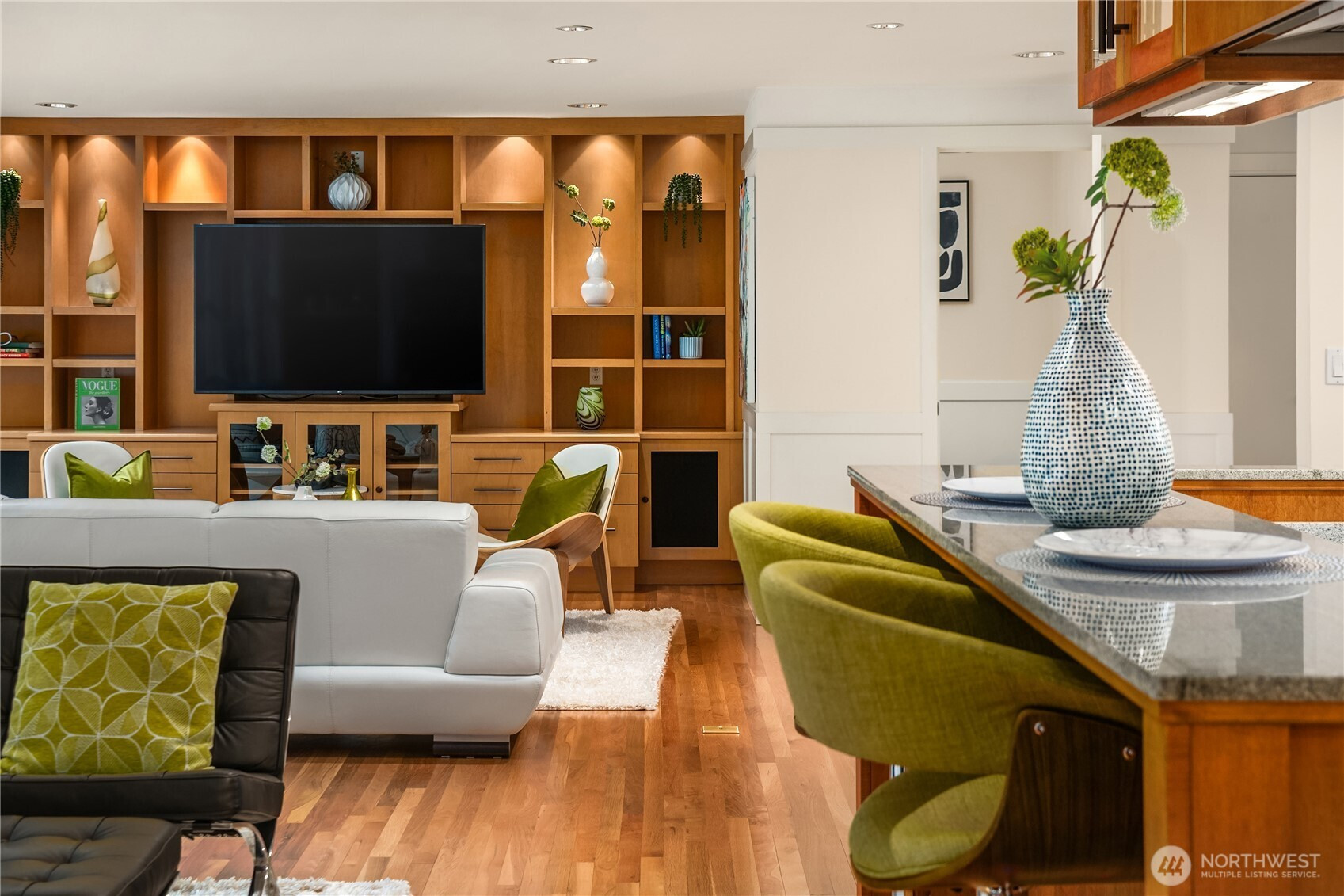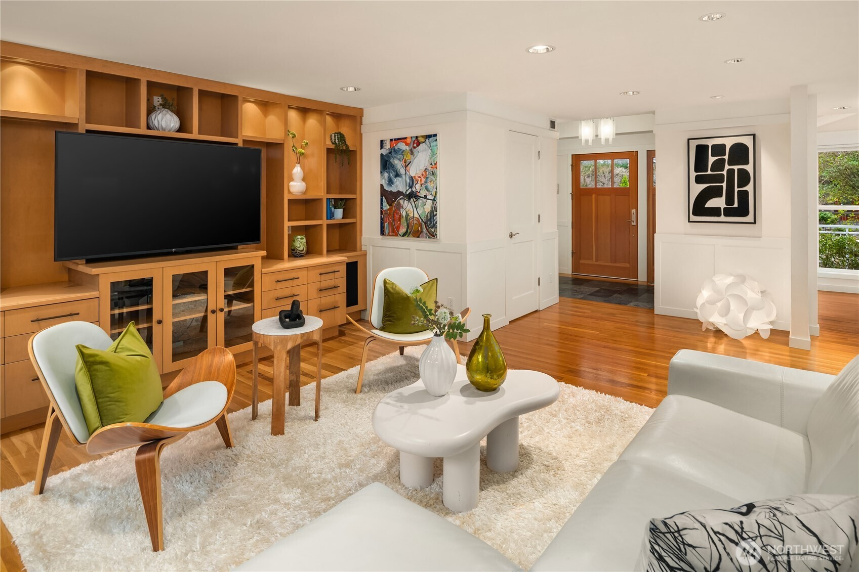 This fully renovated NW contemporary home offers privacy & proximity in coveted Enatai. Just mins from downtown Bellevue (only 15 minutes to downtown Seattle via I-90) this 3,159 sq ft residence situated on a private 10,002 sq.ft lot blends timeless elegance w/modern comfort. Thoughtful floor plan offers 4 bedrooms, 3.25 bathrooms, solid oak wood flooring, detailed millwork, custom built-ins, & abundant natural light throughout. Spaces are designed for connection w/fully glazed living room windows including gas fireplace & media-ready. Chef’s kitchen that's as beautiful as it is functional The kitchen features granite slab islands, built-in refrigerator, built-in microwave, cabinet-faced dishwasher, walk-in pantry, windows w/garden & patio views, w/a seamless flow to the open plan living space.Main-level owner’s suite provides ease of access & privacy w/5 piece bathroom w/radiant heated floor & travertine slab counter-top & flooring. Entertaining extends outdoors to a deck w/glass railing & multiple patio areas accessible from the kitchen & living room all w/in a fenced, low-maintenance yard featuring landscape lighting & irrigation system. Add'l highlights include gated front entry w/intercom security lock, cable TV hard-wired throughout, hard-wired 5.2 surround-sound speaker system, gas stub for gas range, lockable mailbox, laundry chute, jetted tubs, expansive daylight basement w/gas fireplace, 2-car garage w/secure heated shop/storage room. Pre-inspection completed.