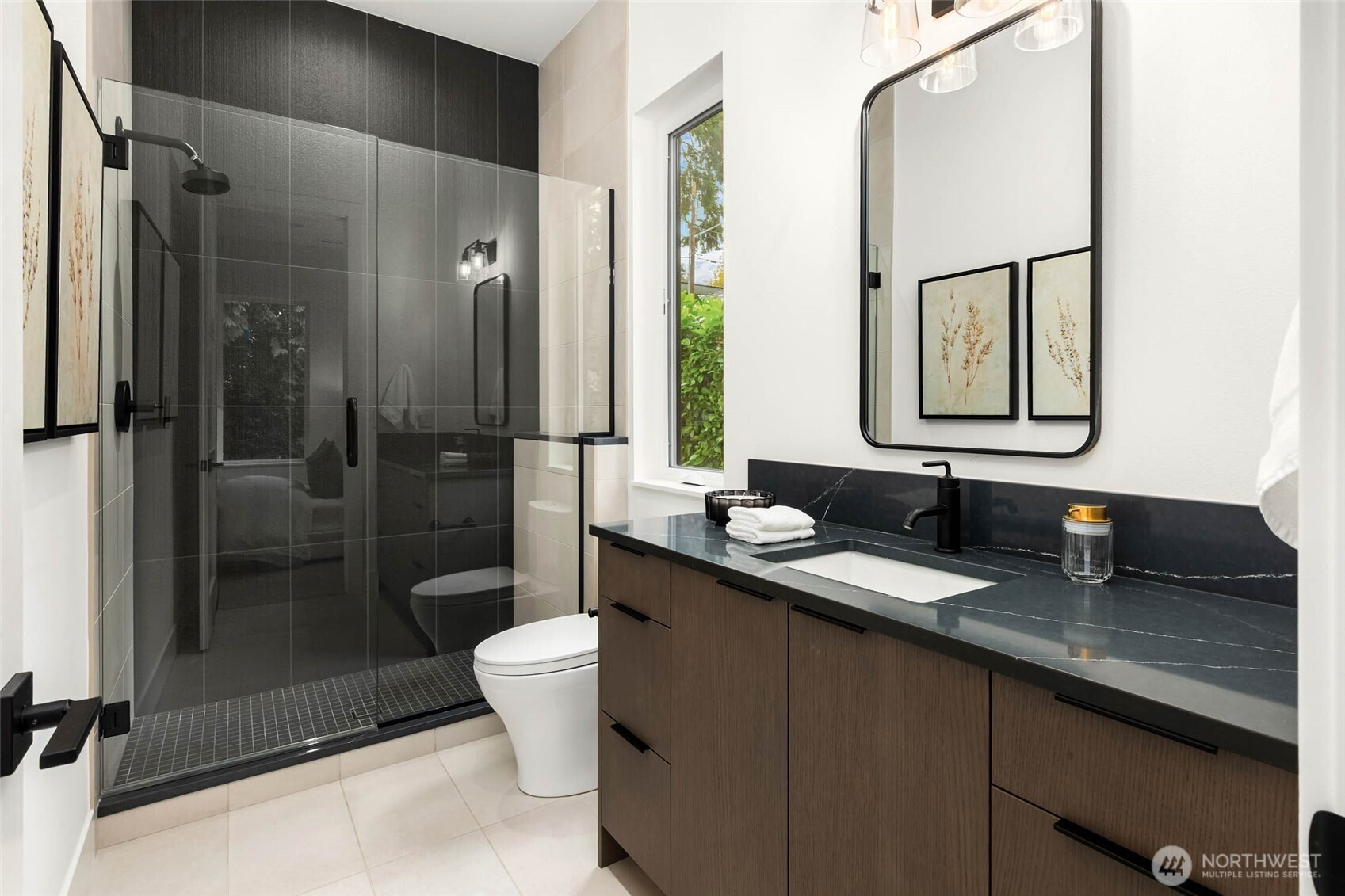 Welcome to this beautifully crafted 5-bedroom, 4.5-bath home by Thomas James Homes. Thoughtfully designed with exceptional craftsmanship and contemporary finishes, this home blends style and functionality for modern lifestyles. The main level features a guest suite and a private office with French doors. Upstairs, a flexible loft space adapts to your needs. The luxurious primary suite includes a spa-like bath and spacious walk-in closet. Nestled in the heart of West Bellevue, this home is ideally located near top-rated schools, upscale shopping, and fine dining. Don’t miss your chance to own this exceptional home!