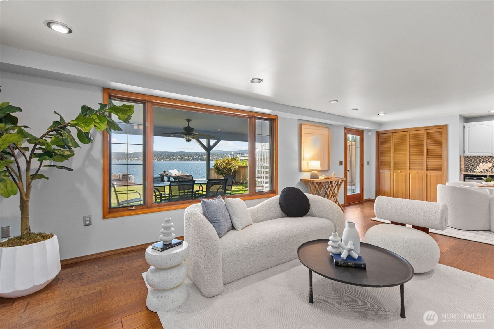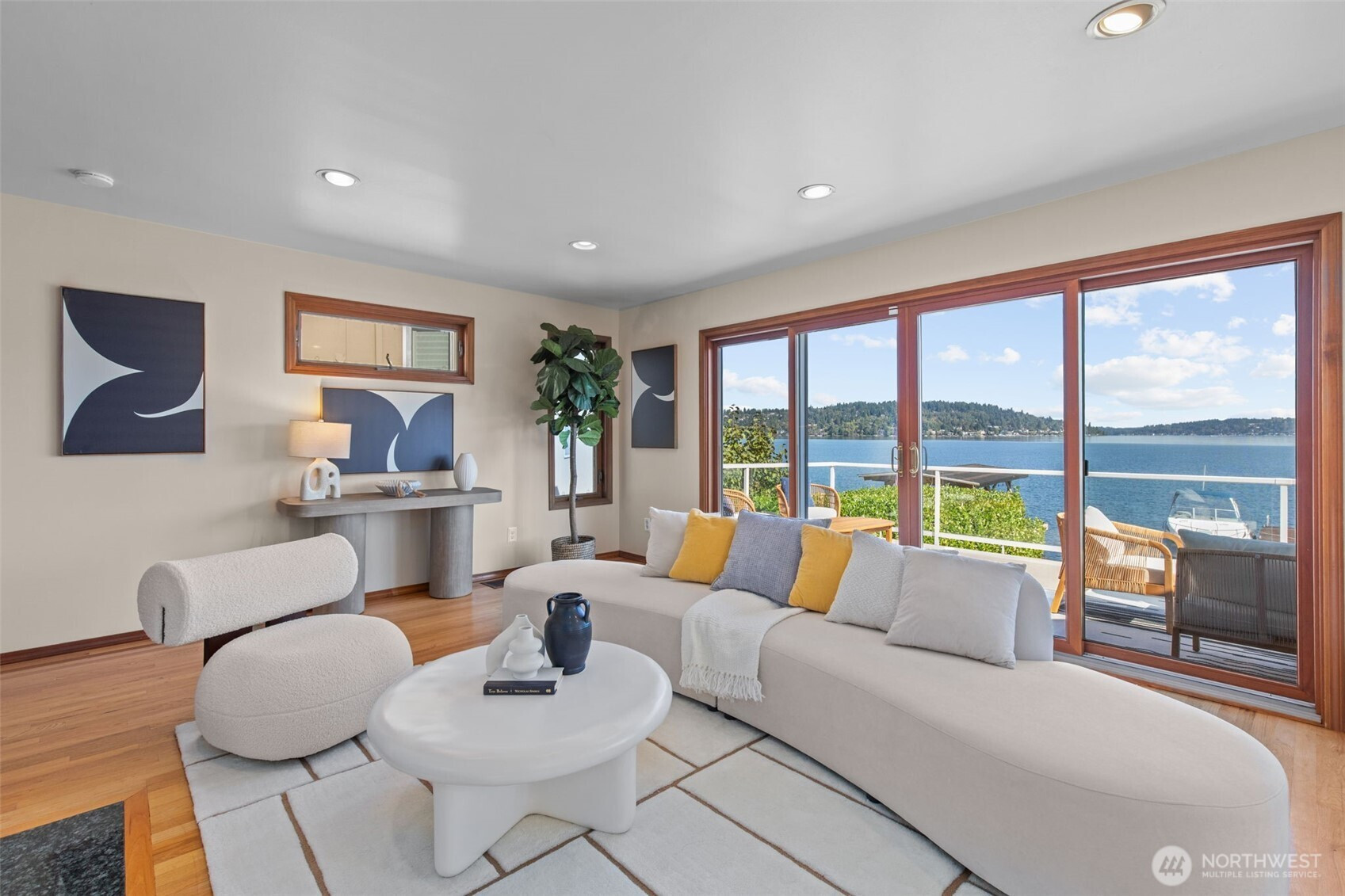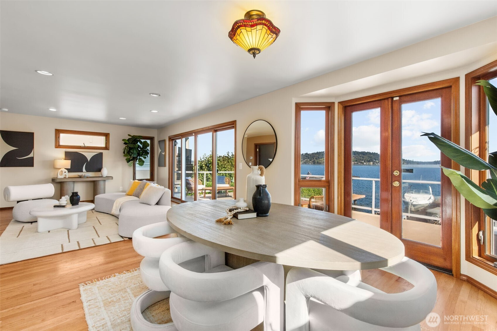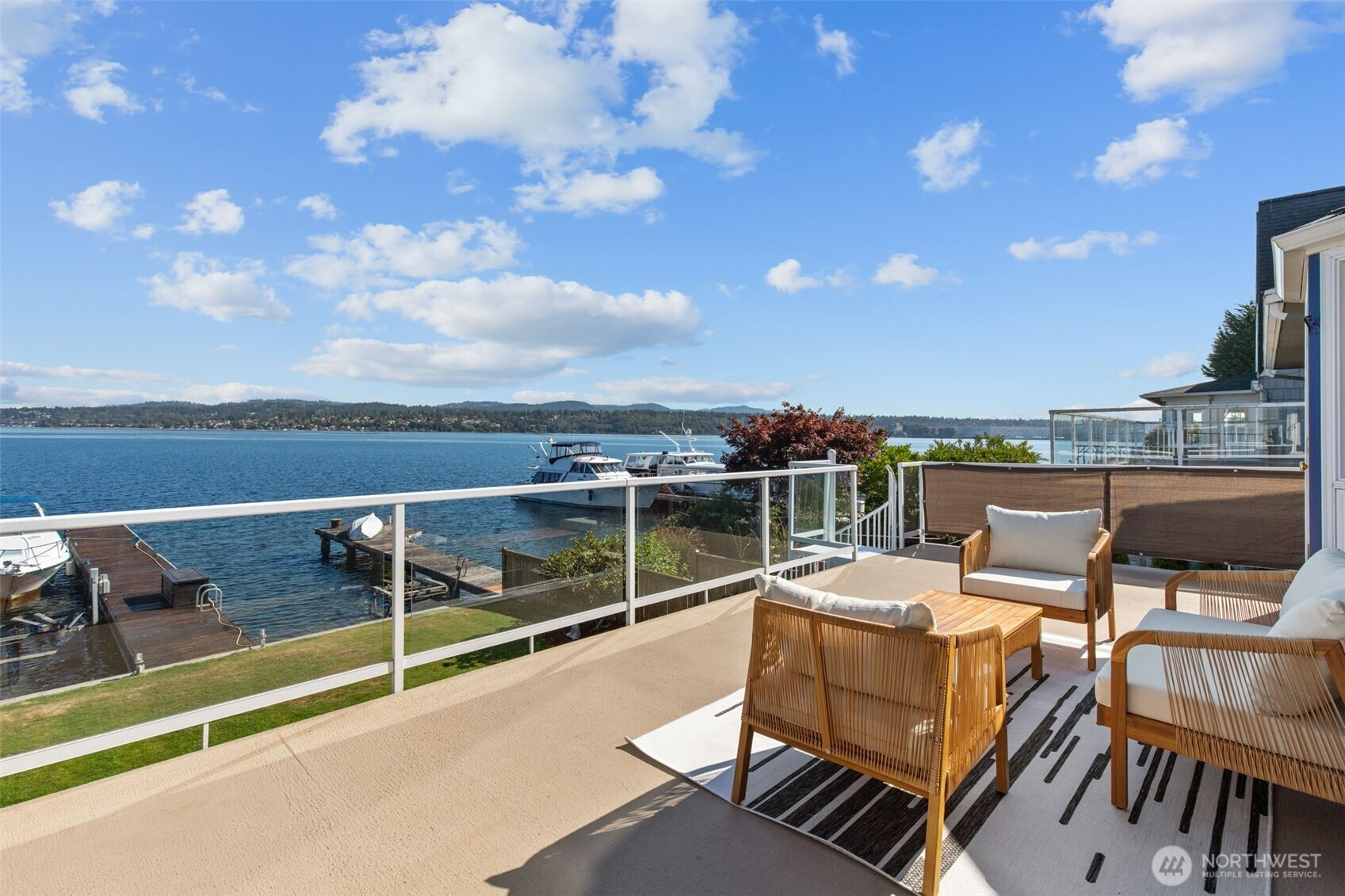 Experience the ultimate lakefront lifestyle with 40’ of prime Lake Washington waterfront! This low-bank property offers moorage, dock, and boat slip. Take in stunning views of the lake, mountains, and city from this beautifully finished home. A large deck creates the perfect space for entertaining. The main floor boasts a great room with kitchen, dining, and living areas, featuring oak hardwood floors and cherry cabinets. The primary suite includes an en-suite bath with dual shower and two-person jetted tub. The lower-level “Lodge” style family room highlights a striking river stone fireplace. Nestled on a quiet private lane, this home combines serenity, comfort, and unmatched waterfront living.