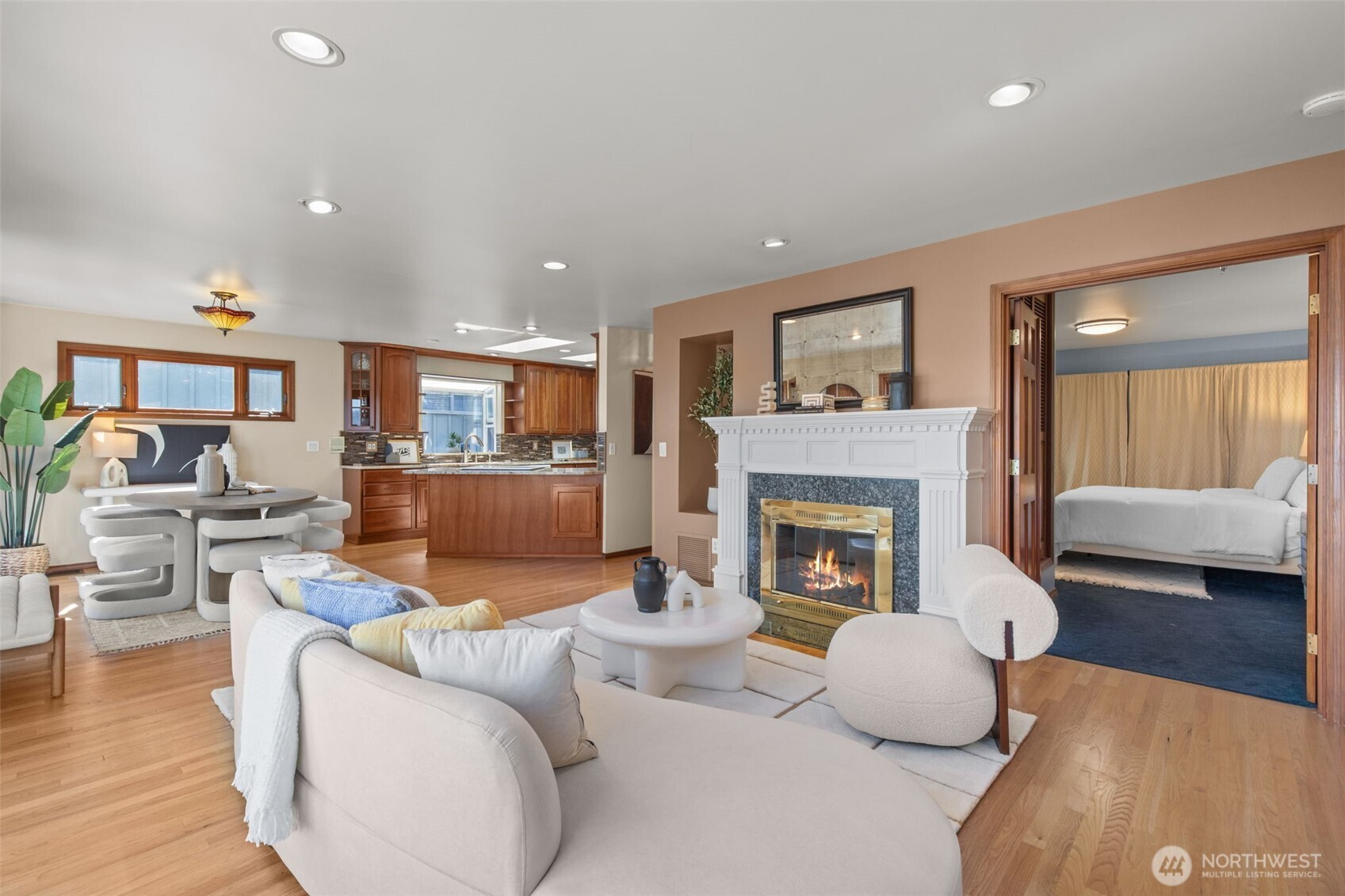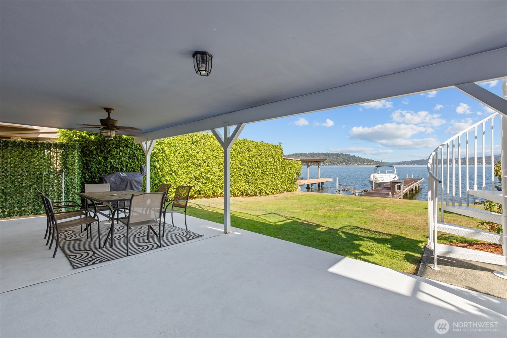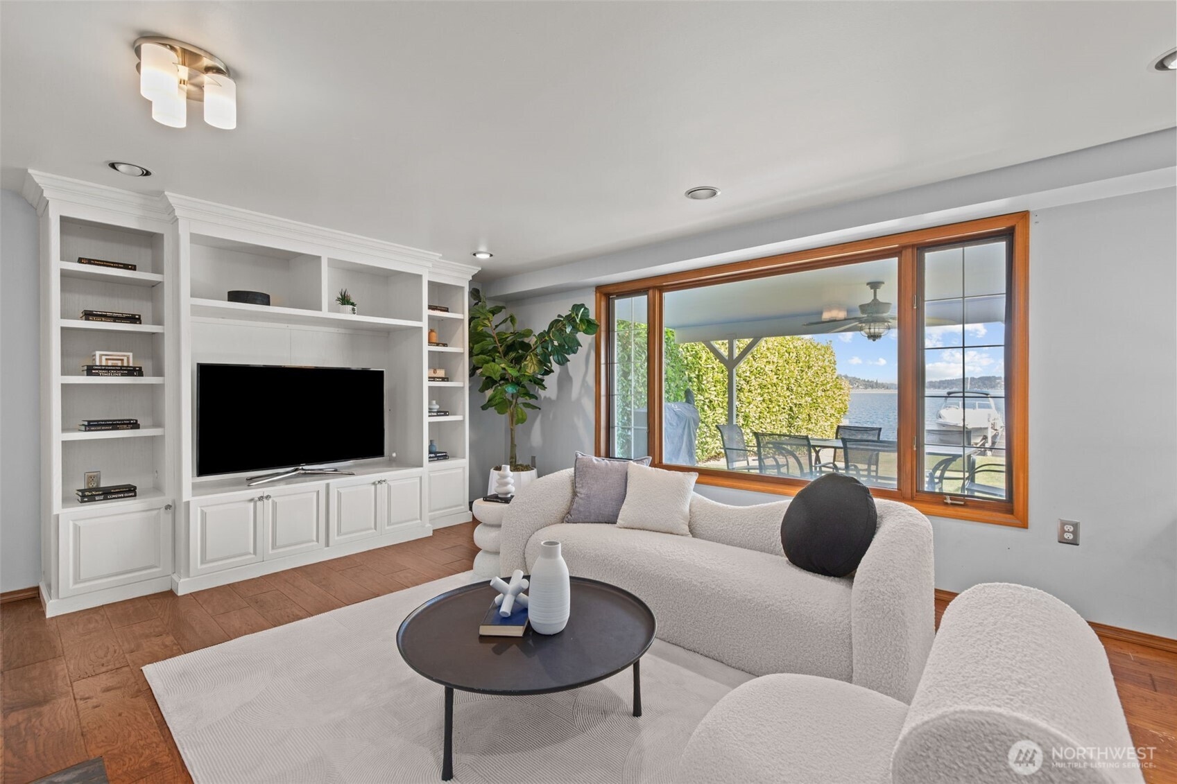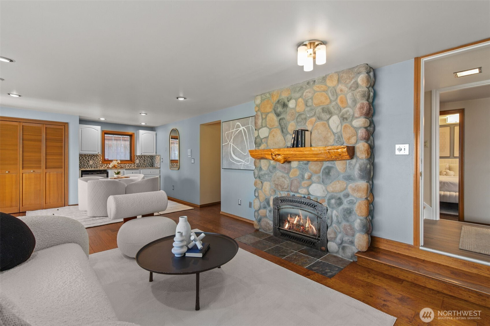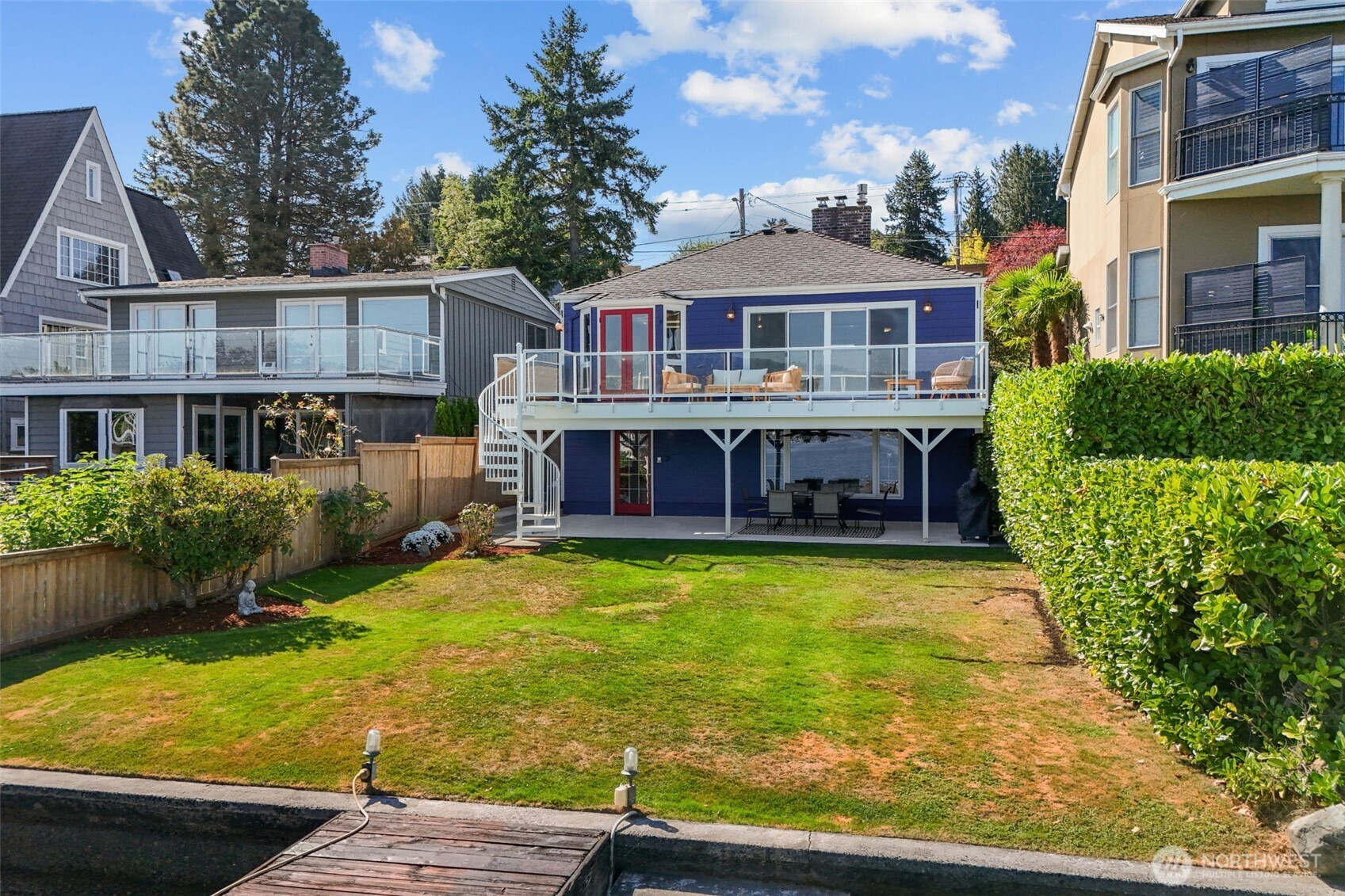 Experience the ultimate lakefront lifestyle with 40’ of prime Lake Washington waterfront! This low-bank property offers moorage, dock, and boat slip. Take in stunning views of the lake, mountains, and city from this beautifully finished home. A large deck creates the perfect space for entertaining. The main floor boasts a great room with kitchen, dining, and living areas, featuring oak hardwood floors and cherry cabinets. The primary suite includes an en-suite bath with dual shower and two-person jetted tub. The lower-level “Lodge” style family room highlights a striking river stone fireplace. Nestled on a quiet private lane, this home combines serenity, comfort, and unmatched waterfront living.