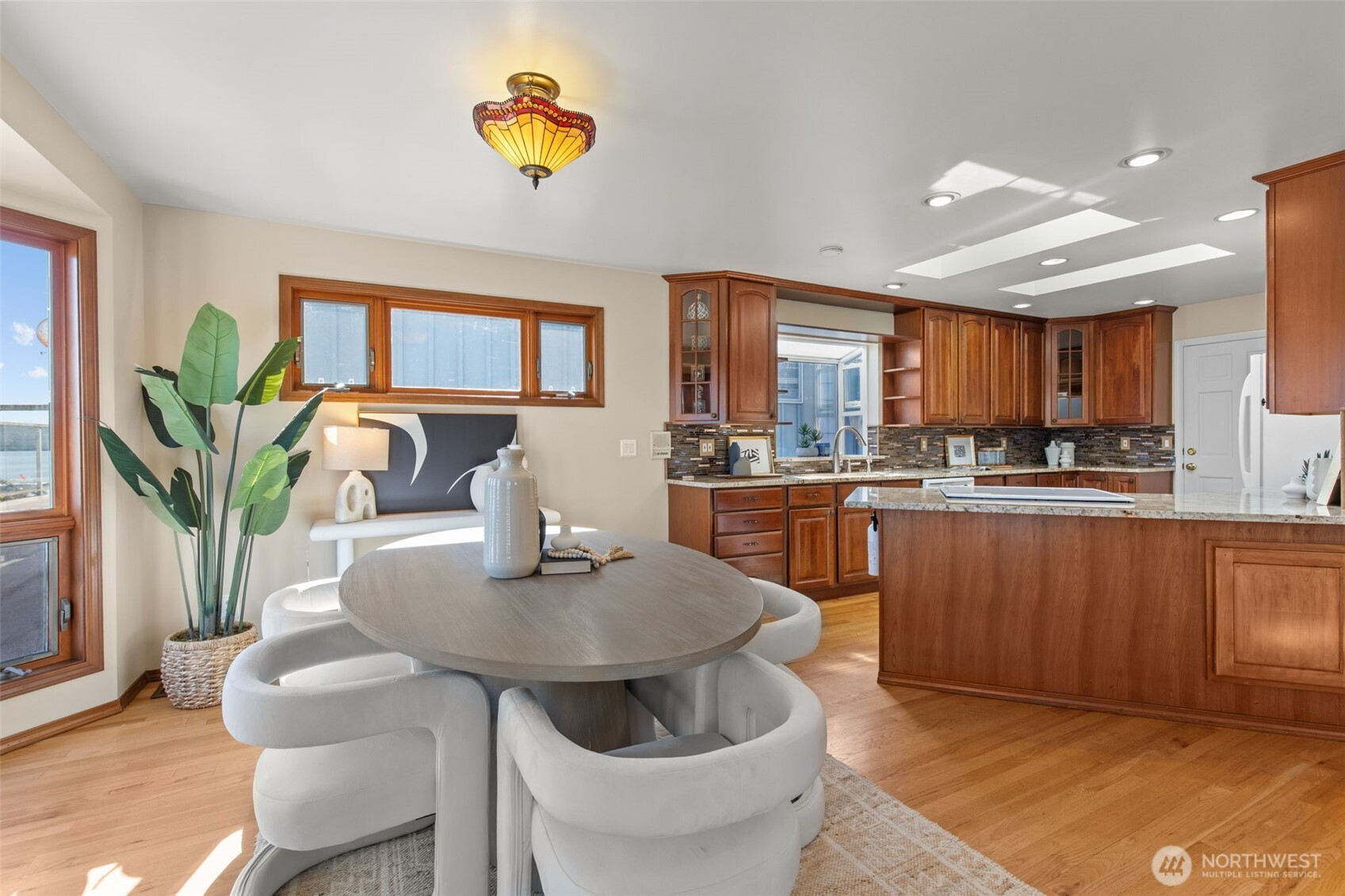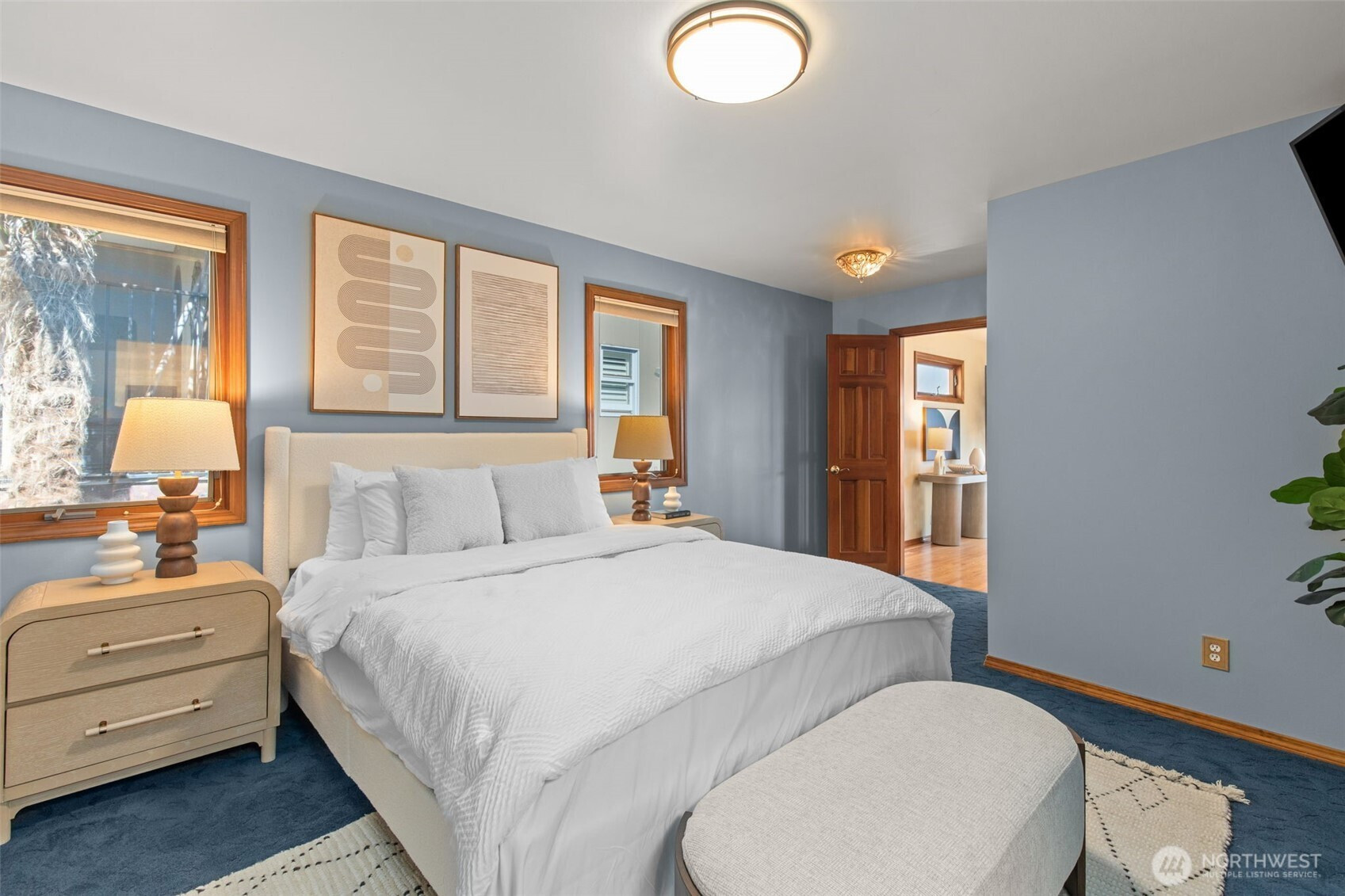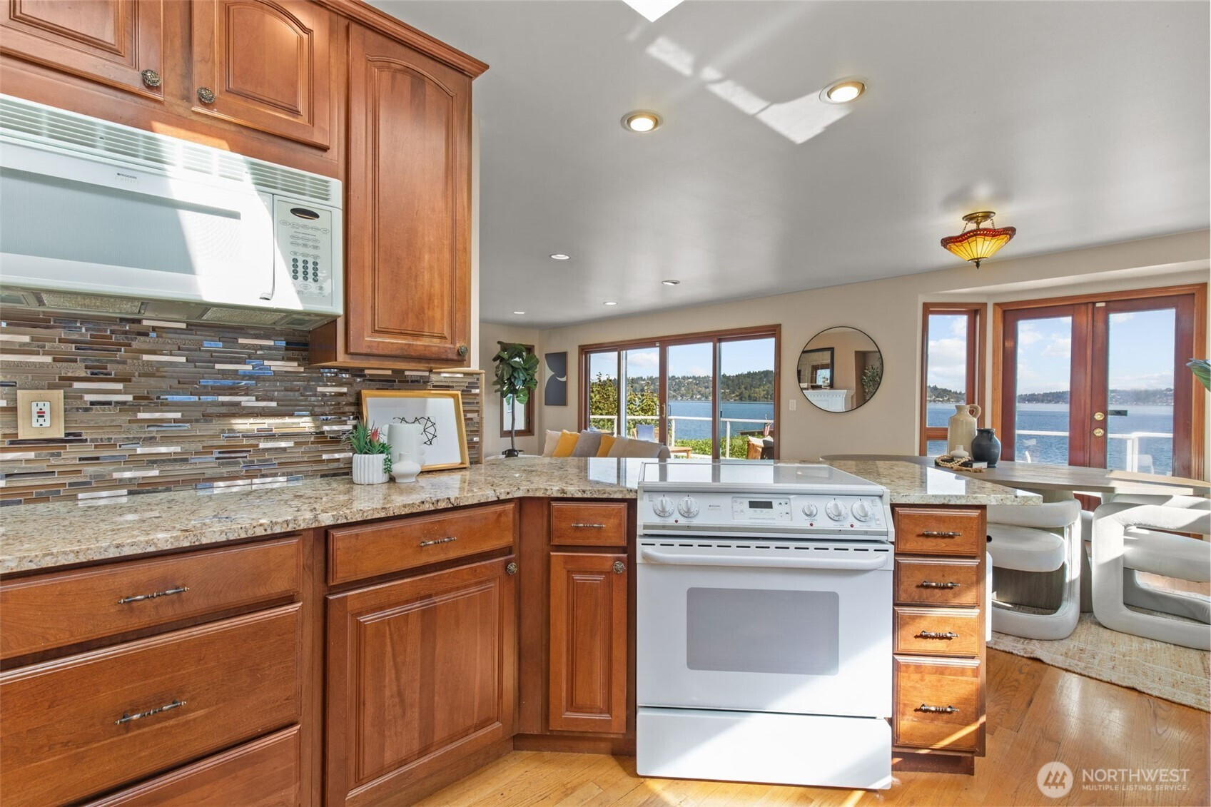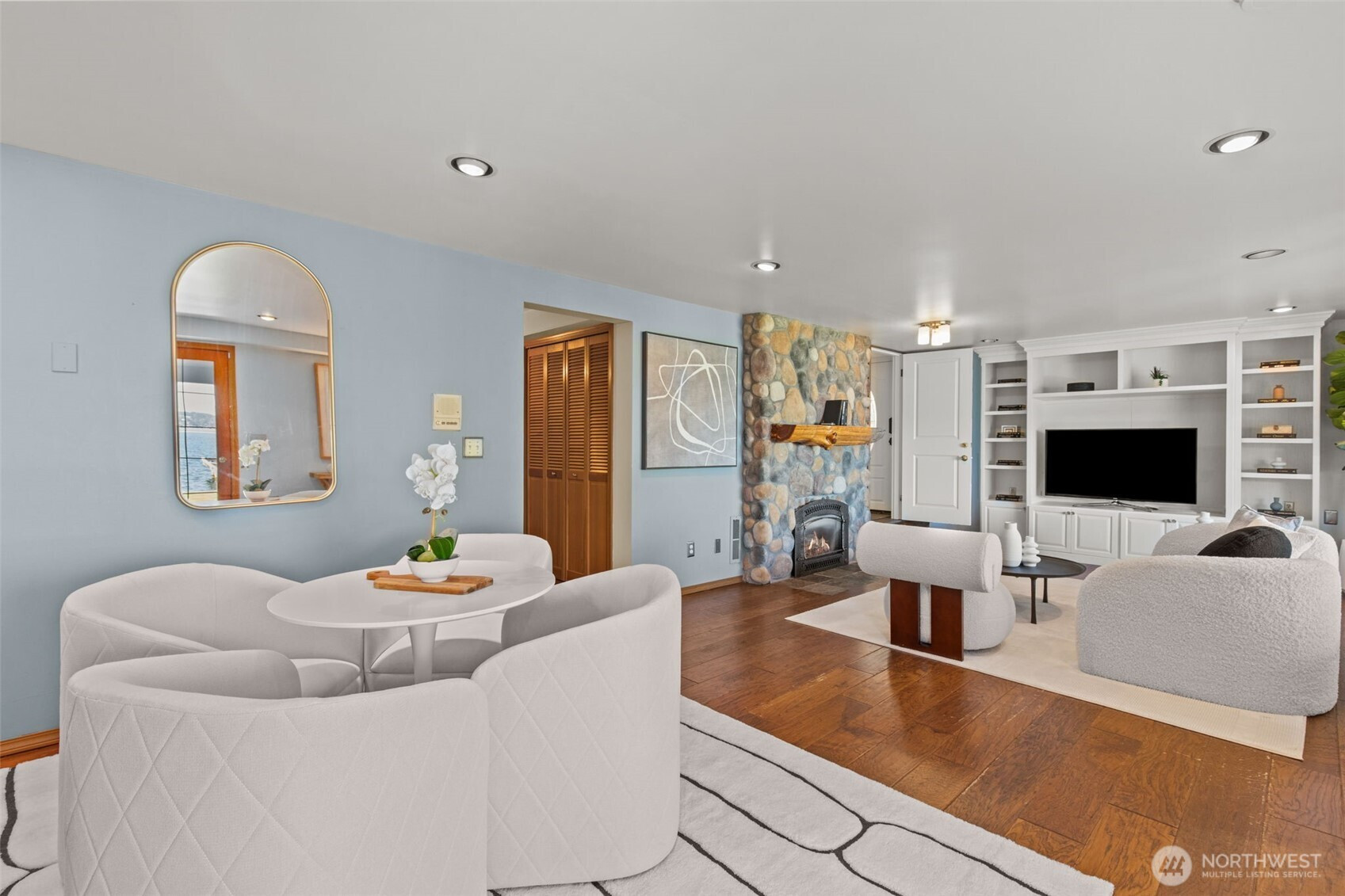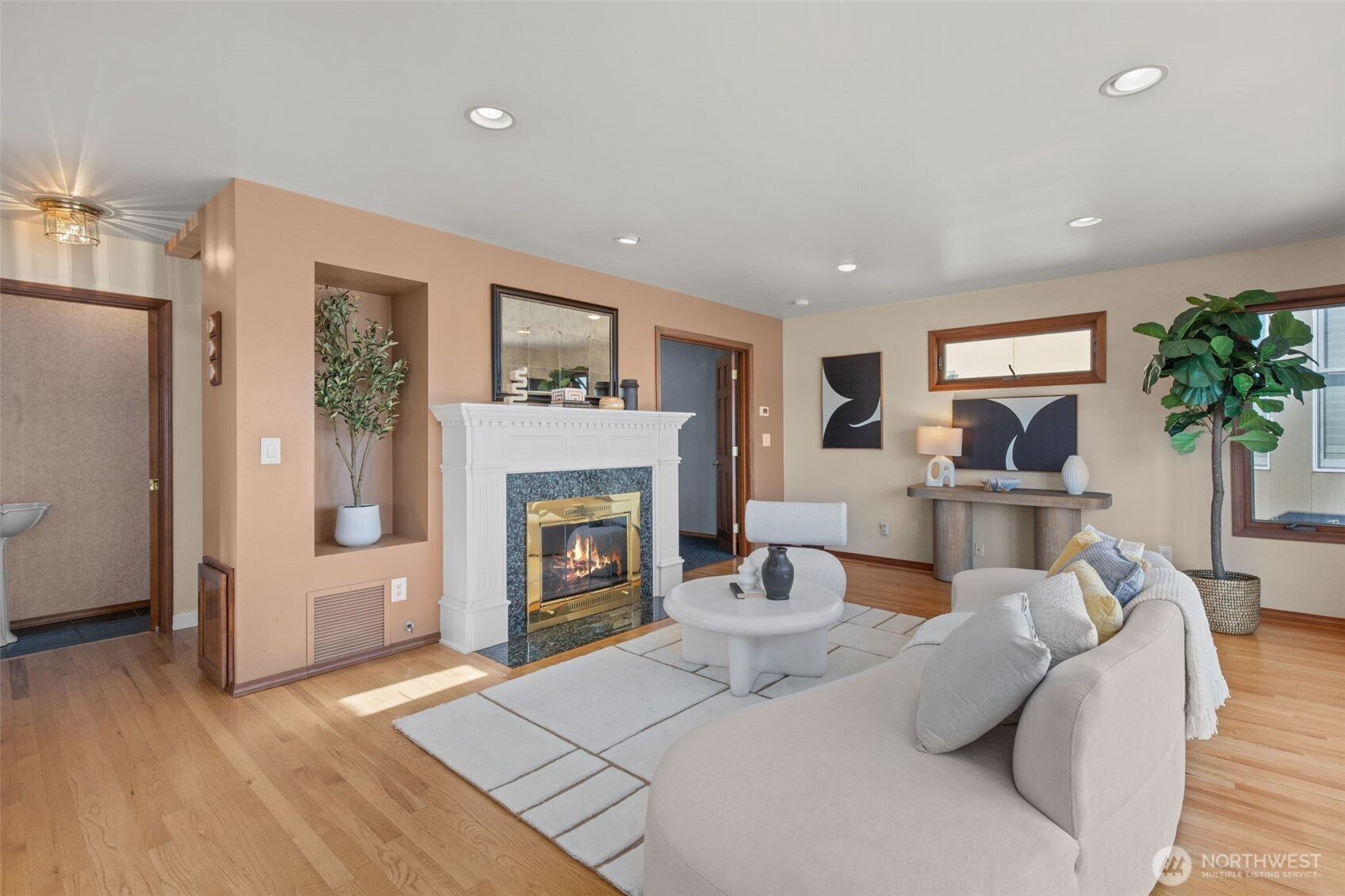 Experience the ultimate lakefront lifestyle with 40’ of prime Lake Washington waterfront! This low-bank property offers moorage, dock, and boat slip. Take in stunning views of the lake, mountains, and city from this beautifully finished home. A large deck creates the perfect space for entertaining. The main floor boasts a great room with kitchen, dining, and living areas, featuring oak hardwood floors and cherry cabinets. The primary suite includes an en-suite bath with dual shower and two-person jetted tub. The lower-level “Lodge” style family room highlights a striking river stone fireplace. Nestled on a quiet private lane, this home combines serenity, comfort, and unmatched waterfront living.
