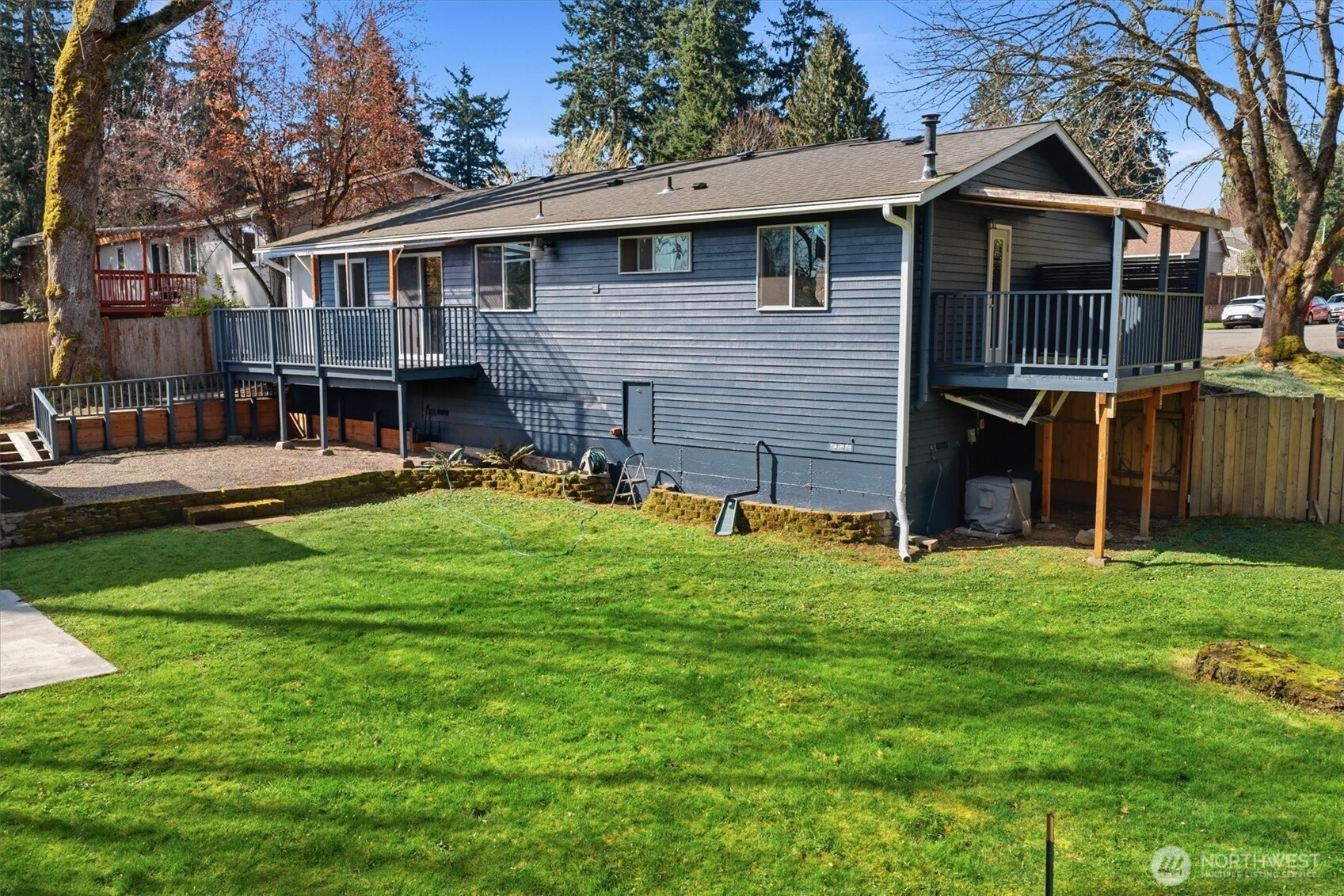 Welcome to this charming rambler nestled in Redmond’s highly sought-after Education Hill neighborhood. This beautifully updated home blends comfort, style, and functionality throughout. Step inside to discover a thoughtfully refreshed interior featuring fresh paint and stylish flooring, creating a bright and inviting atmosphere. The updated kitchen offers quartz countertops, solid shaker cabinetry, a gas cooktop and a window overlooking the spacious backyard, with a slider to a covered deck-perfect for relaxing or entertaining. Flexible floor plan includes a bonus room ideal as a 4th bedroom, office or extended dining area. The fully updated bathroom features a deep soaking tub with tiled walls, a subway tile backsplash, a new light fixture & a TOTO washlet bidet. Primary bedroom with access to a second covered deck. Enjoy the expansive, flat backyard with gazebo, garden beds, and peaceful greenbelt and trail backdrop. Garage offers great storage with potential to convert back to a full one-car garage. Additional updates include newer roof, new exterior paint, new hot water tank, and gas heating with A/C. Conveniently located near Redmond Town Center, light rail station, Downtown Woodinville, with easy access to major tech hubs such as Microsoft and Nintendo. The top-rated Lake WA SD, with Redmond HS and Mann Elementary just a short distance away. Pre-inspected, all minor items are repaired. Ready to move in. Great starter home or future build opportunity-don’t miss it!