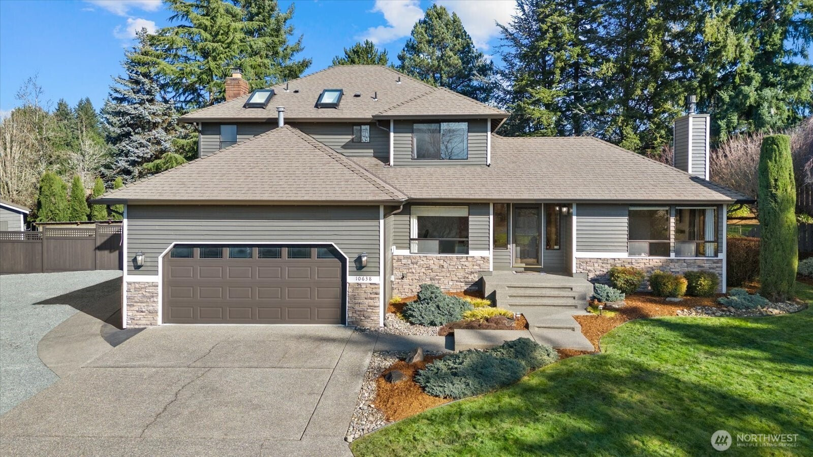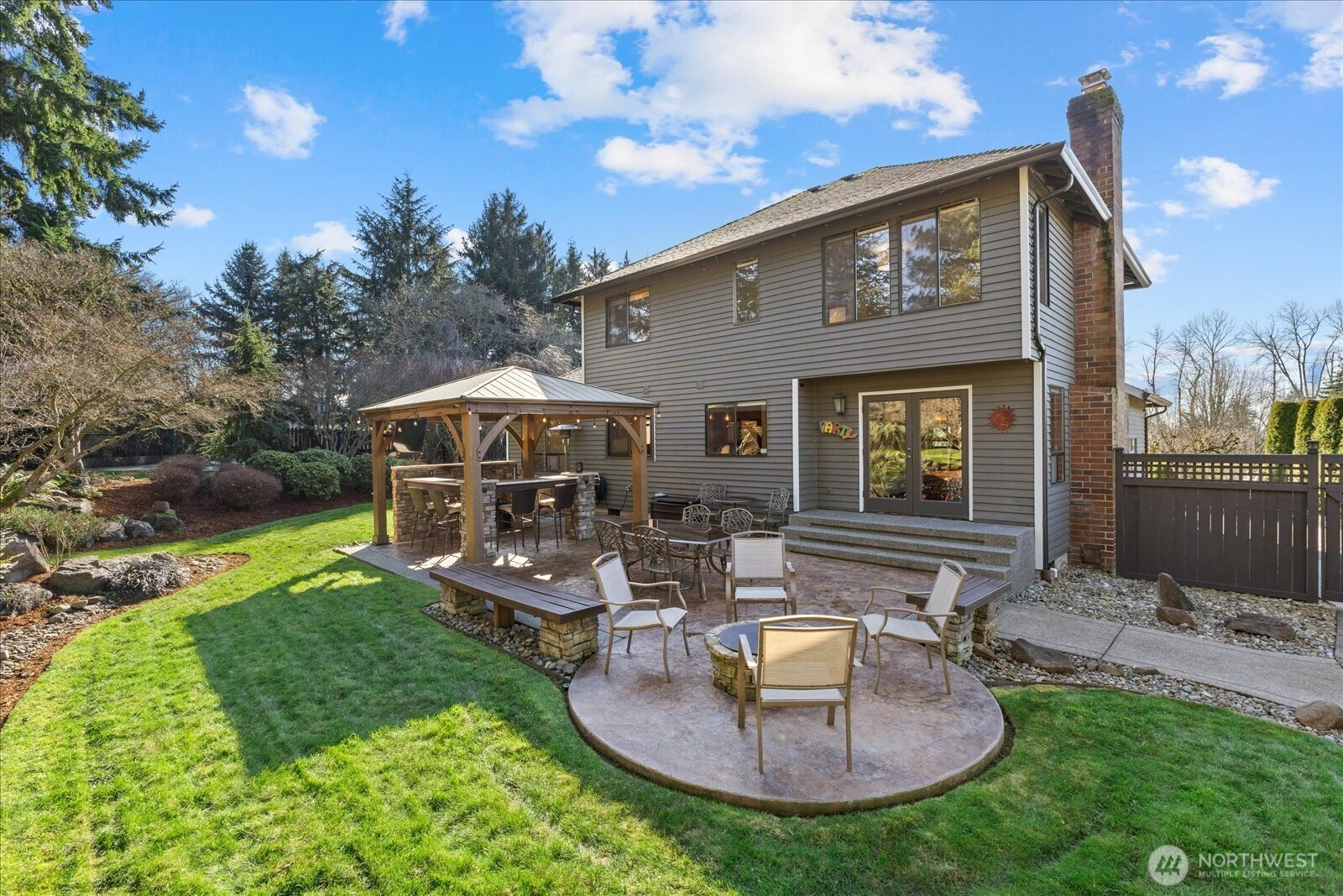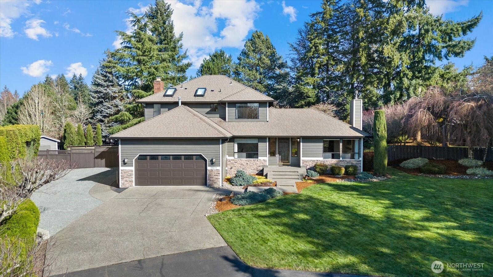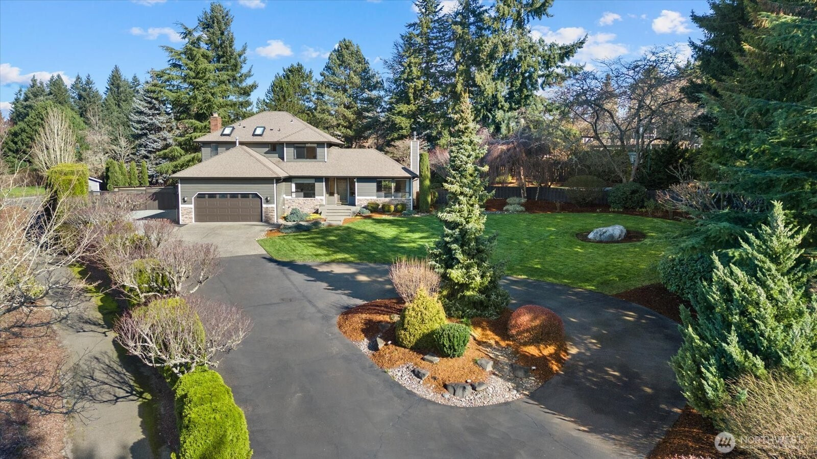 (503) 893-8874Back on market- no fault of the seller. Located in an upscale Lea Hill neighborhood on a private, large lots and territorial views, this beautifully maintained home sits on a rare .81-acre park-like lot with mature landscaping and exceptional privacy. A circular driveway with RV parking creates an impressive arrival, while cedar trees and generous outdoor living spaces enhance the serene setting. Inside, vaulted ceilings with exposed wood beams elevate the main living areas. Hardwood floors flow from the entry to the kitchen and nook. The living room features a gas fireplace, and the main-floor den offers built-ins and a desk. The formal dining room showcases wood beams and an iron chandelier. The kitchen includes granite tile countertops, pantry storage and opens to the family room with a striking rock wood-burning fireplace and illuminated built-ins. The laundry room offers vintage-style flooring, wood counters, and a utility sink, plus a charming half bath with wainscoting. Upstairs are three bedrooms and an updated guest bath with beehive tile flooring and marble counters. The light-filled primary ensuite features diagonal tile floors, marble counters, a tiled shower with bench, and a custom closet. French doors open to a stamped concrete patio with built-in seating and gas fire pit. A pergola-covered outdoor kitchen, a lighted pickleball/basketball court, additional fire pit, and lush landscaping complete this exceptional property near Hwy 18, 167, Boeing, shopping.