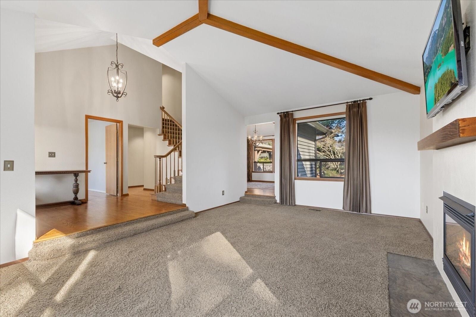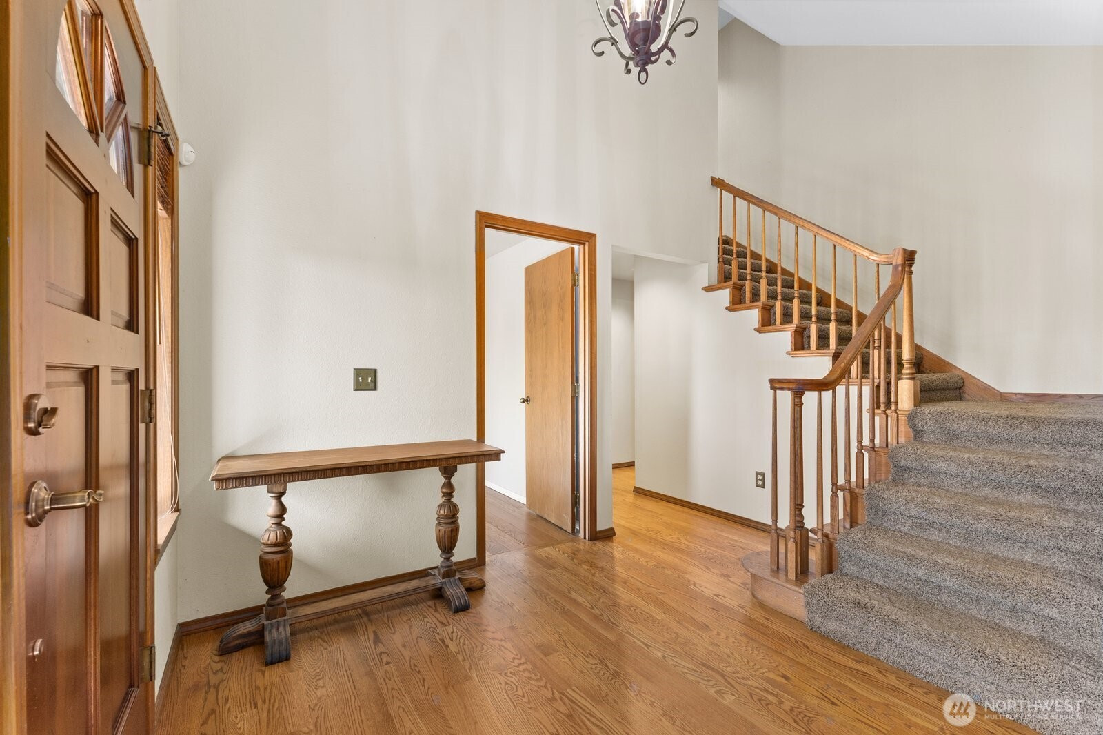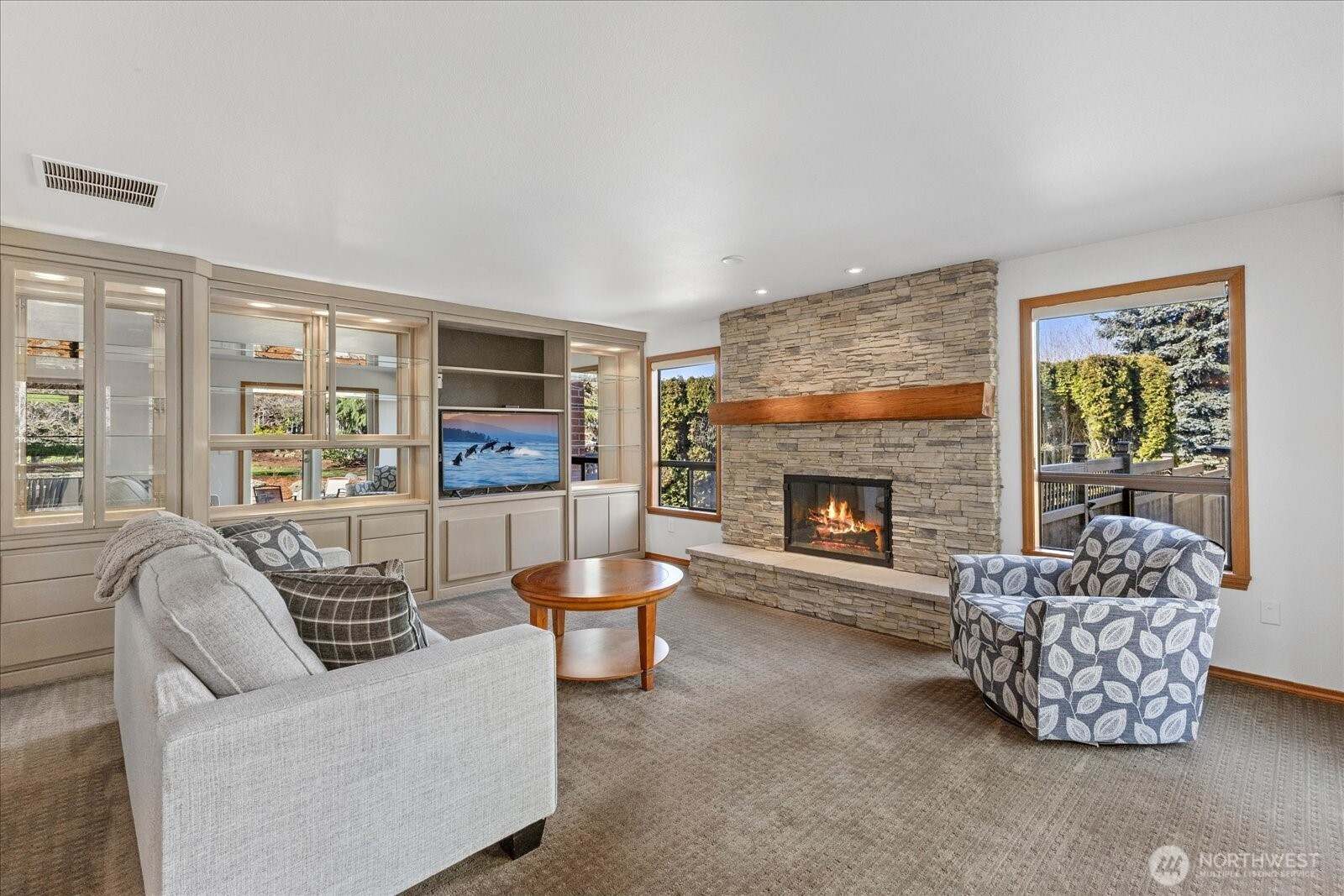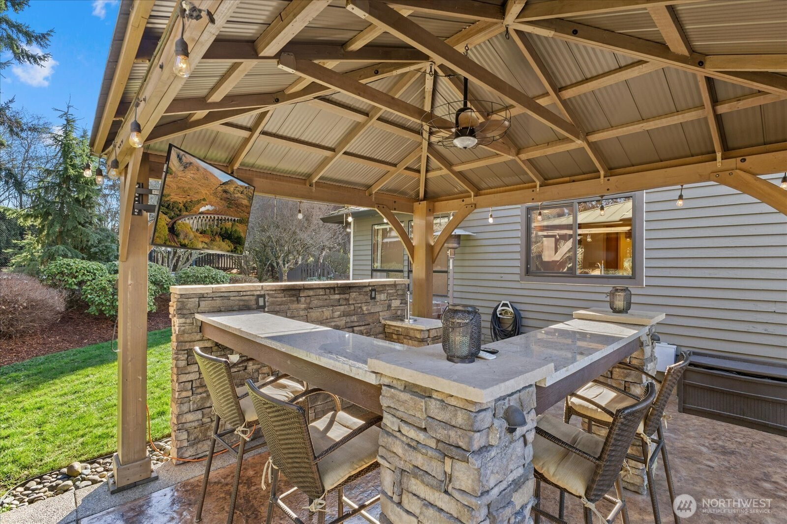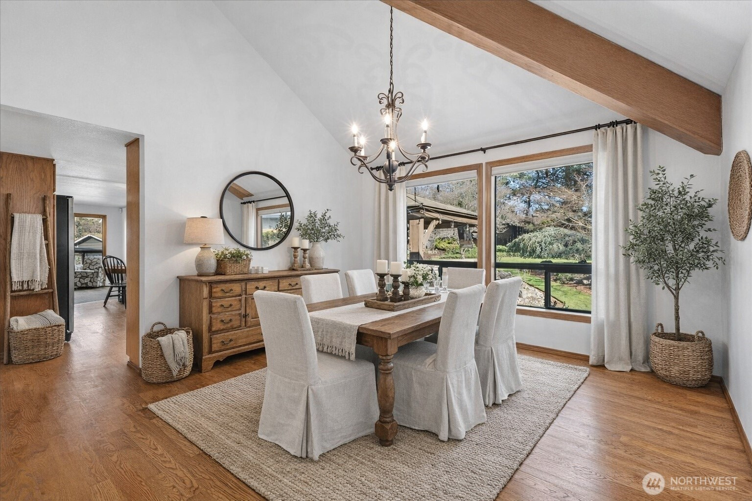 (503) 893-8874Back on market- no fault of the seller. Located in an upscale Lea Hill neighborhood on a private, large lots and territorial views, this beautifully maintained home sits on a rare .81-acre park-like lot with mature landscaping and exceptional privacy. A circular driveway with RV parking creates an impressive arrival, while cedar trees and generous outdoor living spaces enhance the serene setting. Inside, vaulted ceilings with exposed wood beams elevate the main living areas. Hardwood floors flow from the entry to the kitchen and nook. The living room features a gas fireplace, and the main-floor den offers built-ins and a desk. The formal dining room showcases wood beams and an iron chandelier. The kitchen includes granite tile countertops, pantry storage and opens to the family room with a striking rock wood-burning fireplace and illuminated built-ins. The laundry room offers vintage-style flooring, wood counters, and a utility sink, plus a charming half bath with wainscoting. Upstairs are three bedrooms and an updated guest bath with beehive tile flooring and marble counters. The light-filled primary ensuite features diagonal tile floors, marble counters, a tiled shower with bench, and a custom closet. French doors open to a stamped concrete patio with built-in seating and gas fire pit. A pergola-covered outdoor kitchen, a lighted pickleball/basketball court, additional fire pit, and lush landscaping complete this exceptional property near Hwy 18, 167, Boeing, shopping.