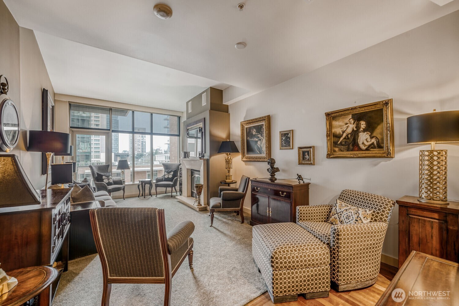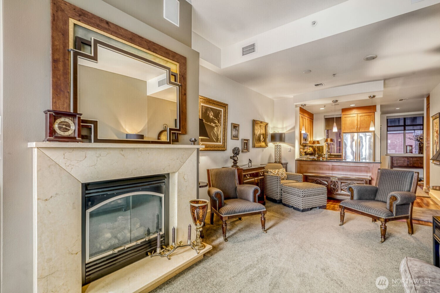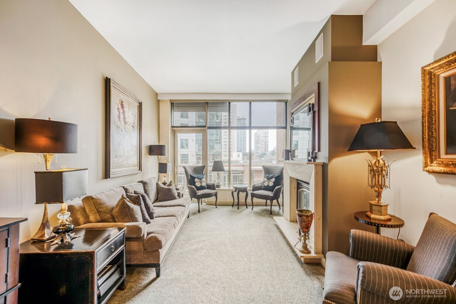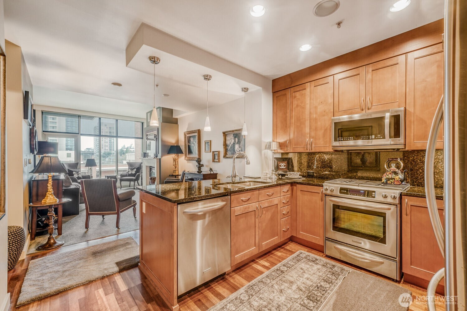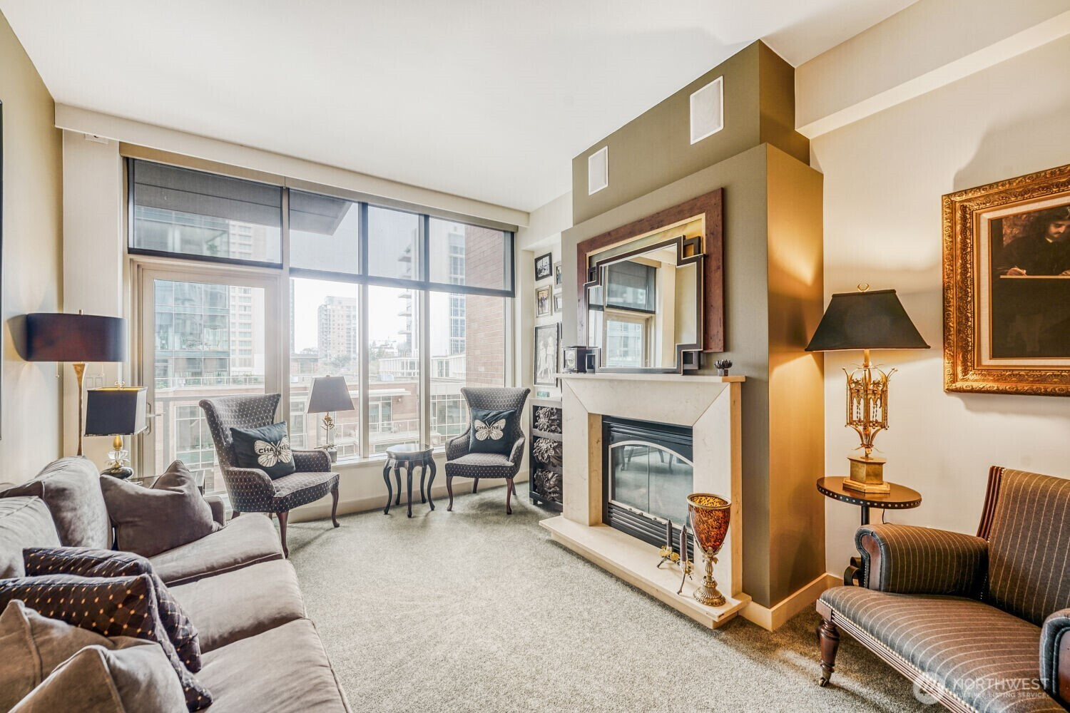 Experience the pinnacle of urban sophistication in this stunning Courtyard unit. This 1 bedroom features 9ft plus ceiling, hardwood floors, slab granite counters, stainless steel Kitchen Aid appliances, gas fireplace with marble mantel, California Closets, 5.1 wired surround sound, central A/C and remote controlled window coverings. Relish in Washington Square’s amenities – 24 hr concierge, updated fitness facility, spa, sauna & owner’s lounge. A walker’s paradise for work & play. One parking stall + storage. Steps from Amazon, Bellevue Square, and Downtown Park. Rental cap not met.