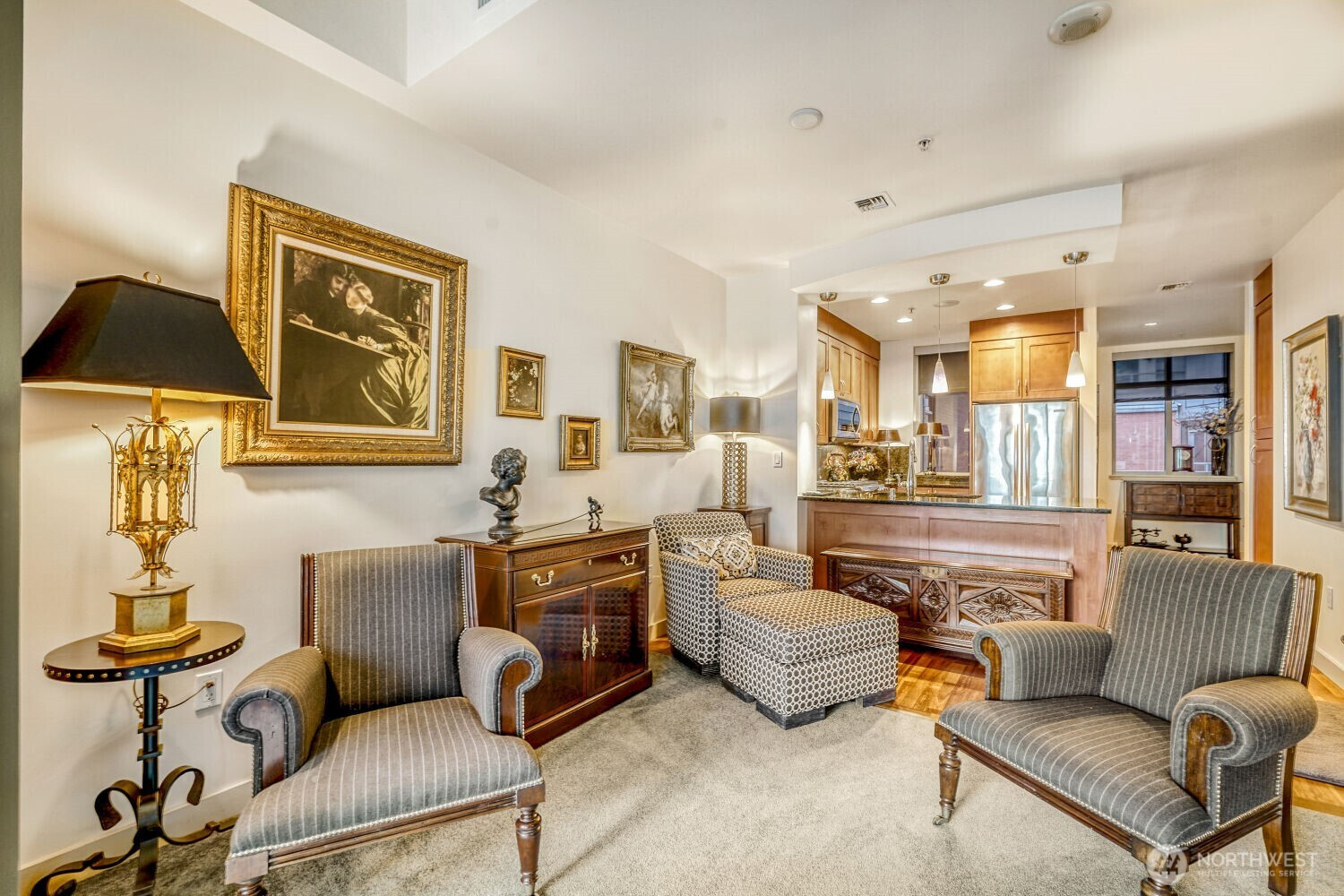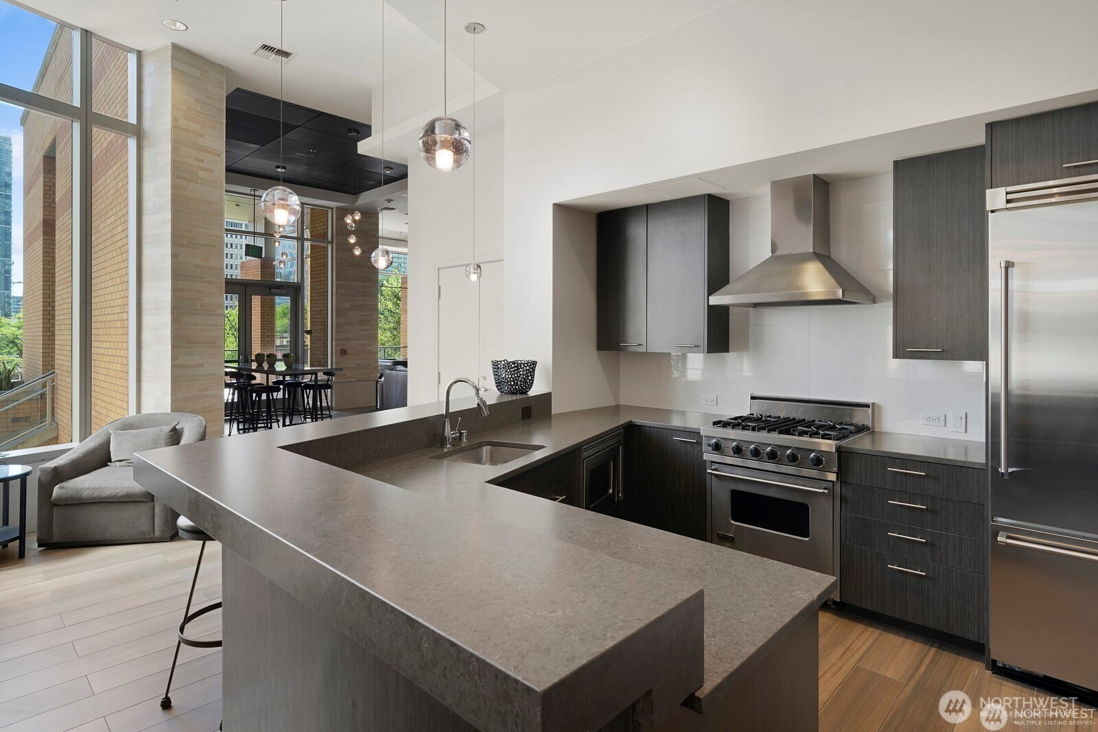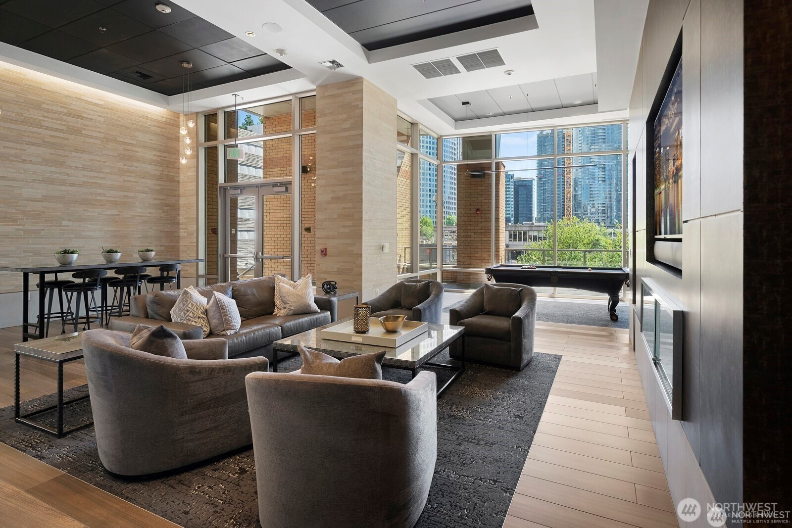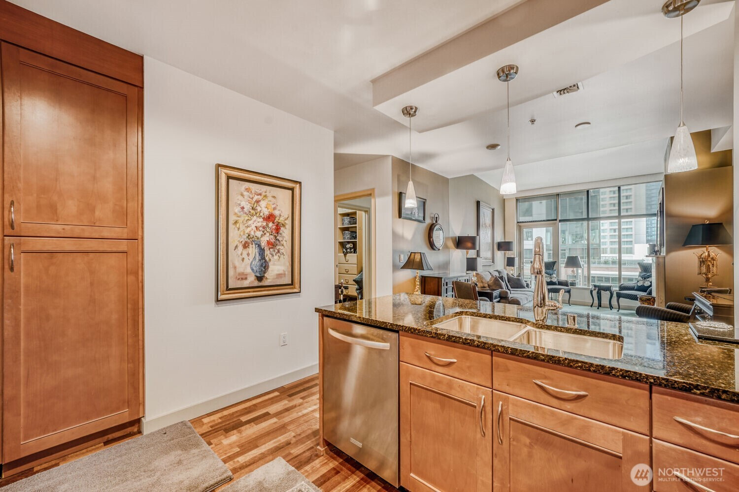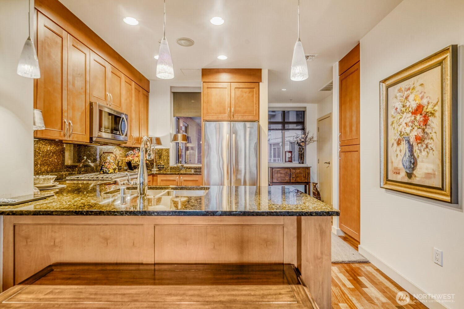 Experience the pinnacle of urban sophistication in this stunning Courtyard unit. This 1 bedroom features 9ft plus ceiling, hardwood floors, slab granite counters, stainless steel Kitchen Aid appliances, gas fireplace with marble mantel, California Closets, 5.1 wired surround sound, central A/C and remote controlled window coverings. Relish in Washington Square’s amenities – 24 hr concierge, updated fitness facility, spa, sauna & owner’s lounge. A walker’s paradise for work & play. One parking stall + storage. Steps from Amazon, Bellevue Square, and Downtown Park. Rental cap not met.