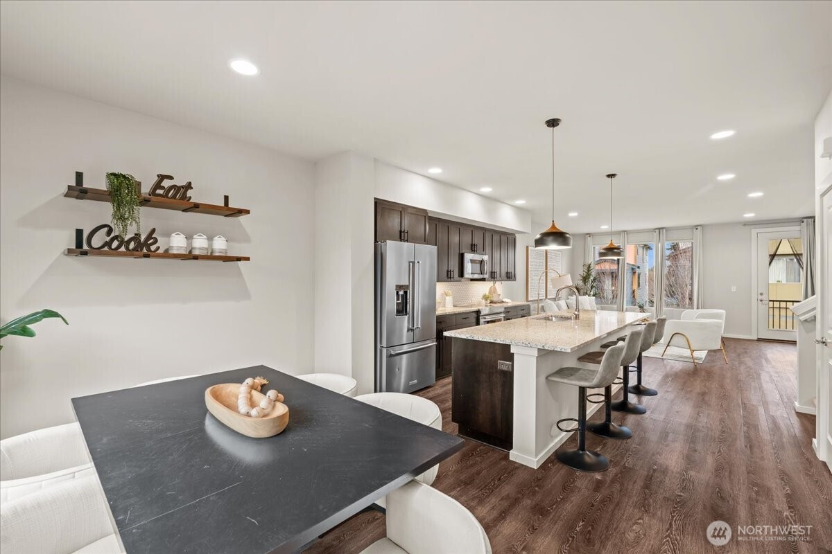 Experience refined modern living in this light-filled corner-lot residence where thoughtful design meets everyday comfort. Positioned to capture abundant natural light, this home offers a seamless blend of style, functionality, and access to West Seattle amenities and community parks. The open-concept main level invites connection, featuring a spacious kitchen with quartz countertops, stainless steel appliances, a large island, and a walk-in pantry, all flowing effortlessly into the dining and living areas. As you enter, vaulted ceilings above the upper level create an open, airy feel that enhances the sense of space. A mini-split system provides year-round comfort, and the home has been pre-inspected for added transparency. Upstairs, three bedrooms include a primary suite with a double vanity, a walk-in closet, and a well-designed bath, along with conveniently located laundry. The lower level offers a private guest suite with a bathroom, suitable for multigenerational living, extended stays, or workspace. Outdoor living includes a low-maintenance backyard with a pergola. A two-car garage adds storage and convenience. Located near Lincoln Park, Roxhill Park, Westwood Village, Longfellow Creek Trail, cafés including Starbucks and Caffe Ladro, plus nearby playgrounds, and minutes to South Lake Union. Schedule your private tour. Close to public transit and minutes away from the Link and the airport. Schedule your private tour.