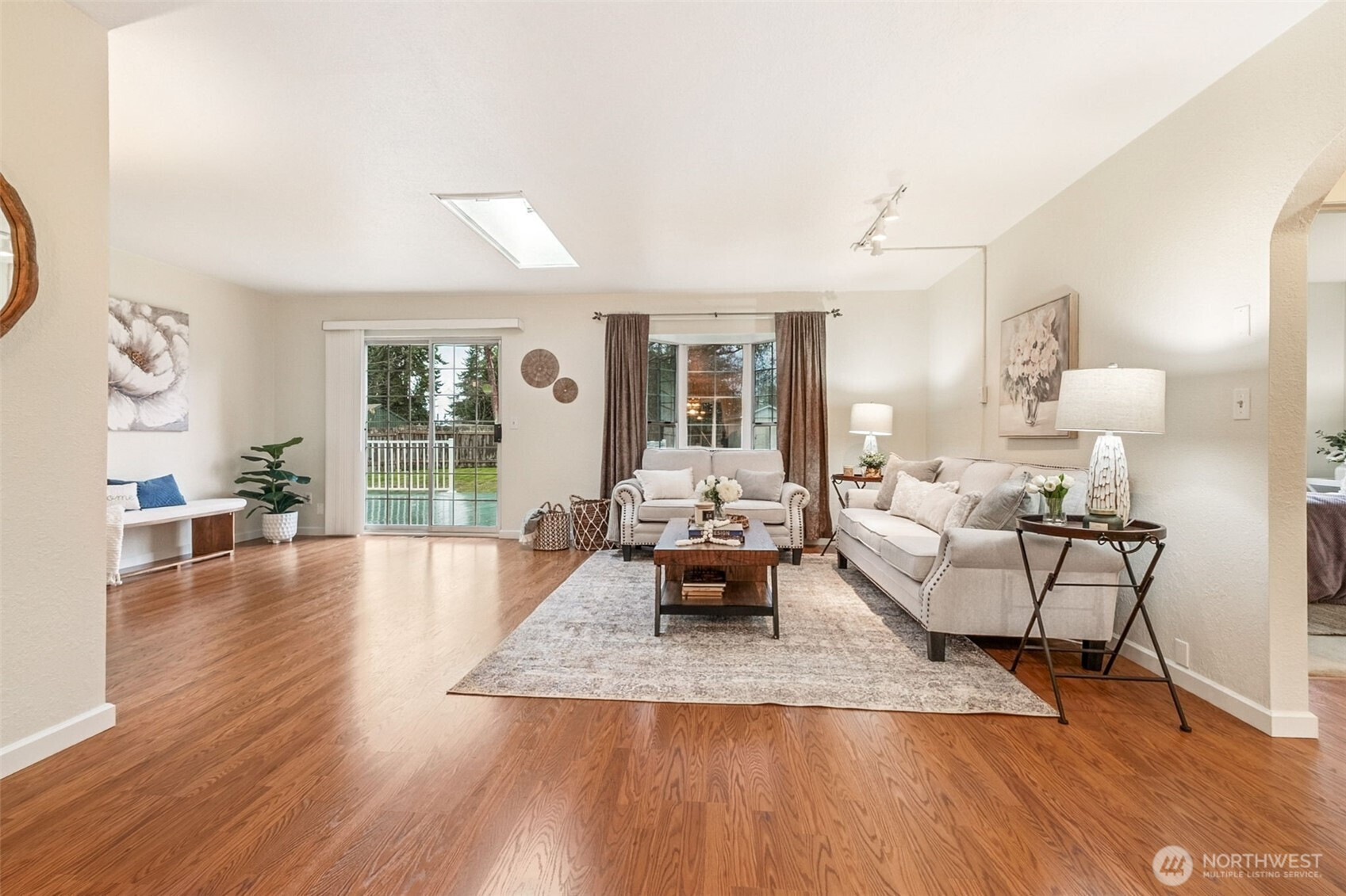 Owners’ meticulous care and maintenance, both interior and exterior, is evident throughout this charming single-level home. A bright, welcoming floorplan with skylights and bay windows fills the living spaces with natural light. Thoughtful updates, including new AC in 2023, gorgeous hickory cabinetry in the kitchen, new laminate flooring, and beautifully remodeled bathrooms, add to the comfort and appeal. The expansive fenced yard is ideal for entertaining, gardening, or play, with an oversized deck and established garden beds featuring asparagus and raspberries. A detached garage plus abundant driveway parking provide versatility. Close to schools, shopping, light rail, and SeaTac, this home offers convenience, style, and room to thrive.