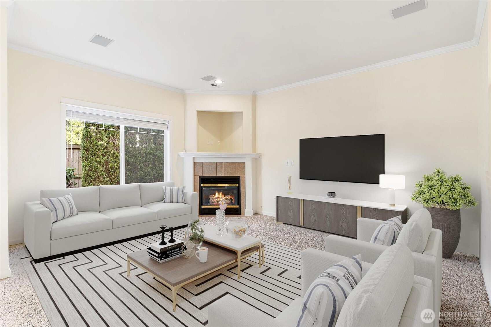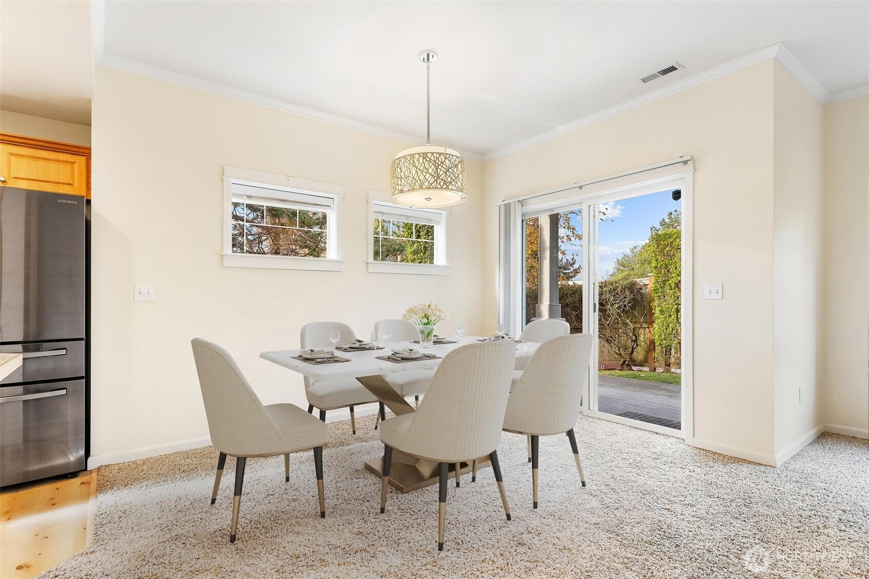 Experience effortless living in the sought-after Hampton East gated community. This charming end-unit condo features brand-new luxury vinyl plank flooring, a cozy fireplace in the inviting living space, and a spacious two-car garage. The grand primary suite offers a walk-in closet and private ensuite, complemented by two additional bedrooms. Enjoy a serene backyard with a covered patio, plus access to the community clubhouse. All just minutes from Lake Meridian, Kent Meridian High School and surrounded by endless amenities including shops, grocery, dining, and more.