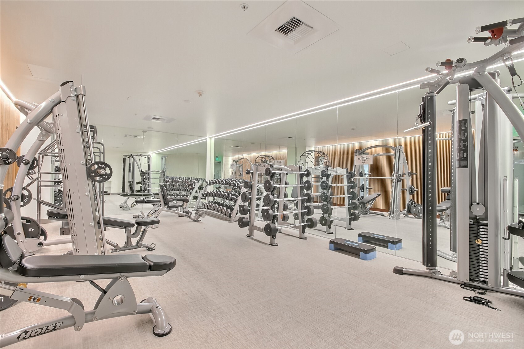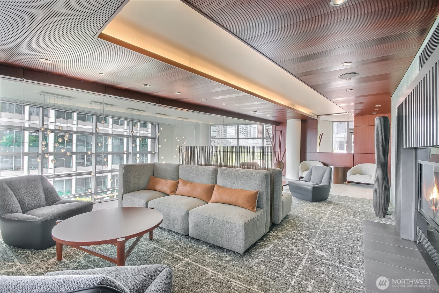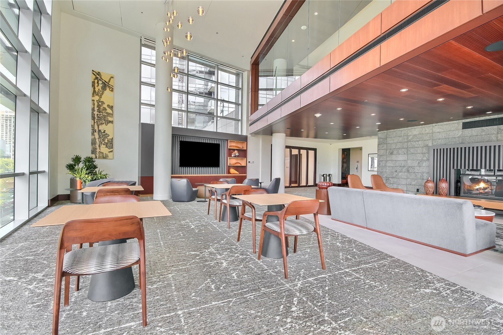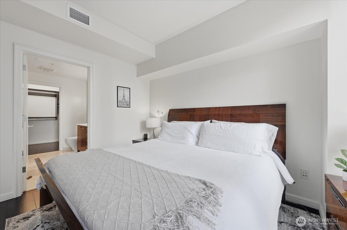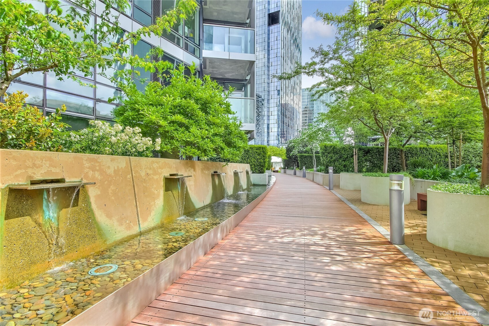 Experience refined urban living in this exceptional Bellevue Towers residence. This spacious 1,354 sq. ft. floor plan features a gallery entry that flows into an open-concept living area—perfect for maintaining positive Qi (energy).Balancing modern luxury and timeless elegance, this residence features sweeping city views and premium finishes throughout for an elevated lifestyle in the heart of downtown. Recently installed gleaming solid hardwood floors and a chef-inspired kitchen with quartz slab countertops and backsplashes, the unique backlit Cristallo stone accents in the custom-built den and bathrooms, creating a sophisticated ambiance. Nine-foot ceilings and abundant natural light highlight the clean architectural lines designed for seamless entertaining. The spacious primary suite accommodates a king-size bed and boasts a walk-in closet and a luxurious ensuite with dual vanities and a walk-in shower. A private deck with a BBQ hookup extends the living space outdoors, while a separate laundry room serves also as additional storage space. This smart home controls automated blinds on all windows, lighting, and a Nest thermostat. For added convenience, the dedicated parking space is ideally located close to the elevator. Residents enjoy world-class amenities: two fitness centers, a spa with a sauna, steam room, and plunge pool, a screening room, and an urban garden with fireplaces. Just steps from Bellevue’s premier dining and shopping, this is where luxury meets location.