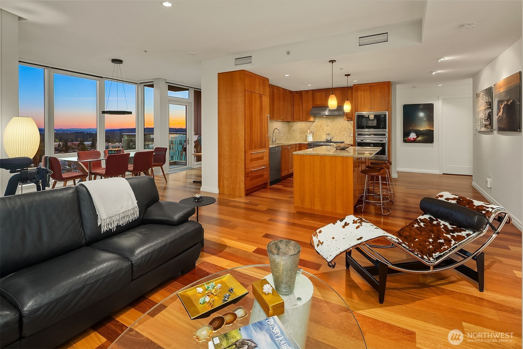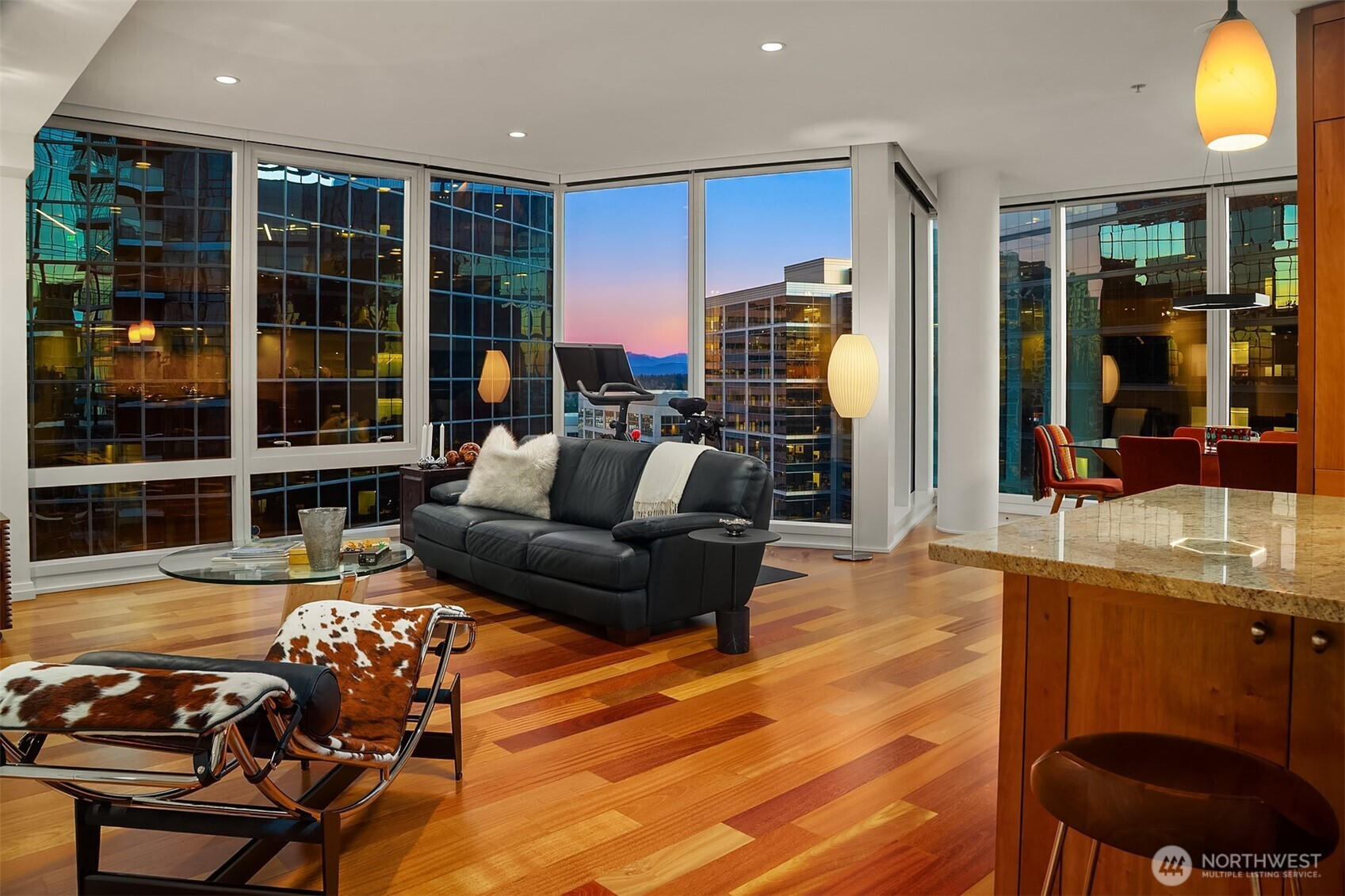 Residence 2412 rises twenty four floors above the city, offering a refined two bedroom home with open den in one of the Eastside’s most enduring architectural landmarks—Bellevue Towers. Floor to ceiling glass frames city, lake, and mountain outlooks while benefiting from the prized corner stack as daylight transitions into evening. The thoughtfully designed layout separates the primary suite from the guest bedroom, while the open den provides flexible space ideal for a home office or additional living area. A chef’s kitchen appointed with SubZero and Wolf appliances opens seamlessly to the main living space—intentional, elegant, and built for living well. Bellevue Towers delivers full service living with 24-hour concierge, newly reimagined wellness and fitness amenities, spa, theater, resident lounges, and a private half-acre urban garden. Steps from Bellevue Square, Downtown Park, and the country’s most influential employers, Residence 2412 offers rare ownership within an address that continues to set the standard.
