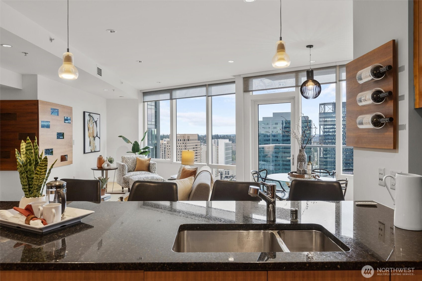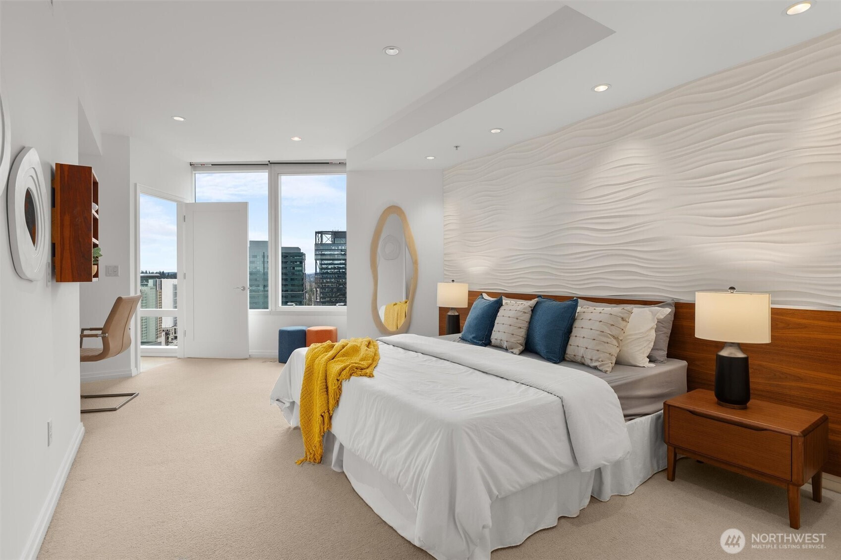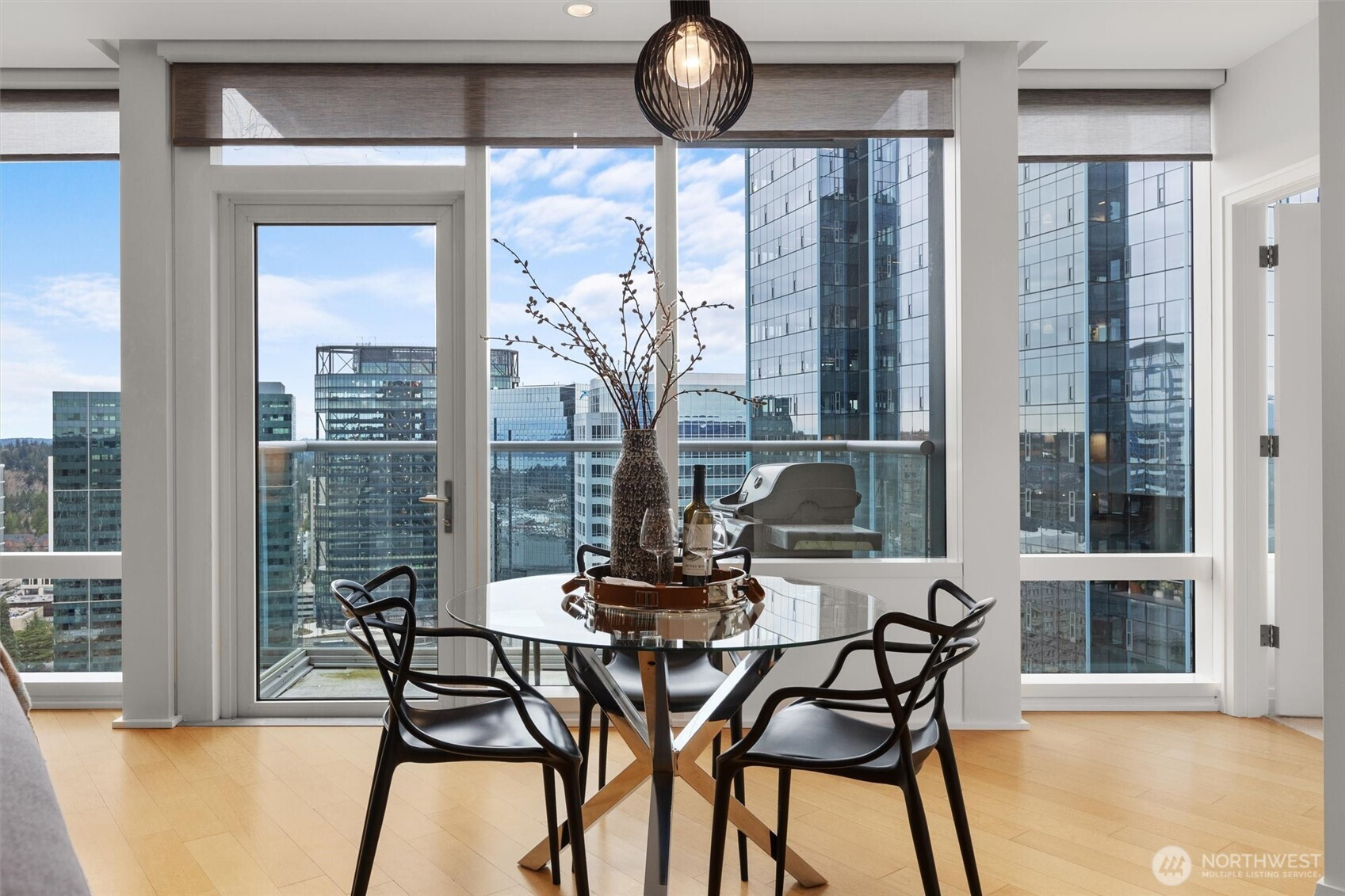 LAST CHANCE for this stunning 31st Floor Condo in the award winning Bellevue Towers. Take in breathtaking views from your light-filled primary suite with a spa-inspired bath and walk-in closet. Chefs will enjoy the kitchen featuring Viking appliances, custom cabinetry, and panoramic skyline views. Step onto the covered patio with gas hookup for year-round enjoyment. Includes a spacious laundry room with abundant storage with washer and dryer included. Resort-style amenities include full spa, hot tub, sauna, steam room, cold plunge, gym, garden terrace, and game room. Garage parking with EV upgrade option. Steps away from Bellevue’s finest restaurants, parks, and shopping. Motivated Seller!