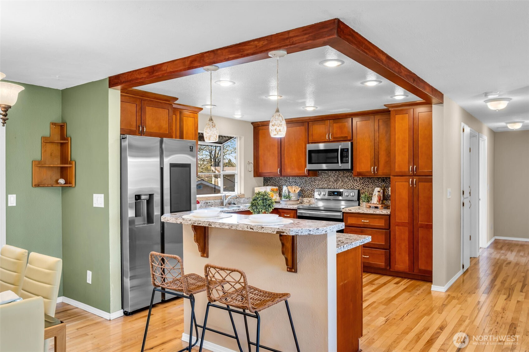 Charming and move-in ready 4-bedroom, 1.75-bath home featuring a beautifully remodeled open-concept kitchen with sleek stainless steel appliances, stunning cabinetry, and a layout perfect for both everyday living and entertaining. Step outside to a spacious entertainment deck with a gazebo, ideal for gatherings, summer evenings, or simply relaxing in your own private outdoor retreat. This property offers exceptional versatility with RV parking, an attached 2-car garage, and a 16x16 powered shop. It's just perfect for hobbies, storage, or workspace needs. A wonderful blend of comfort, functionality, and inviting charm, this is a home you won’t want to miss!