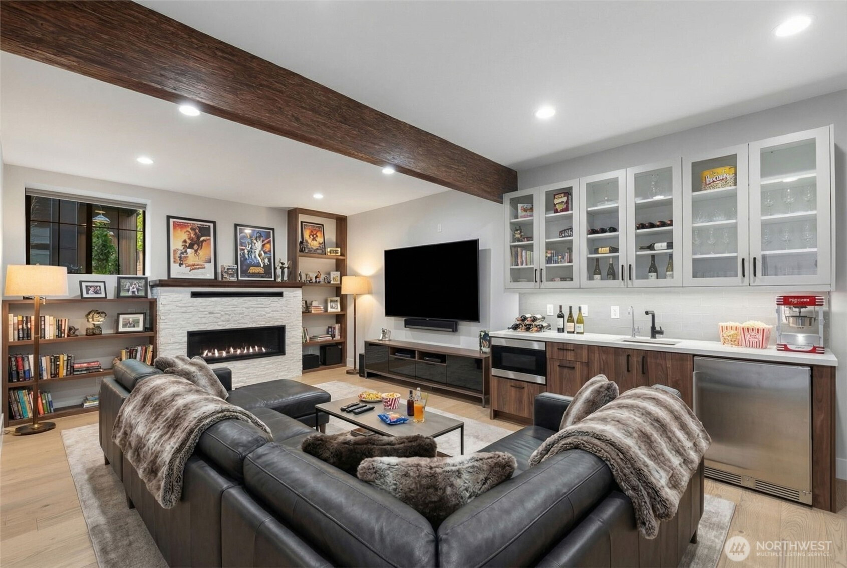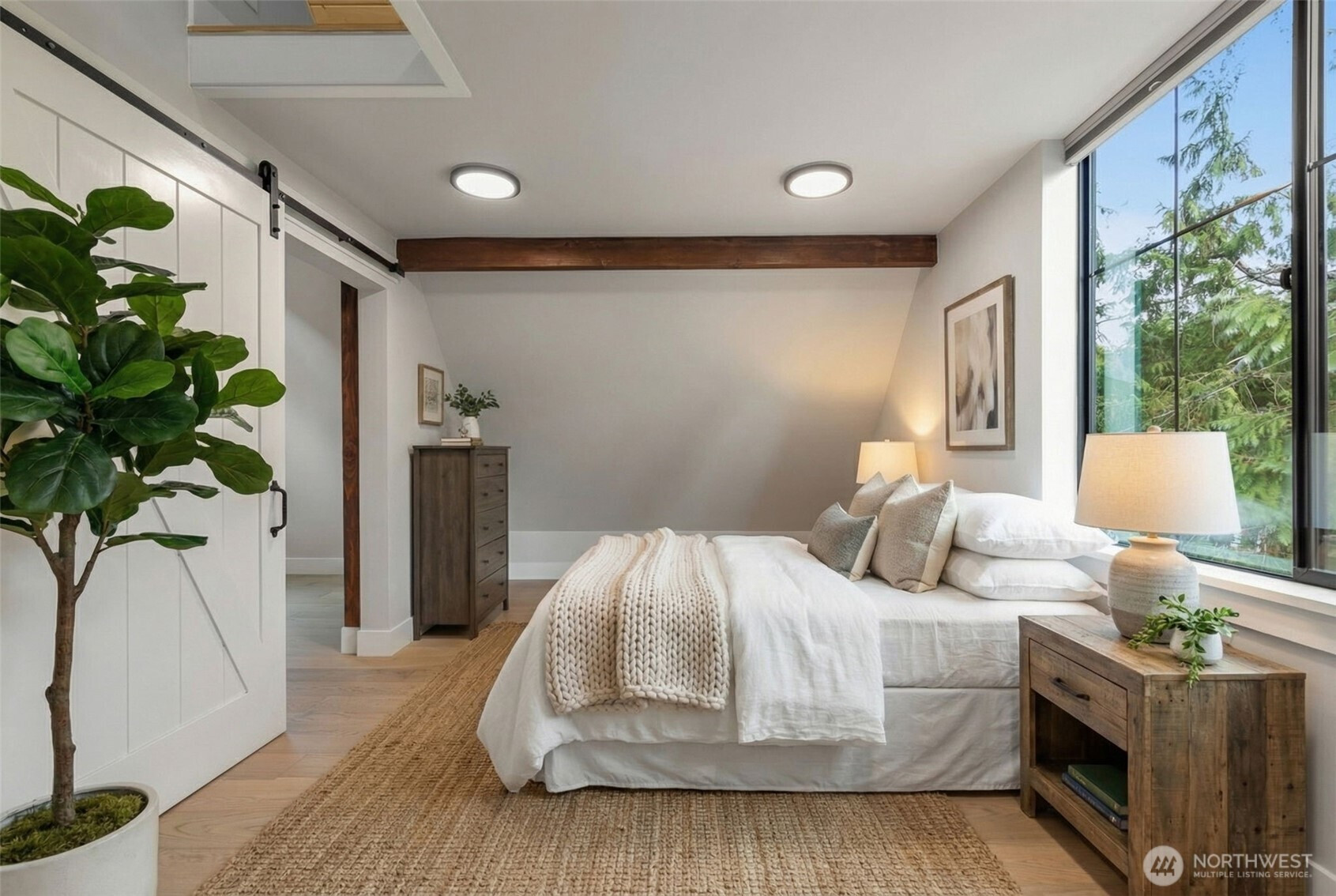 Rarely within the city will you find a more peaceful and unique home nestled off a tranquil winding forested street. Great Broadview location walking distance to Carkeek Park and great local businesses & restaurants. This home has been thoughtfully redesigned and structurally REBUILT from the original with everything brought up to current building & energy codes. All NEW building systems including PLUMBING, ELECTRICAL, MECH. & HVAC with all NEW INSULATION, WINDOWS, SIDING and etc. in 2025. Striking warm wood vaulted ceilings with exposed beams and custom woodwork add to this storybook home’s charm. Numerous windows flood bright natural light onto oak hardwood flooring and crisp modern tiles throughout. With 3 bed, 3.5 baths, office, & two- family rooms you will also find an attic "tree-house" space as well as two stone gas fireplaces. Surprises to be found around every corner. Features open concept living, kitchen, & dining with living area and master decks offering the perfect place to entertain or relax. This beautiful home is ready to be filled with all your cherished moments.
