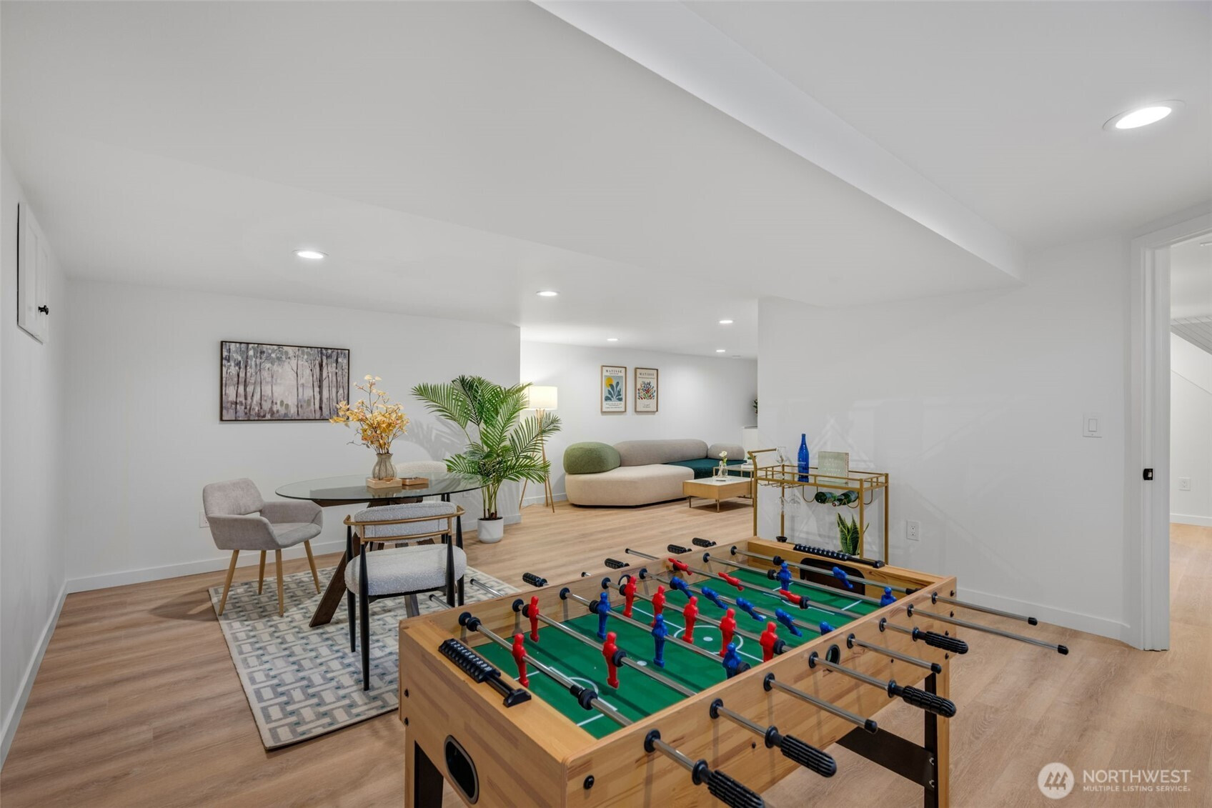 Beautifully updated North Seattle home offering space, flexibility, and future potential. This 5-bedroom, 2-bath residence features 2,550 sq ft of versatile living on a quiet street just minutes from Northgate Mall and the light rail. Extensive upgrades include a fully remodeled kitchen and baths, new flooring, upgraded doors and trim, stainless steel appliances, newer heat pump with A/C, plus fresh interior and exterior paint. Truly move-in ready. The layout is ideal for modern living, with 4 bedrooms and 2 baths on the main level and Cascade Mountain views from the living area. Downstairs offers exceptional flexibility with an additional bedroom, adjoining family room, wet bar, and a dream workshop with private entrance. Perfect for guests, multi-generational living, gym, home business, or potential studio/MIL setup. Set on a generous 7,200 sq ft fully fenced lot, the outdoor space is designed for both enjoyment and opportunity. Enjoy the BBQ patio, garden shed, a powered 12x12 shop (potential office space after adding drywall), a second 12x4 carport shed for additional storage, and ample parking including RV space. The oversized lot also presents exciting potential for future expansion, DADU/ADU possibilities, or value-adding improvements (buyer to verify). A rare combination of location, updates, lot size, and adaptability. This home offers lifestyle appeal today with investment upside for tomorrow.