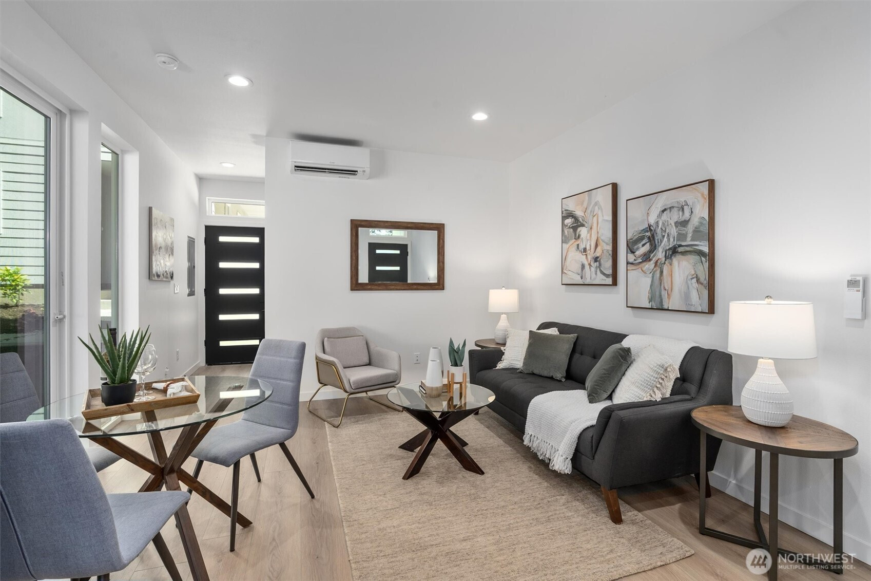 This meticulously designed Northgate residence is the pinnacle of modern urban living. The open-concept main floor is highlighted by a luxurious kitchen with stunning quartz countertops and professional-grade stainless steel appliances. Flow effortlessly into your living area where you will enjoy year round climate control with energy efficient heating and cooling. Each bedroom is on its own floor and features its own private balcony to enjoy a morning coffee or the summer breeze. The sublime primary bedroom is a true retreat complemented by a spa-inspired ensuite bathroom and a generous closet. Situated within walking distance of the Northgate Link light rail station and the vibrant redevelopment at Northgate Station, this home offers unparalleled access to downtown Seattle and the city's premier transit hubs. Dedicated off street parking spot.