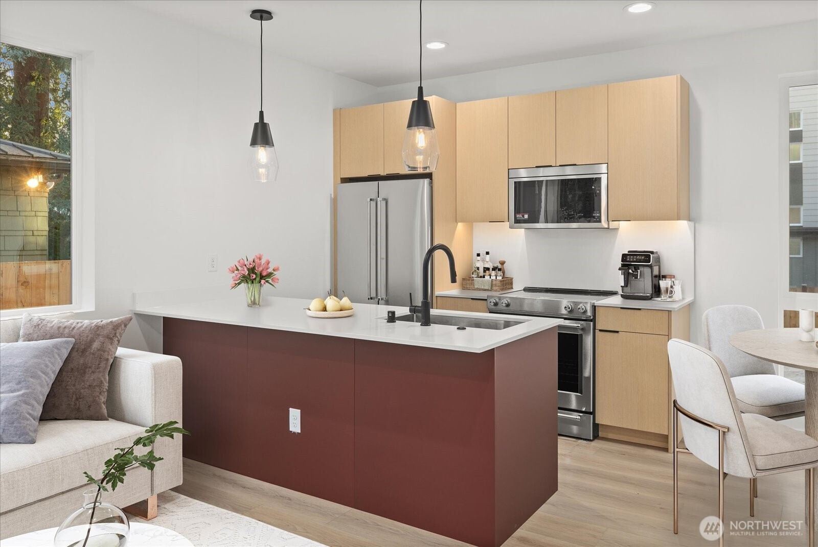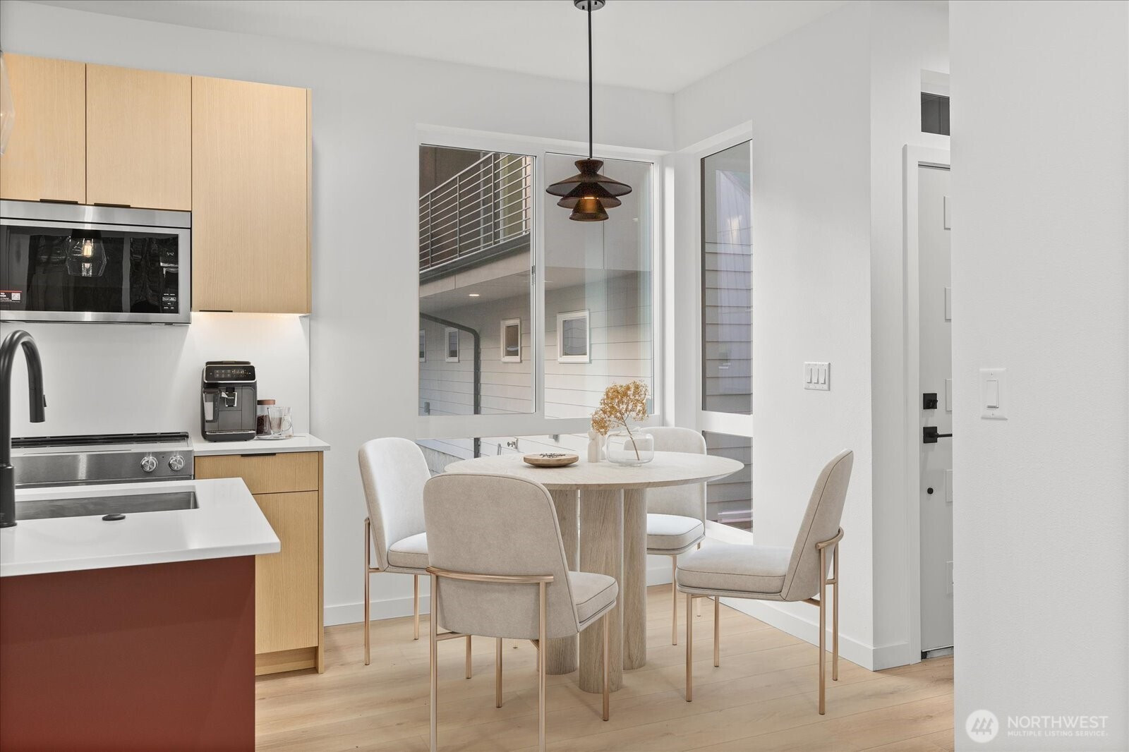 Take advantage of a $20,000 SELLER CREDIT - offering an incredible opportunity to buy down your interest rate or reduce closing costs on this brand-new Northgate masterpiece. This urban retreat stands out with its light-drenched living spaces and multiple outdoor areas. At the center of the home, the statement kitchen features custom cabinetry, modern quartz countertops, and a designer tile backsplash, all fully equipped with premium stainless-steel appliances. The main floor's open concept layout is designed for a modern lifestyle, seamlessly connecting the vibrant dining space to a sun-soaked living area. Upstairs, the luxurious primary suite serves as a true escape, featuring a spa-like ensuite bath. With ductless mini-split heating and cooling and EV-ready off-street parking, this home checks all the boxes. Located close to the Northgate Light Rail Station, local trails, and top-tier dining, this home lets you enjoy the best of North Seattle living.