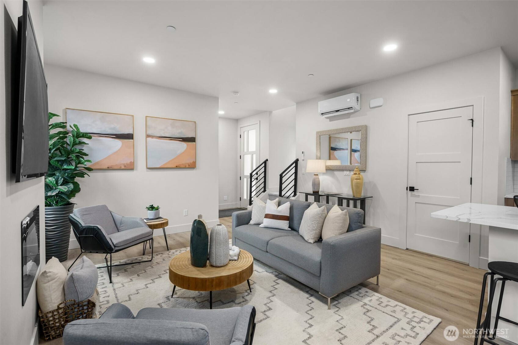 Stunning new construction by Holden Development Group in sought-after South Juanita. Thoughtfully designed with modern elegance and quality craftsmanship, this light-filled home features an open-concept main level ideal for everyday living and entertaining. The gourmet kitchen offers a spacious island with seating, premium stainless appliances, sleek cabinetry, and generous prep space, flowing seamlessly into the dining area and inviting living room. Upstairs, retreat to the luxurious primary suite complete with a spa-inspired bath and generous walk-in closet. A second spacious bedroom, full bath, and conveniently located upper-level laundry enhance functionality and comfort. Enjoy a private fenced yard and patio perfect for relaxing or hosting gatherings, plus one EV-ready parking space. Ideally located near parks, beaches, Juanita Village, and just minutes to downtown Kirkland with easy access to major tech campuses. Top-rated Lake Washington School District, this home blends modern style, smart design, and an unbeatable Eastside location.