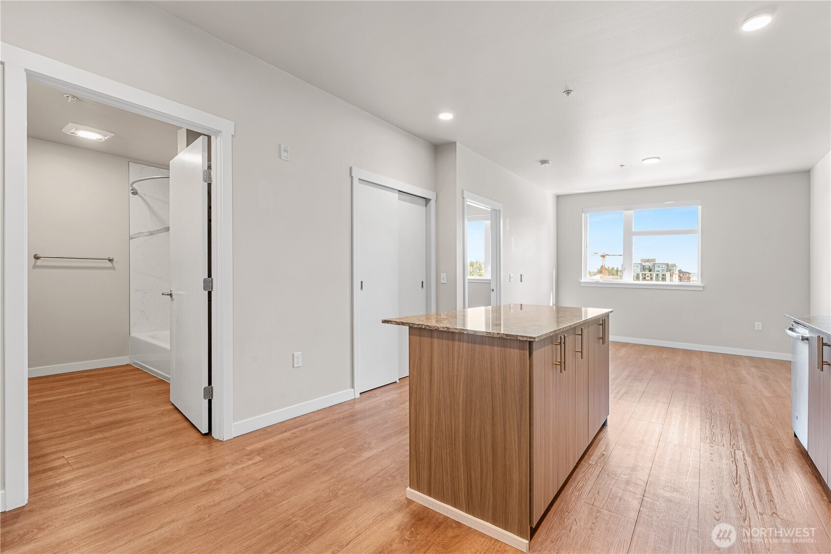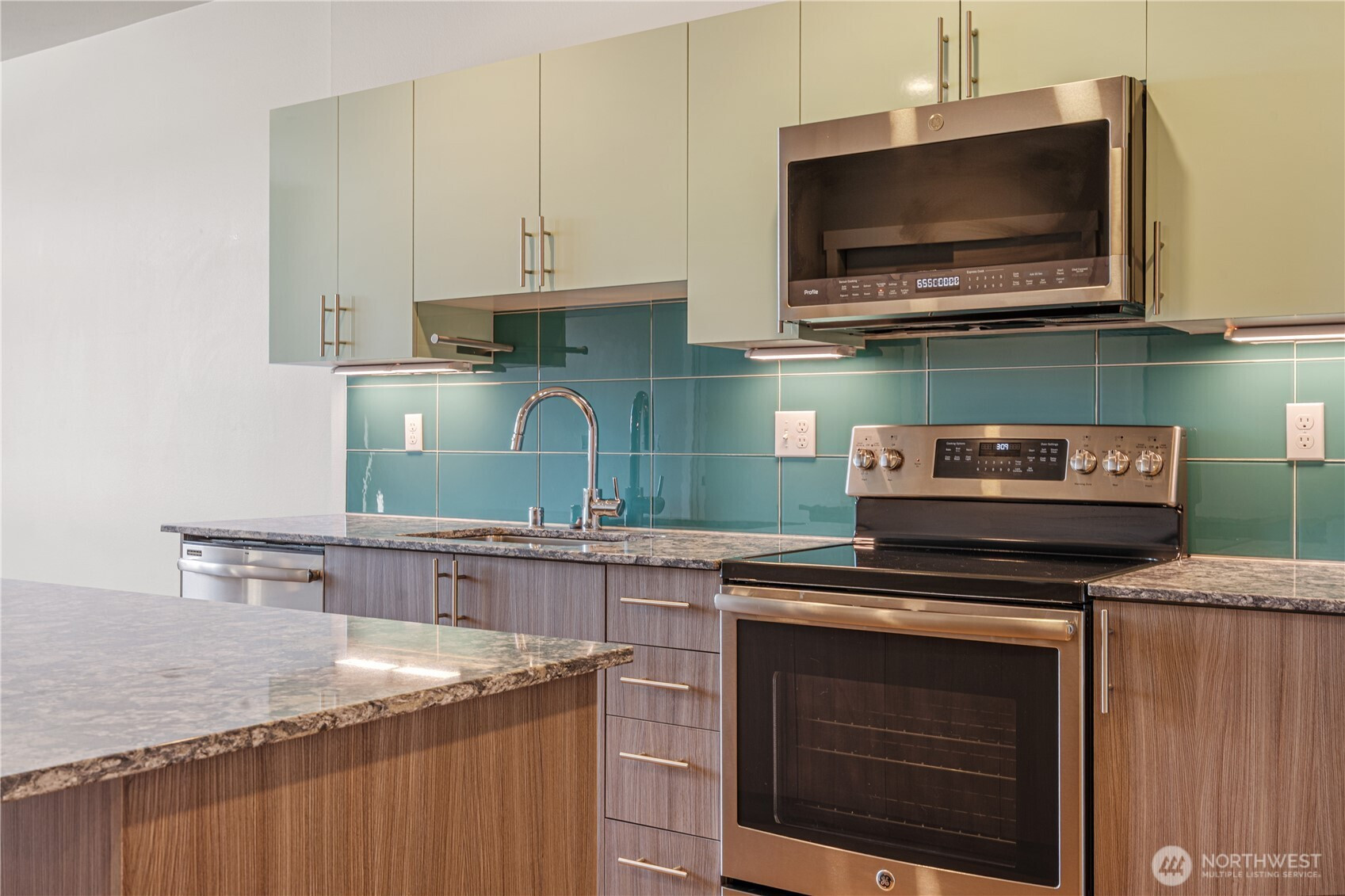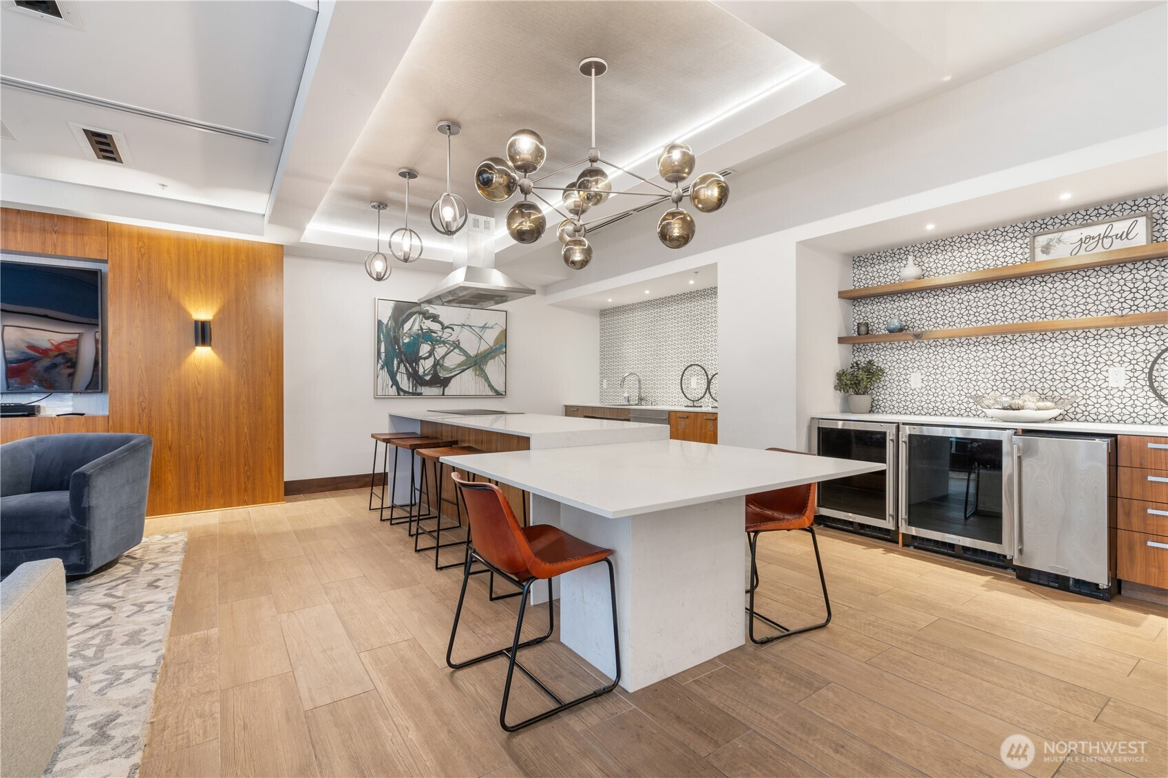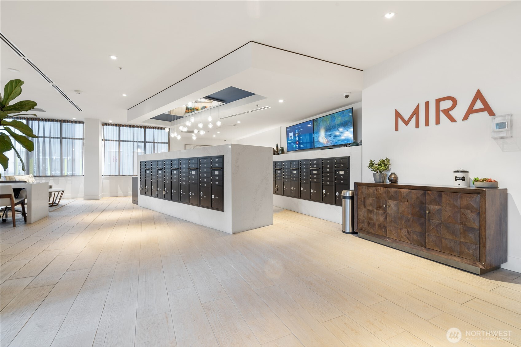 Experience DT Bellevue living at Mira Flats! Unbeatable location. Walking distance for shopping, dining and entertainments. All the best that Bellevue DT offers at your doorstep. The like-new one bedroom unit on top floor features open living space with contemporary cabinetry, quartz countertops and SS appliances, big walk in closet and convenient laundry in the unit. Secured garage parking with EV-charging station. One designated parking spot. Enjoy luxury amenities including concierge service, fully equipped club room, meeting room, free bike storage, dog wash station, courtyard, rooftop deck with fire pit, BBQ, pet relief area. No rental cap. Strong HOA.