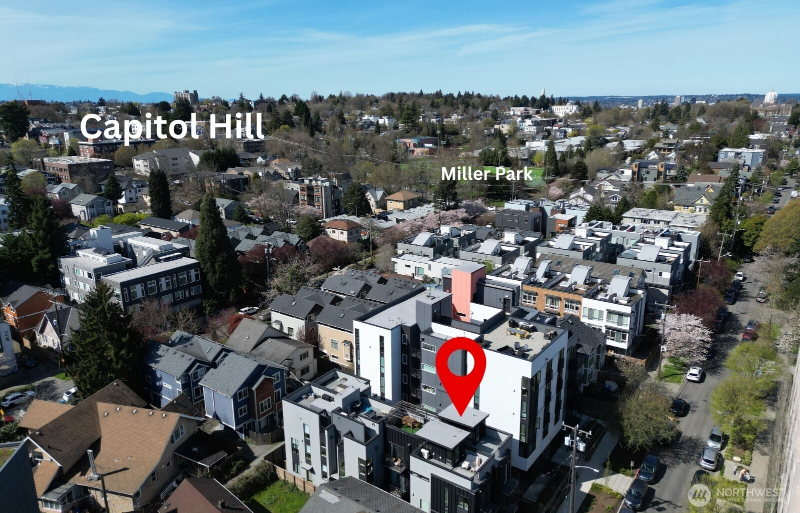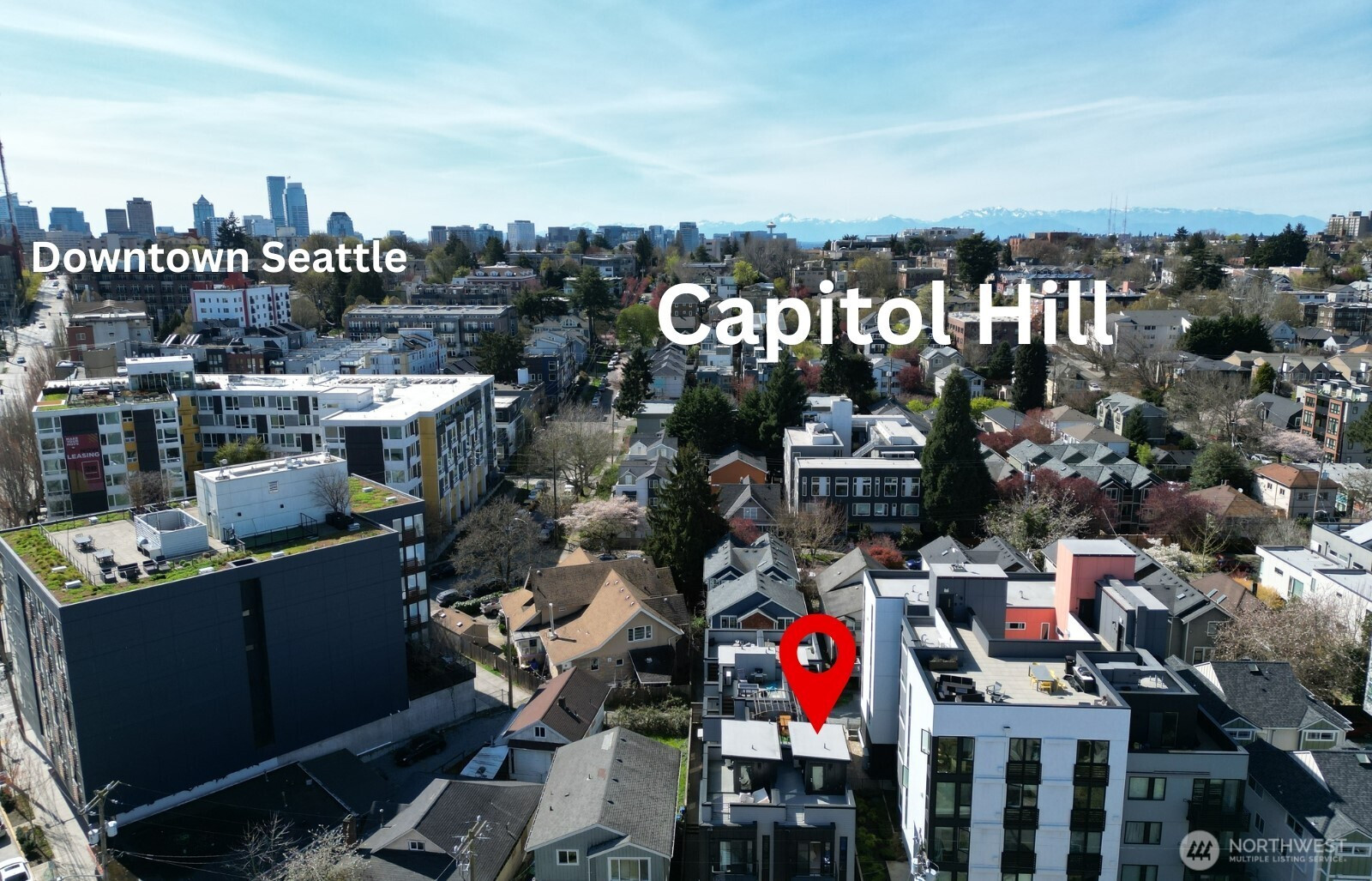 This modern 2 bed/2 bath end-unit townhome is flooded with natural light and has a very functional layout. Beyond the large primary suite and walk-in closet, this stylish townhouse is low-maintenance with flexible spaces for guests, a home office, or a roommate setup. Clean lines and modern design create a space you can enjoy. This kitchen is equipped with a gas stove, a rare find in newer construction. On the first floor, enjoy a gated space where you can have your morning coffee or head upstairs and take in the sunset from the rooftop deck, just in time for summer! Energy efficient heating and air conditioning. This is an awesome location with convenient access to Capitol Hill dining and nightlife, plus nearby Madison Valley and Madison Park amenities/beach is a short bus ride away. No HOA and no rental restrictions (Airbnb is okay!) offer exceptional flexibility and strong long-term investment potential. Move-in ready!