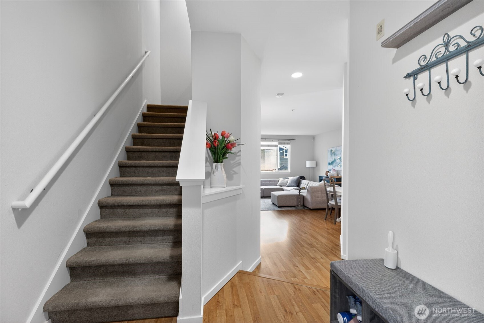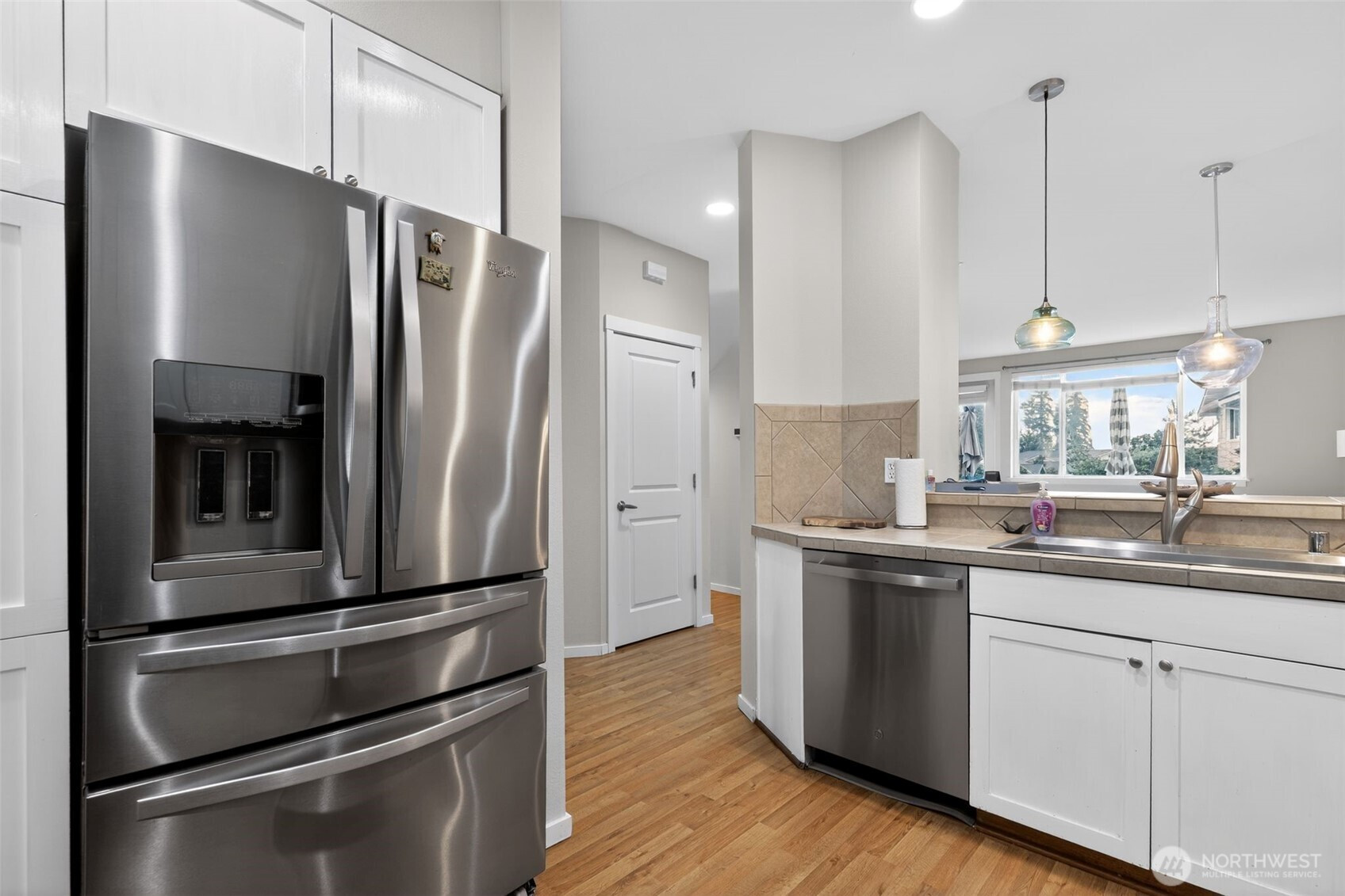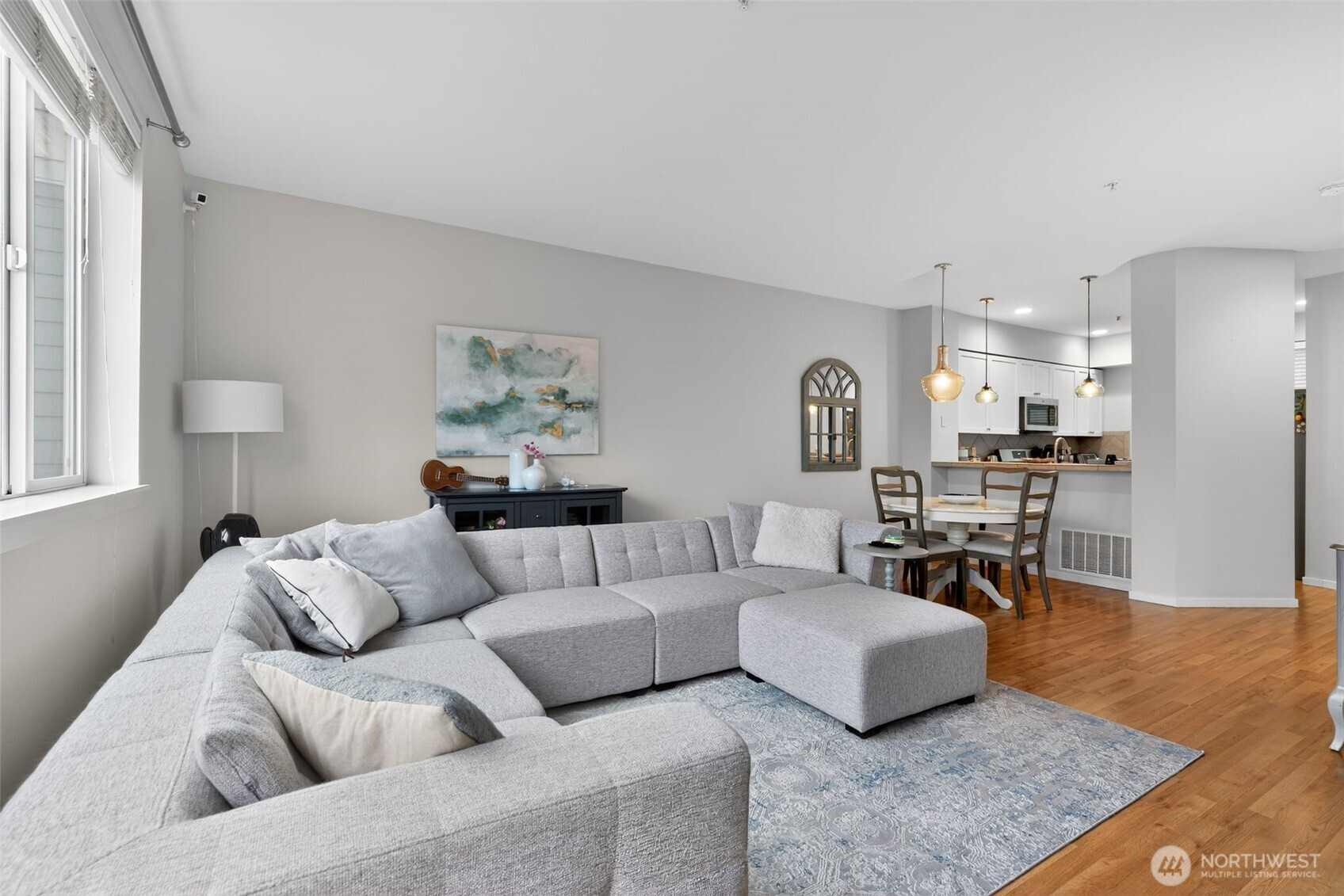 Light-filled tri-level townhome in Kirkland’s desirable Waterstone community, offering an exceptional blend of comfort, updates, and location. Just minutes to downtown Kirkland, Costco, Google, Microsoft, shopping, dining, and easy access to I-405 and SR-520. The open and versatile layout features 2 bedrooms, 2.5 bathrooms, plus a den and loft—ideal for a home office or bonus living space. The kitchen offers tile countertops, stainless steel appliances, and a breakfast bar. Vaulted primary suite with walk-in California closet and ensuite bath. Skylit loft with built-in cabinetry. Two-car garage. Located in the Lake Washington School District. No rental cap and no special assessments.
