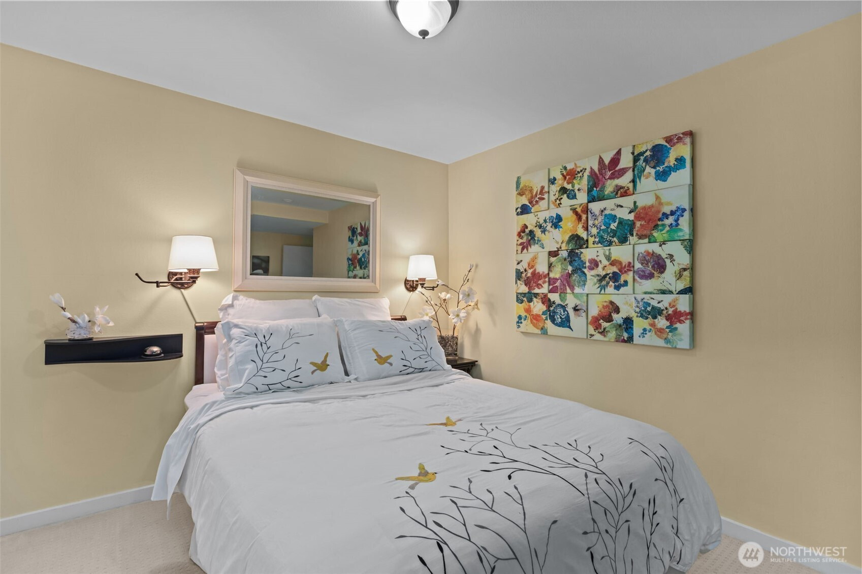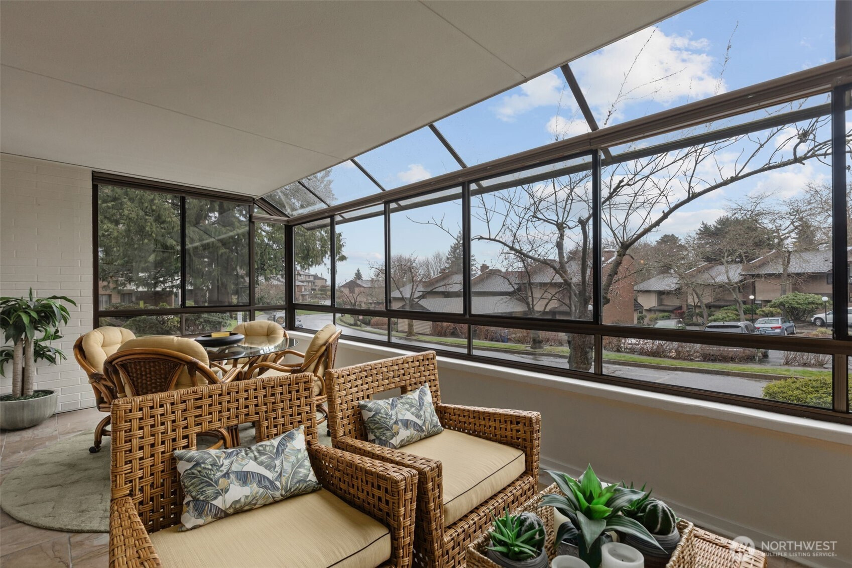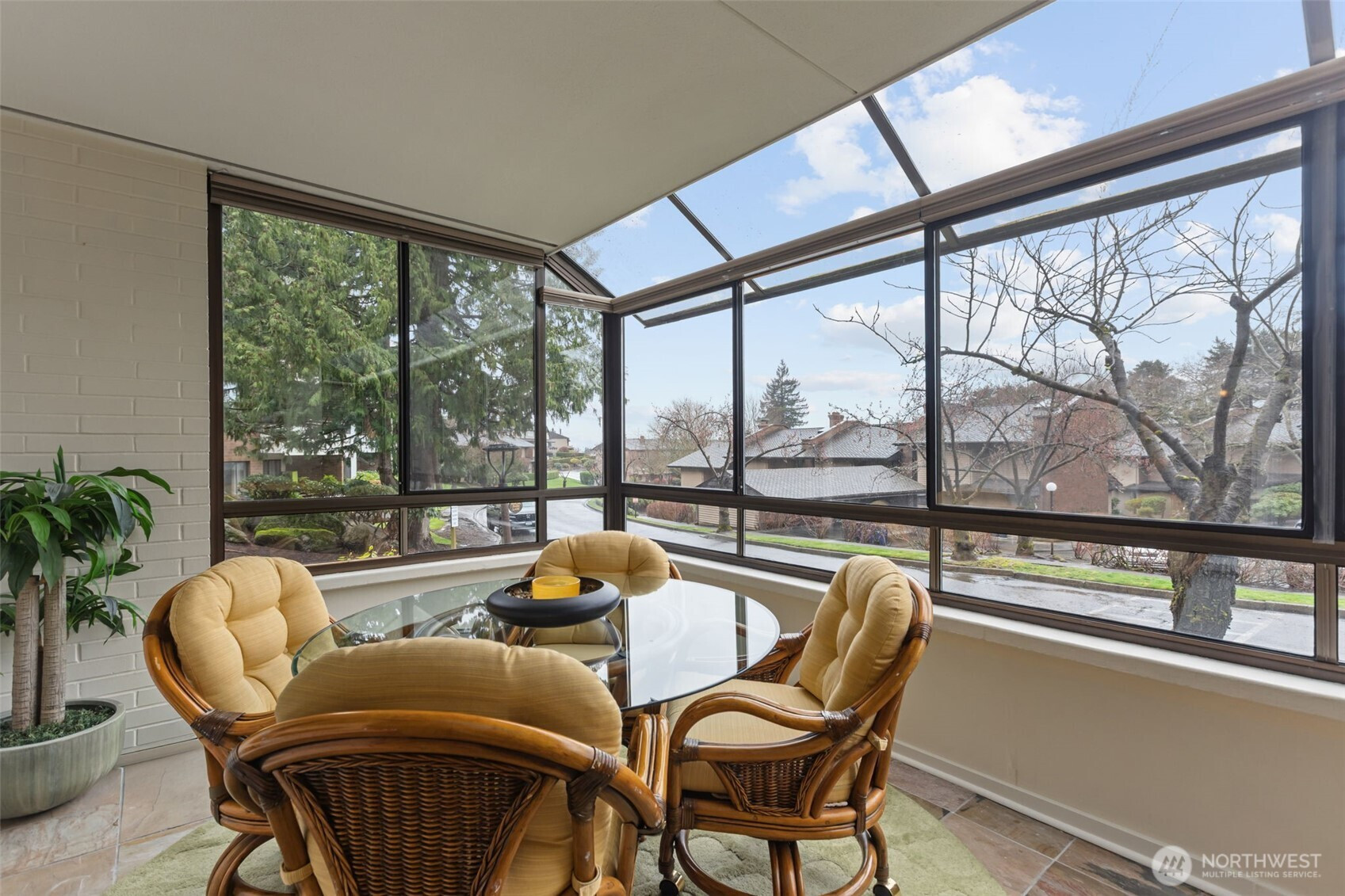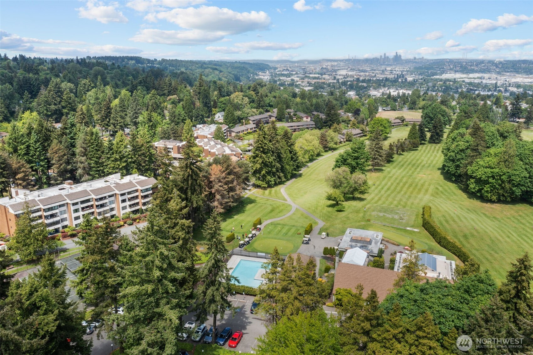 Rare lower-level corner unit with secluded entrance in a gated golf course community designed for easy, low-maintenance living, featuring resort-style amenities including a clubhouse with full-service restaurant & bar, fitness center, pool, spa, sports courts, driving range & pro shop. HOA covers full golf benefits, water, sewer, garbage, and gas—all gas appliances. Inside, an open-concept layout with tasteful updates flows seamlessly to a private sunroom with a partial view of downtown Seattle on clear days. Residents also enjoy access to a shared workshop space and a vibrant calendar of organized social activities, clubs, and events, making it easy to stay connected and engaged. A perfect downsizing opportunity with lifestyle built in—55+ community (waiver possible).