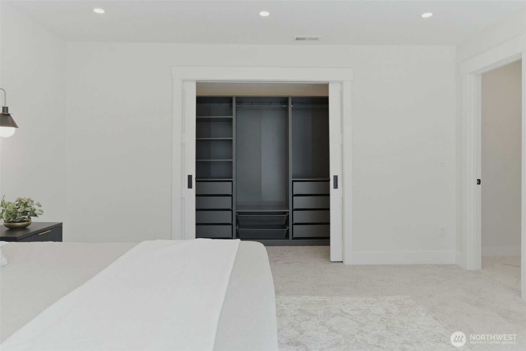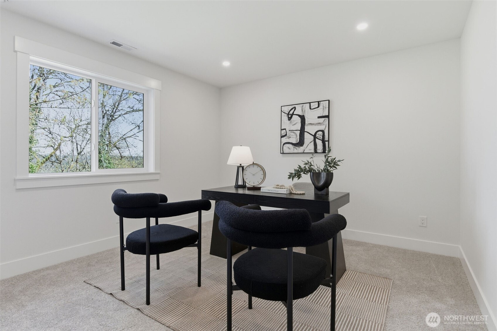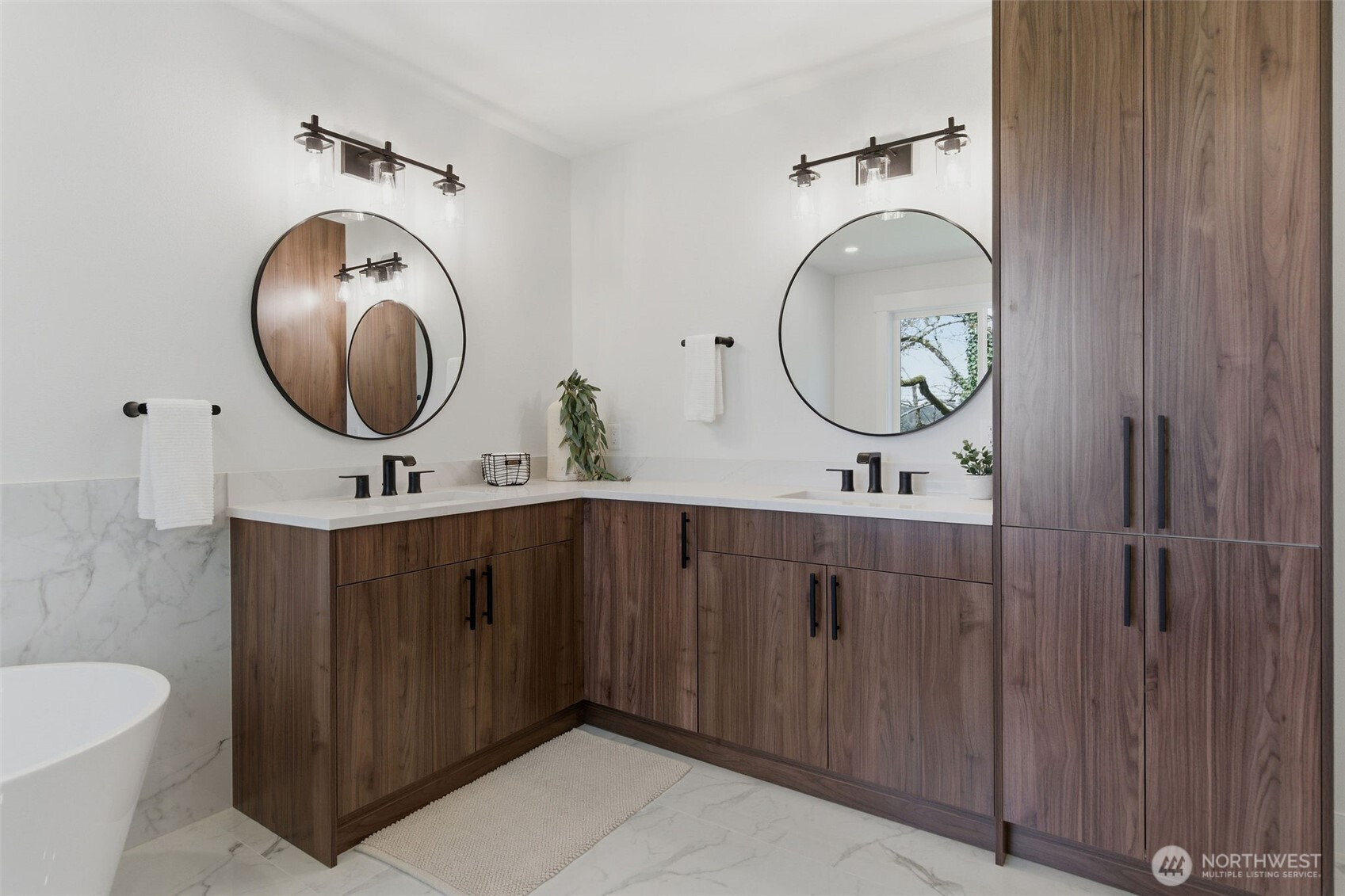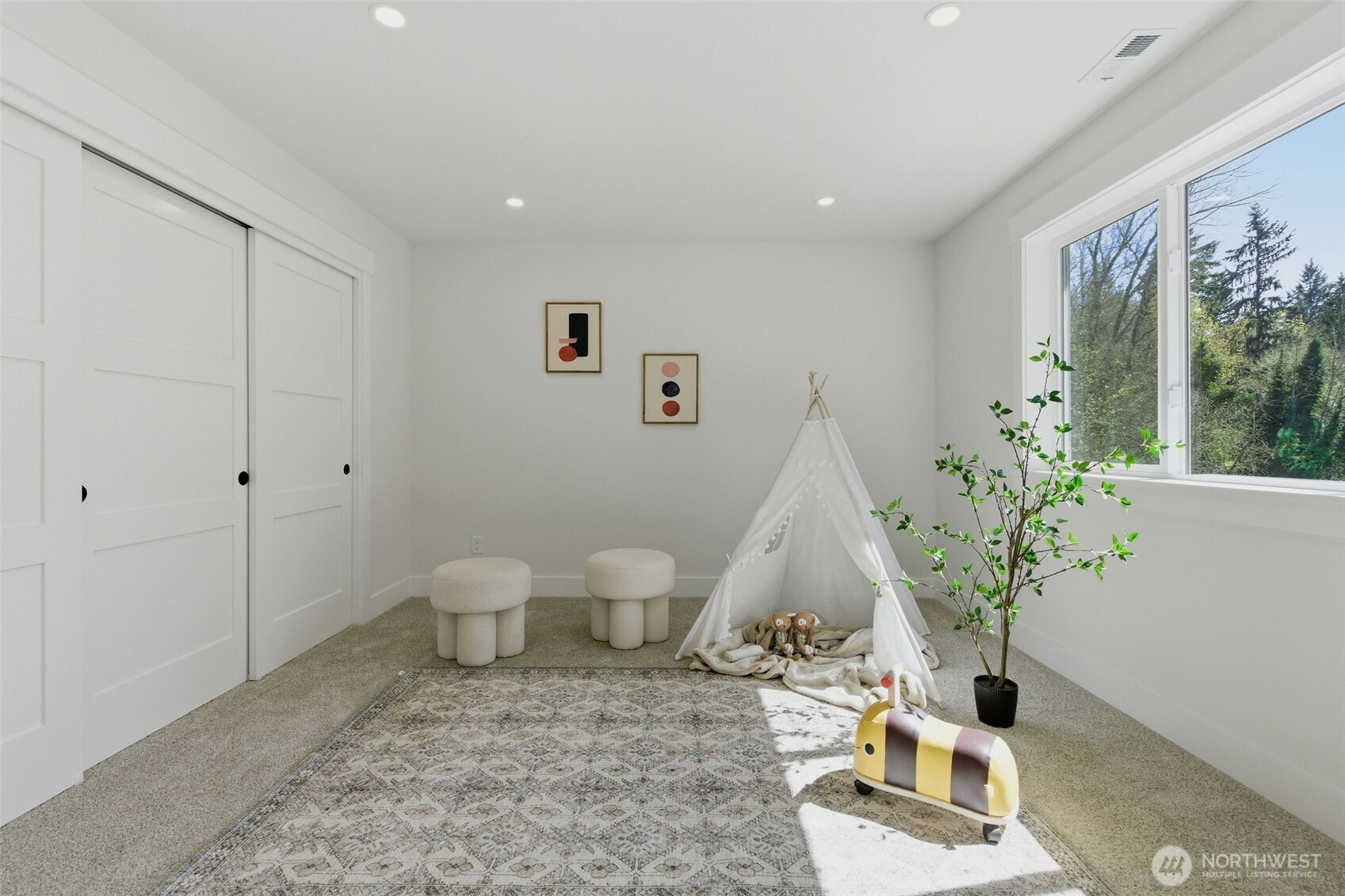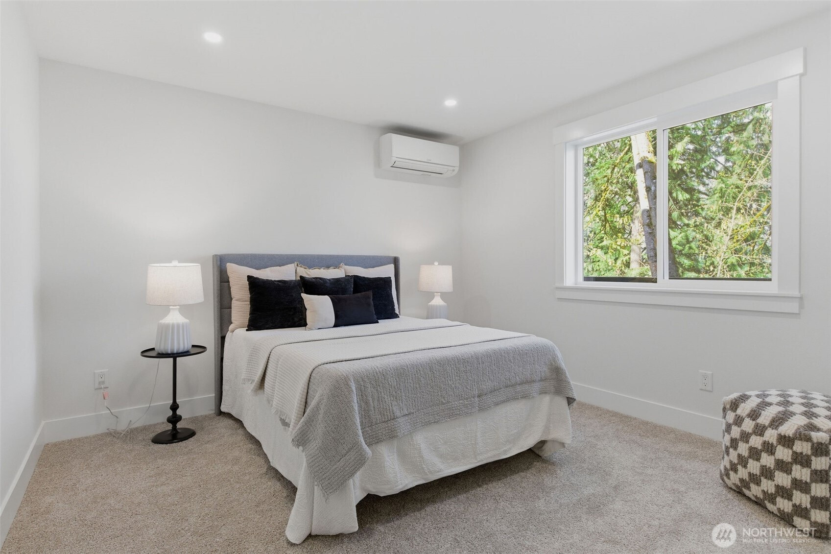 New construction, completed 2026. 3,132 square feet backing directly to greenbelt — no rear neighbors, full tree canopy, and consistent quiet due to the natural buffer behind the home. Four bedrooms across two levels. The kitchen features custom finishes and premium materials throughout — it's the centerpiece of the home for a reason. Bathrooms are finished well above typical new construction with high-end tile work, fixtures, and detailing that are worth seeing in person. Upper level includes three bedrooms and a primary suite with real separation from the rest of the house. Lower level offers a fourth bedroom with separate access and rough-in potential for a kitchenette — a natural fit for multigenerational living, long-term guests, or rental income. The greenbelt is what sets this one apart. The lot backs into mature tree cover with no development behind it. No sight lines from neighboring properties to the rear. Large decks extend directly out toward the greenbelt, putting you right at the edge of the tree line — usable outdoor space that feels connected to the natural surroundings rather than separated from them. Mornings are quiet, birds are a constant presence, and the deck-to-greenbelt connection makes the outdoor living space feel significantly larger than the lot itself. Totem Lake, Juanita, and top-rated Kirkland schools are all a few minutes away.