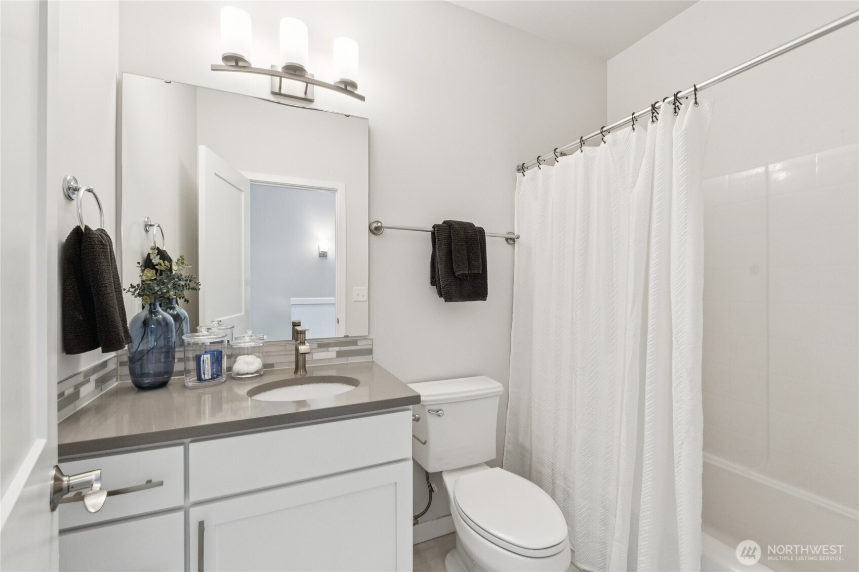 This wonderful light-filled luxury townhome is the first ever resale home in Northmark at Beardslee and has been so well cared for it feels brand new, without the new construction price. Perfectly situated near the UW Bothell campus with seamless access to I-405. The main level welcomes you with an expansive, sun-drenched floor plan featuring a large living room and a dining area designed for effortless entertaining. The expansive kitchen is a gourmet's delight, boasting sleek granite countertops, gorgeous stainless appliances, chef’s gas stove and a spacious "Costco-sized" pantry. Outdoor entertaining is easy with your fully-fenced patio. A thoughtfully placed powder room is tucked away in its own wing for maximum privacy, ensuring it stays well-separated from the kitchen area. Upstairs, you will find three bedrooms conveniently located on the same level, including a primary suite with an en-suite bathroom, 2 more bedrooms and an additional full guest bath. The lower level provides a two-car tandem garage with a massive unfinished flex space at the rear—an ideal canvas for a home office, personal gym, or creative studio. With A/C and ample on-site guest parking, this home offers the perfect blend of modern luxury and functional convenience.