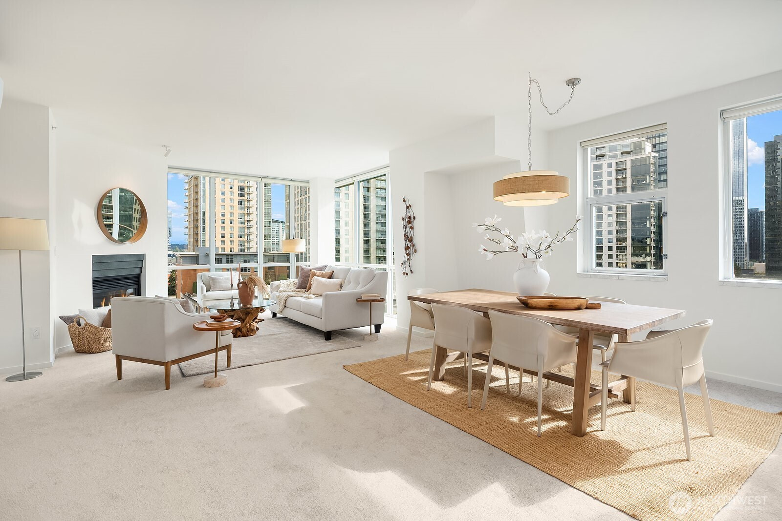 Sweeping views and luxurious living spaces await you in this Palazzo penthouse! Its prime top-floor location features lofty 9-foot ceilings and sunny southern exposure for maximum light. Entertain or relax in open living and dining areas that flow to the well-appointed kitchen with built-in stainless appliances and natural stone finishes. Step out for Downtown views on the balcony, or retreat to your owner’s suite with dreamy walk-in closet and en-suite bath. A second bedroom plus a bonus room provide flex space for a lounge or office. Move right in with fresh carpeting and paint, along with new heating, air-conditioning, and water heater. Convenient amenities are just an elevator ride away in this well-maintained steel and concrete building, including your 3 reserved garage parking spaces, 2 personal storage units, a concierge, fitness room, conference room, party room, and guest suite for your out-of-town guests. Stroll to the library, Ashwood Park, and the best of Bellevue’s renowned shops and dining. Your carefree, lock-and-go lifestyle starts here!
