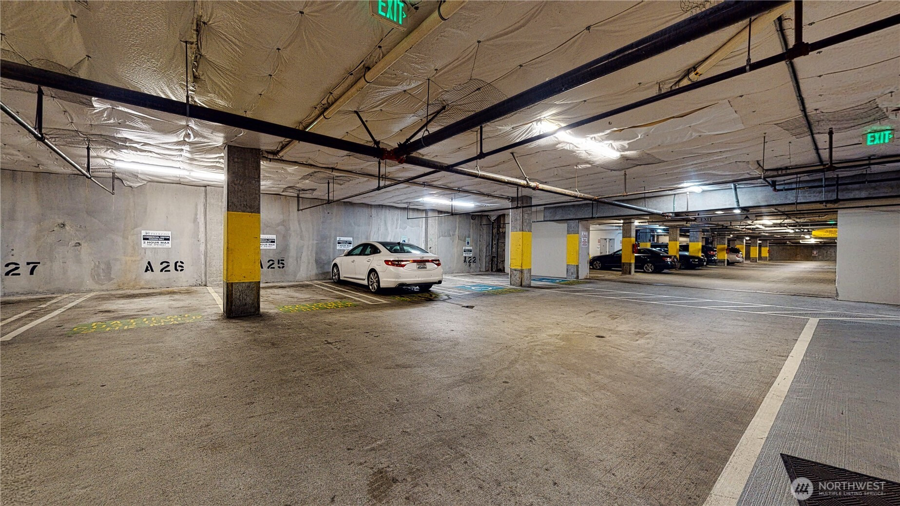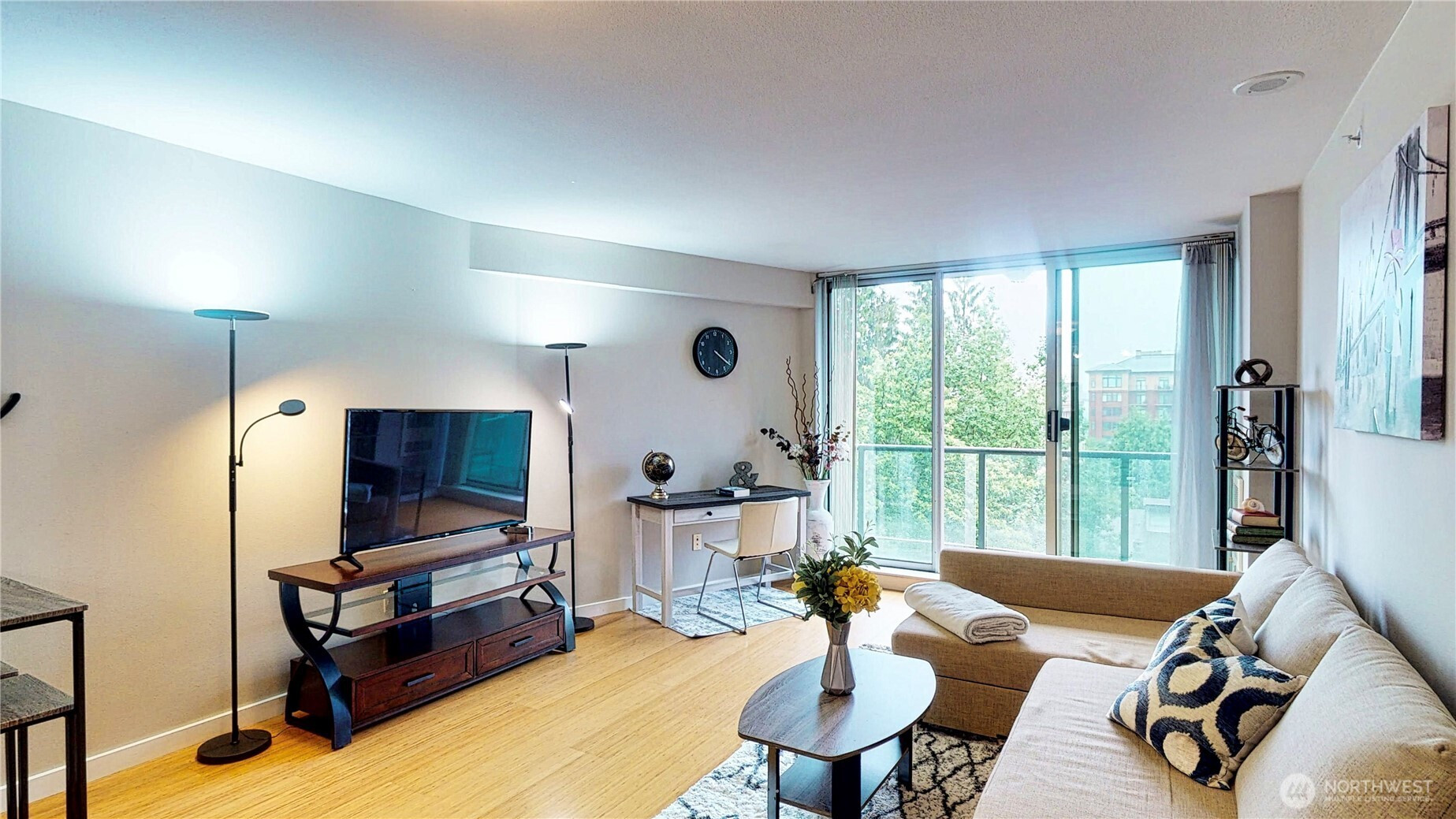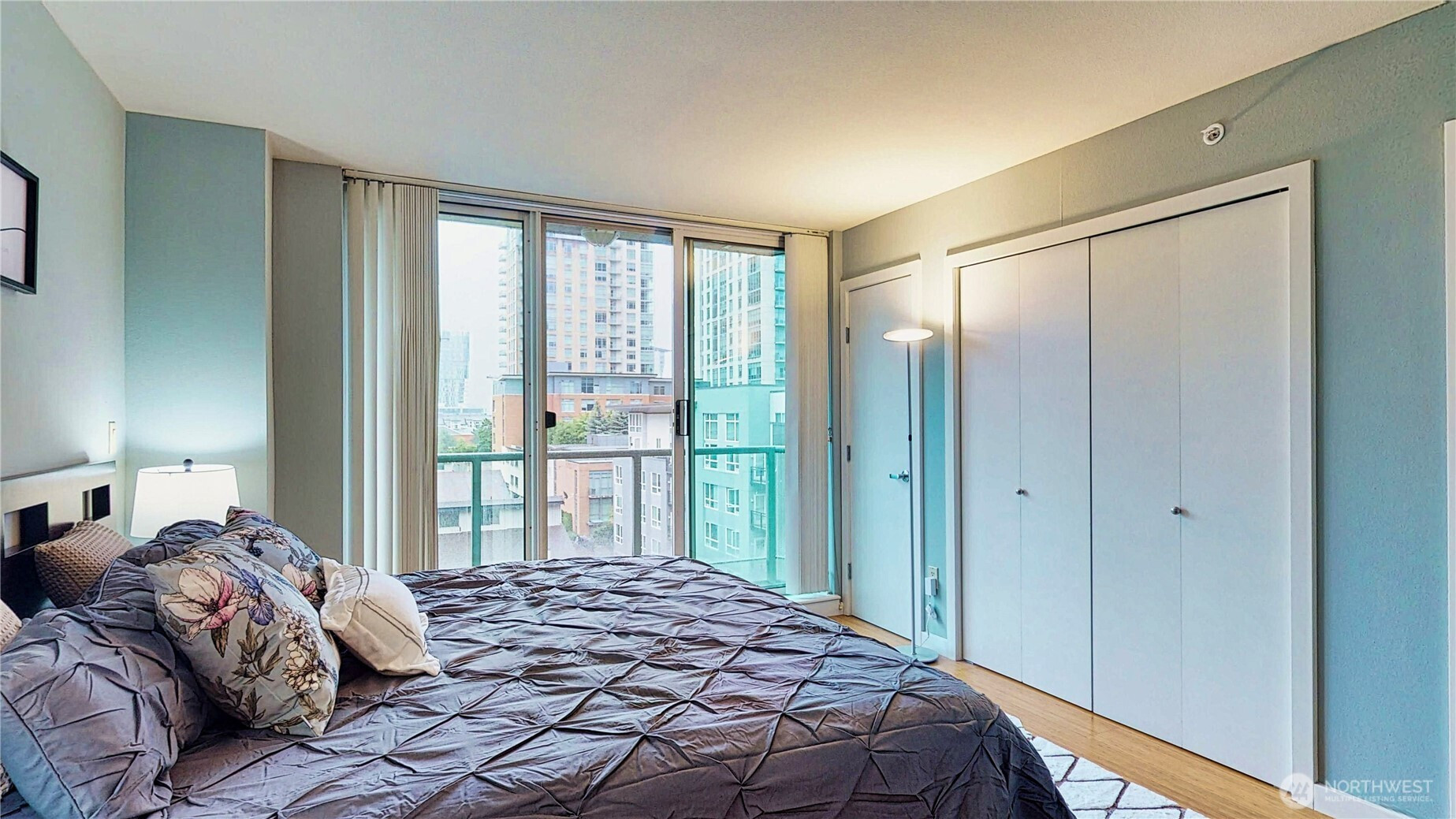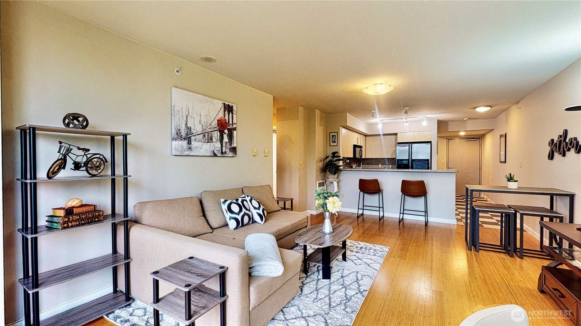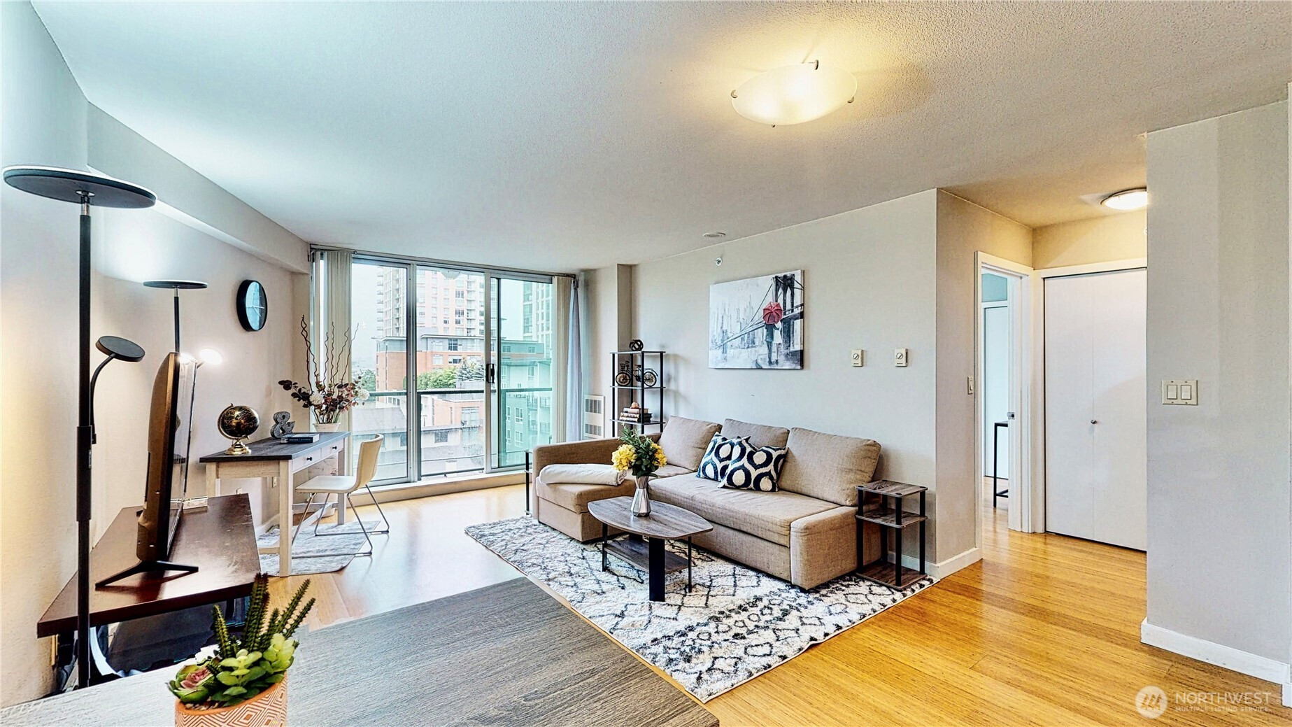 Enjoy sunrise Views+City Energy in this Central Bellevue Highrise condo. This 1 bed / 1 bath unit is ideally located in the heart of Central Bellevue and offers NO rental cap, making it perfect for both homeowners and investors. Enjoy the views of the Cascade Mountain & Downtown Bellevue from this 7th floor unit with 2-private balconies to welcome the morning’s beautiful east-facing sunrises. A wall of windows with a sliding glass door fills the home with natural light, The modern kitchen features sleek flat panel cabinetry, granite countertops, stainless steel appliances, a NEWer stove and a breakfast bar. The Bamboo floors offer a contemporary style while adding warmth to the space. The spacious bedroom has two closets and its own east facing balcony. The bathroom includes a tub/shower combination with a glass door. Portable AC easily cools the unit, in unit washer & dryer, new water heater & ample storage. Assigned secure garage parking included. Unbeatable location for an easy commute—less than a quarter mile to parks, the library, and the Bellevue Collection, the Northwest’s premier shopping and dining destination with over 200 shops, restaurants, and entertainment options. Building amenities include CONCIERGE service, guest suite, owners’ lounge, fitness center, and more.