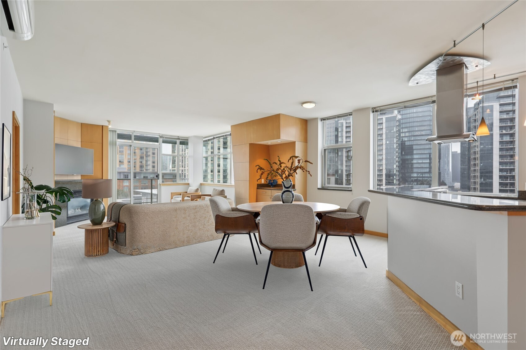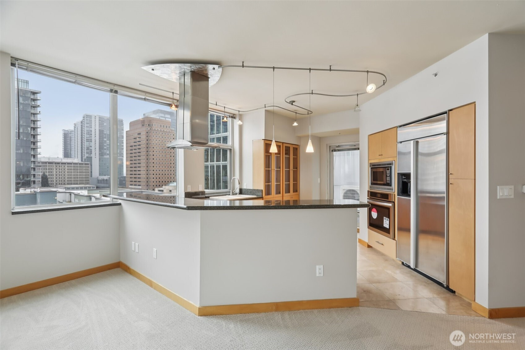 Experience Downtown Bellevue living at Palazzo! This 2-bedroom plus office/den residence is located on the 9th-floor sub-penthouse and features 9-foot ceilings and an unbeatable southwest corner location with breathtaking city and mountain views. The open floor plan is perfect for entertaining, featuring granite countertops, stainless steel appliances, a newer dishwasher, beautiful tile flooring, and a newer mini-split A/C system. Additional highlights include a newer water heater, maple trim, brand-new interior paint, brand-new carpet, two private decks, two designated parking spaces, and a storage unit on Garage Level B for convenient organization. Residents enjoy outstanding amenities in this well-managed steel and concrete building, including concierge service, a fitness center, conference room, party room, guest suite for visitors, and elevator access. With easy access to major tech companies and all the shopping, dining, and entertainment that Downtown Bellevue has to offer, you’ll always be close to everything. No rental cap. Move in comfortably as-is, rent it out for additional income, or customize it to your personal taste—the possibilities are endless.