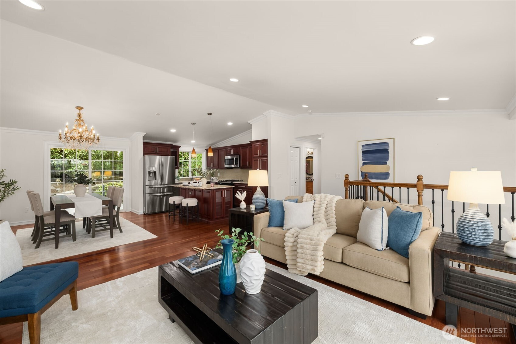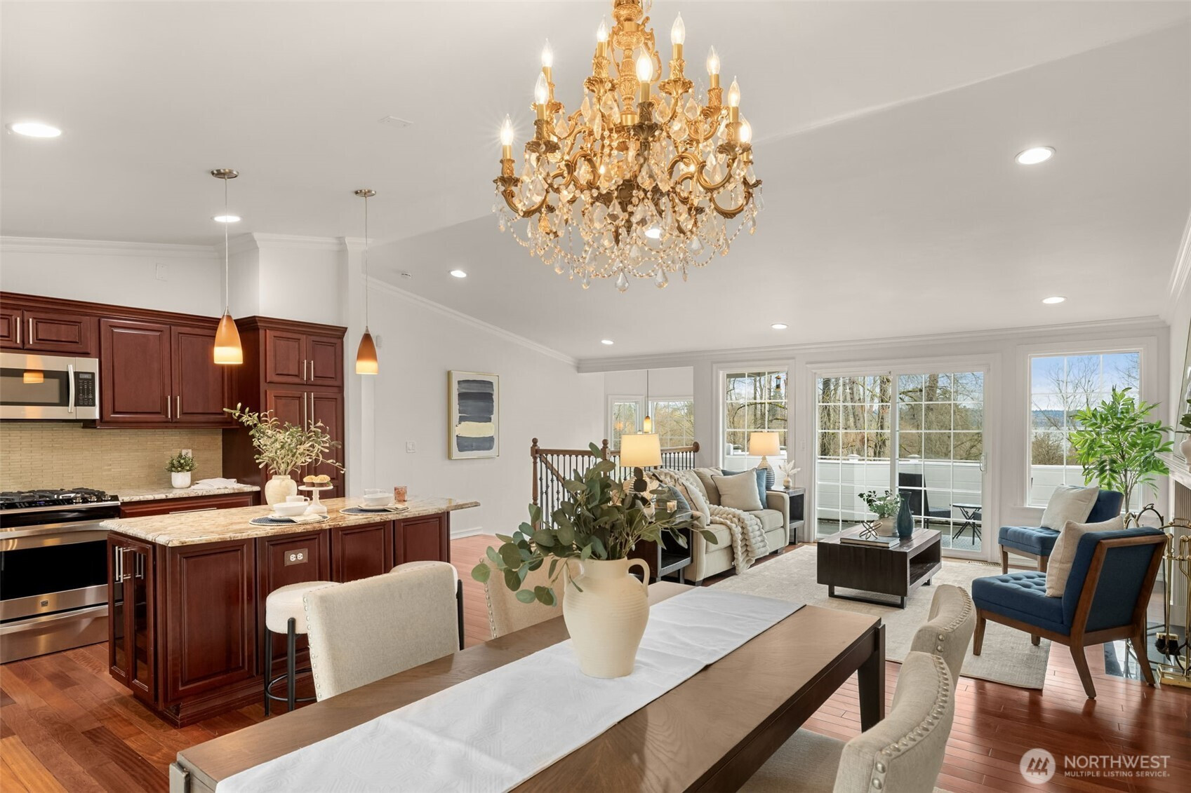 Live the Pacific Northwest lifestyle in this beautifully updated 4-bed, 2.75-bath home just steps from Lake Washington and Juanita Beach. Enjoy stunning winter water views and year-round territorial scenery from expansive decks perfect for relaxing or entertaining. This move-in-ready residence features fresh interior and exterior paint, brand-new carpet throughout all bedrooms, hardwood floors, a new A/C system, and a lush, landscaped yard that creates a serene, forest-like setting. Situated on a generous lot with RV parking, the home offers exceptional privacy while remaining minutes from downtown Kirkland, waterfront shops, and acclaimed restaurants. Located within the top-rated Lake Washington School District, it blends tranquility with unmatched convenience. Inside, cathedral ceilings and an open layout fill the home with natural light. The updated kitchen inspires the inner chef, while retreat-style bedrooms and baths provide comfort and flexibility. Additional highlights include a 2023 water heater, an oasis-like backyard. A rare opportunity to own one of Kirkland’s finest homes —a must-see in person.