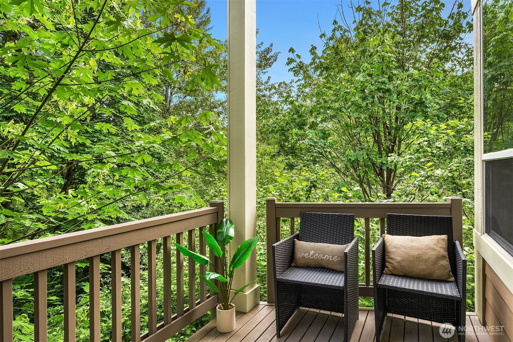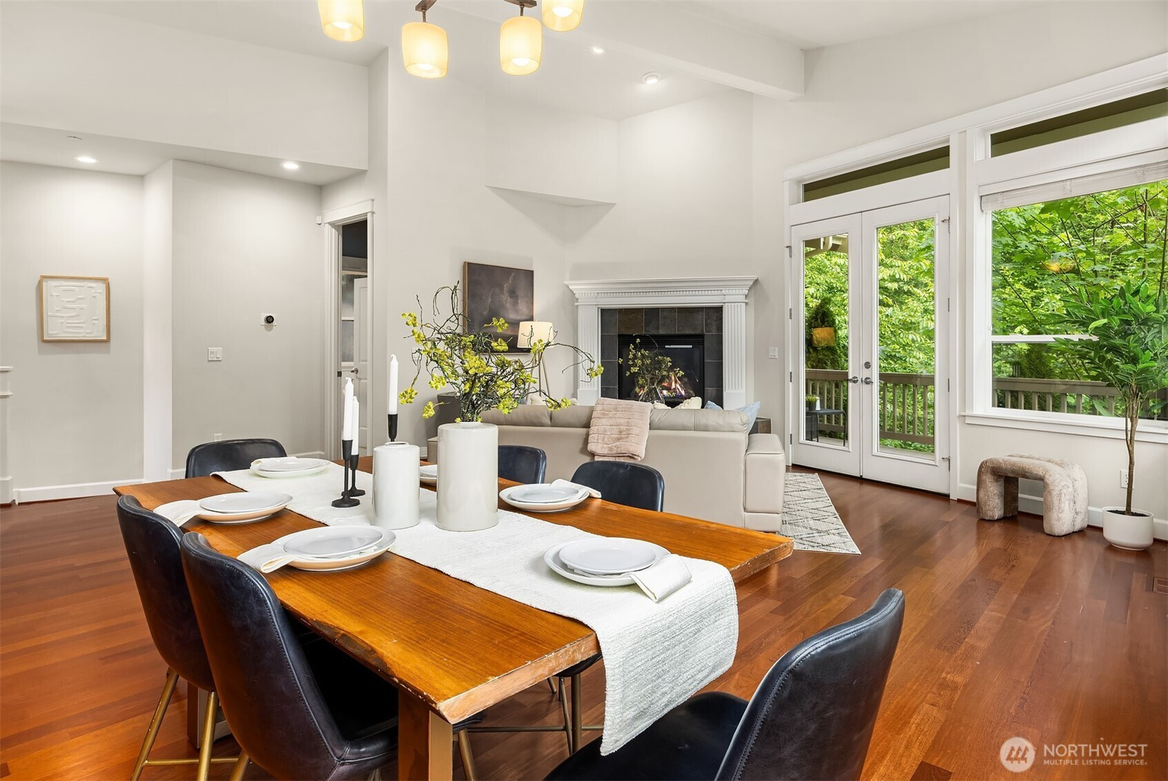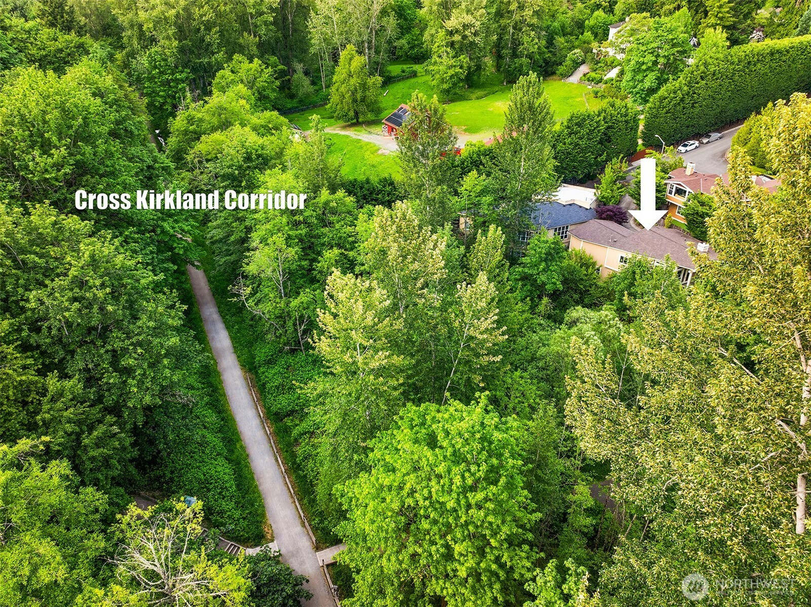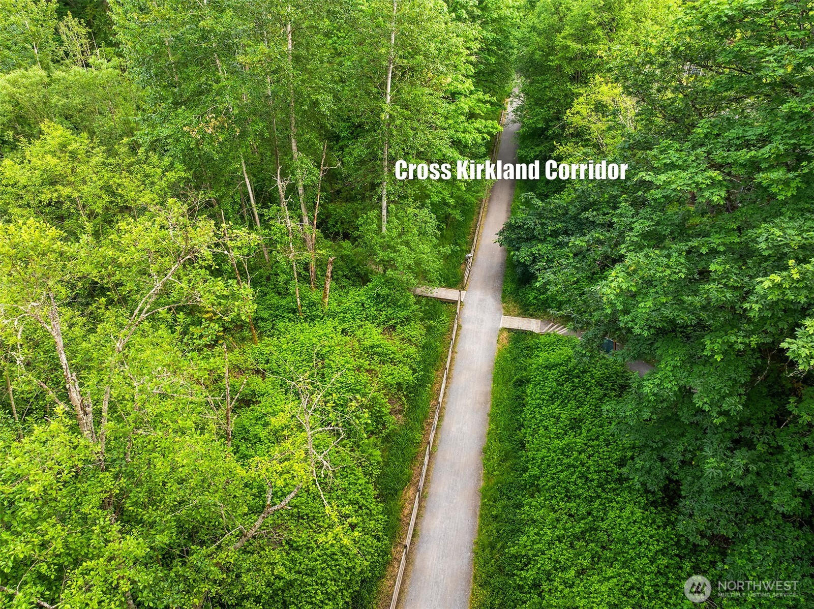 Private access to the Cross Kirkland Corridor Trail and a peaceful, treehouse-like setting make this home a rare find in the highly sought-after Kirkland Highlands. No HOA and central A/C for comfort and convenience. Vaulted ceilings, Brazilian cherry floors, gas fireplace, and wall of windows create an open, airy feel. French doors lead to a spacious deck, perfect for unwinding in nature. The kitchen features granite counters, cherry cabinets, and a gas cooktop. Main-level bedroom with vaulted ceiling, walk-in closet, and 5-piece bath. Downstairs includes a large family room, gas fireplace, patio access with a hot tub, and flexible work-from-home space. Conveniently located near local restaurants, shops, and everyday amenities.