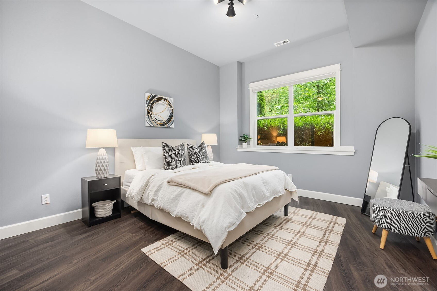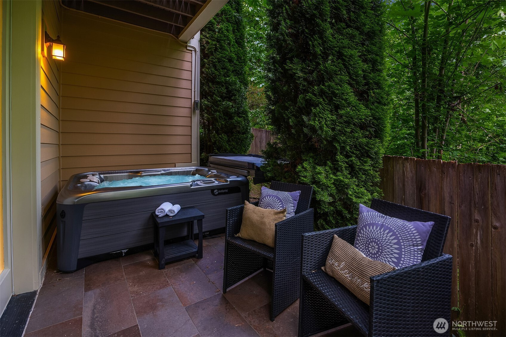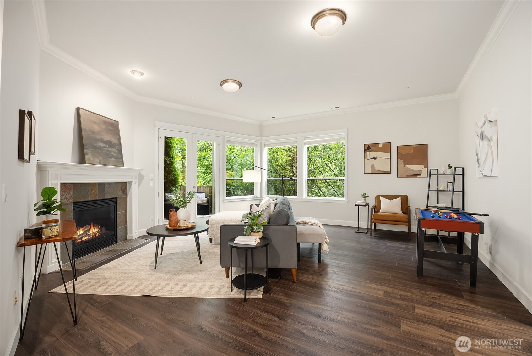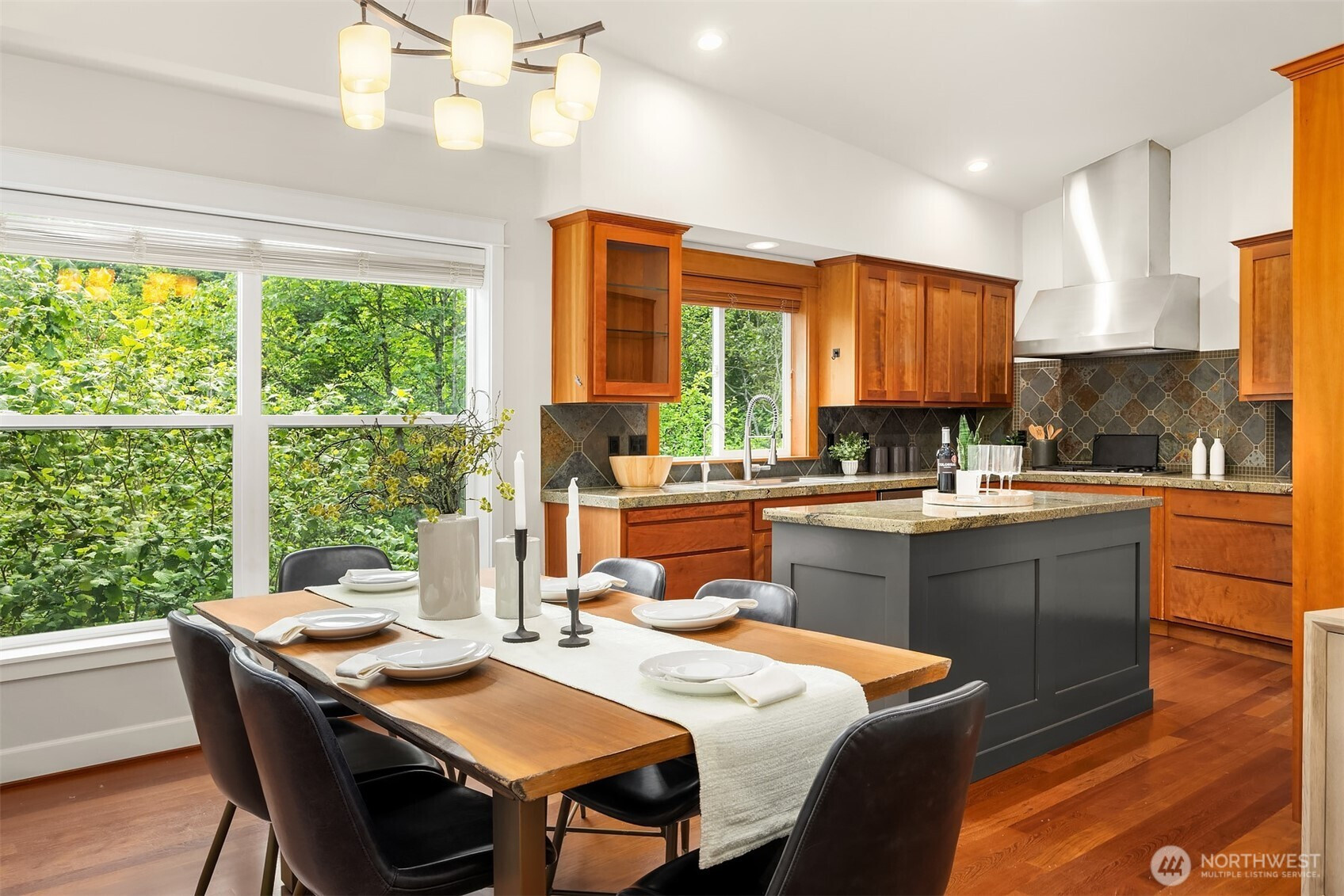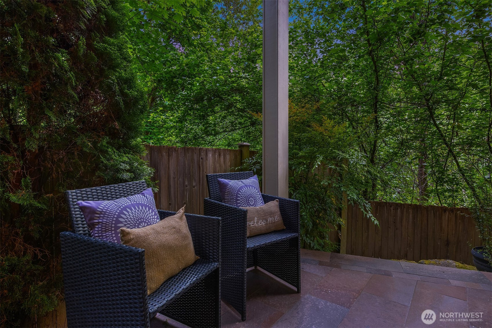 Private access to the Cross Kirkland Corridor Trail and a peaceful, treehouse-like setting make this home a rare find in the highly sought-after Kirkland Highlands. No HOA and central A/C for comfort and convenience. Vaulted ceilings, Brazilian cherry floors, gas fireplace, and wall of windows create an open, airy feel. French doors lead to a spacious deck, perfect for unwinding in nature. The kitchen features granite counters, cherry cabinets, and a gas cooktop. Main-level bedroom with vaulted ceiling, walk-in closet, and 5-piece bath. Downstairs includes a large family room, gas fireplace, patio access with a hot tub, and flexible work-from-home space. Conveniently located near local restaurants, shops, and everyday amenities.