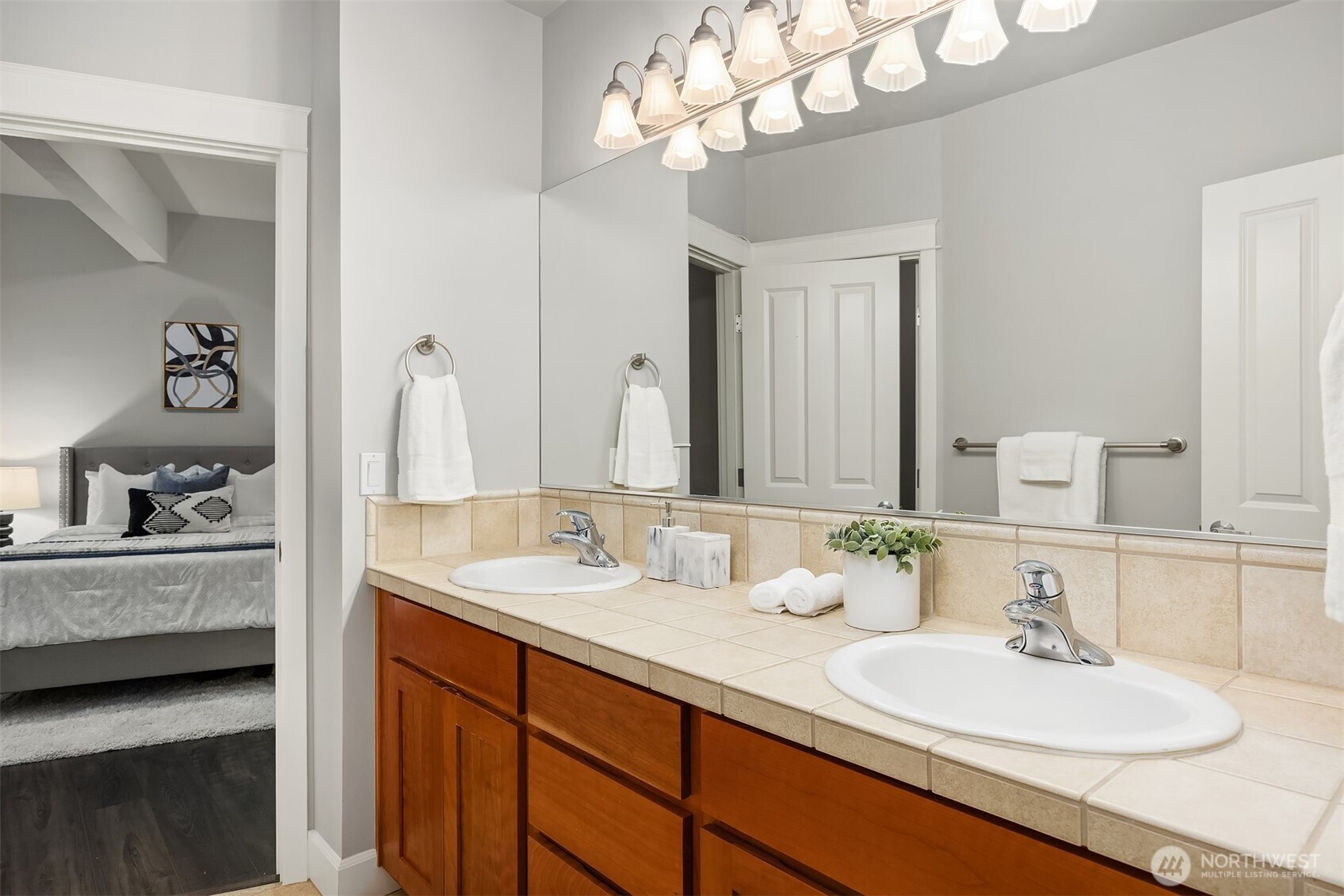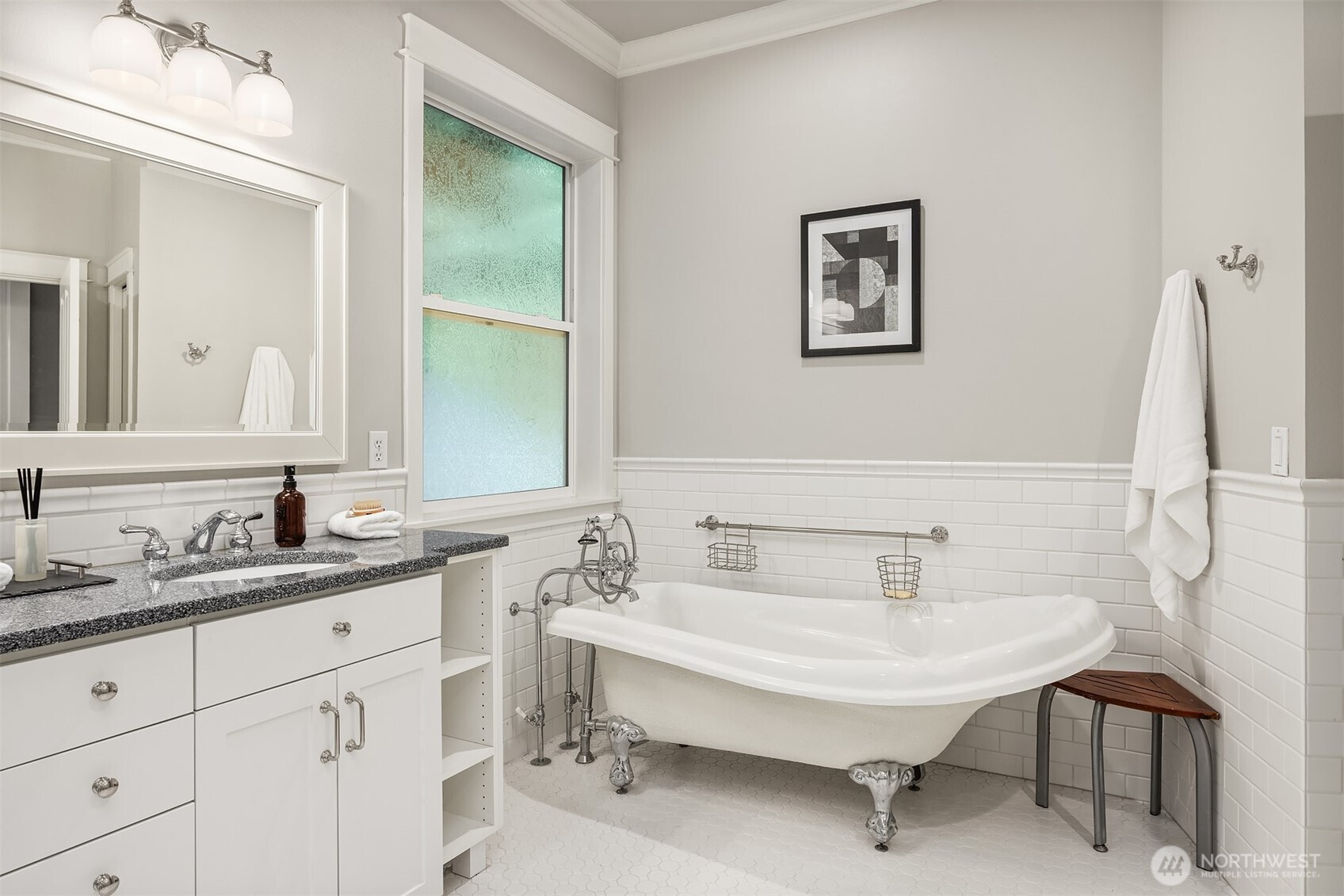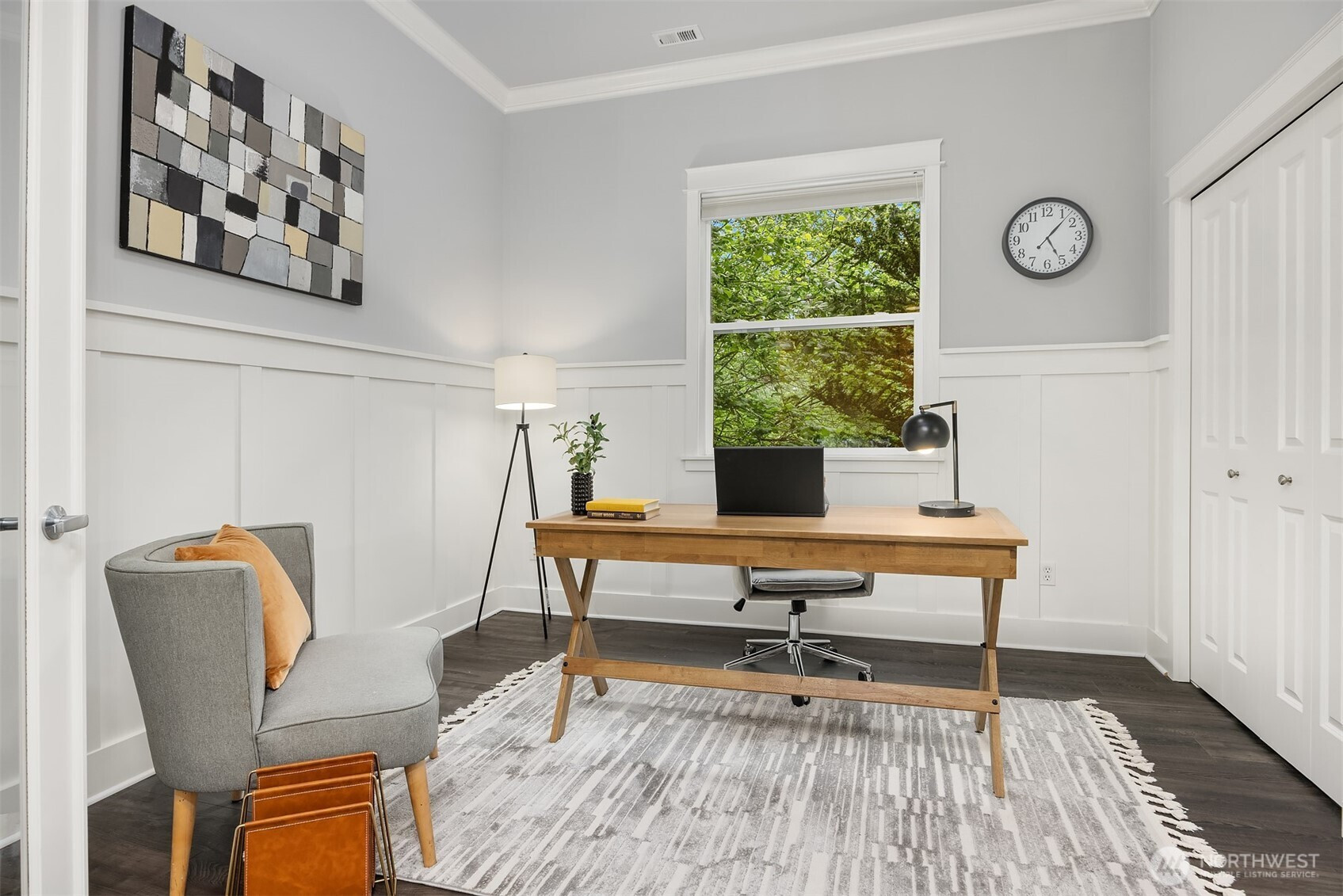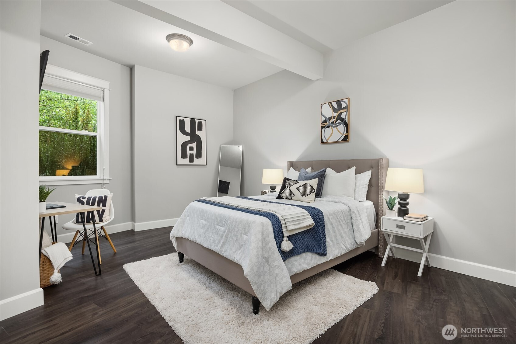 Private access to the Cross Kirkland Corridor Trail and a peaceful, treehouse-like setting make this home a rare find in the highly sought-after Kirkland Highlands. No HOA and central A/C for comfort and convenience. Vaulted ceilings, Brazilian cherry floors, gas fireplace, and wall of windows create an open, airy feel. French doors lead to a spacious deck, perfect for unwinding in nature. The kitchen features granite counters, cherry cabinets, and a gas cooktop. Main-level bedroom with vaulted ceiling, walk-in closet, and 5-piece bath. Downstairs includes a large family room, gas fireplace, patio access with a hot tub, and flexible work-from-home space. Conveniently located near local restaurants, shops, and everyday amenities.