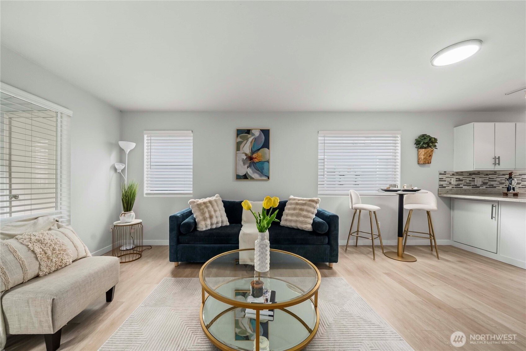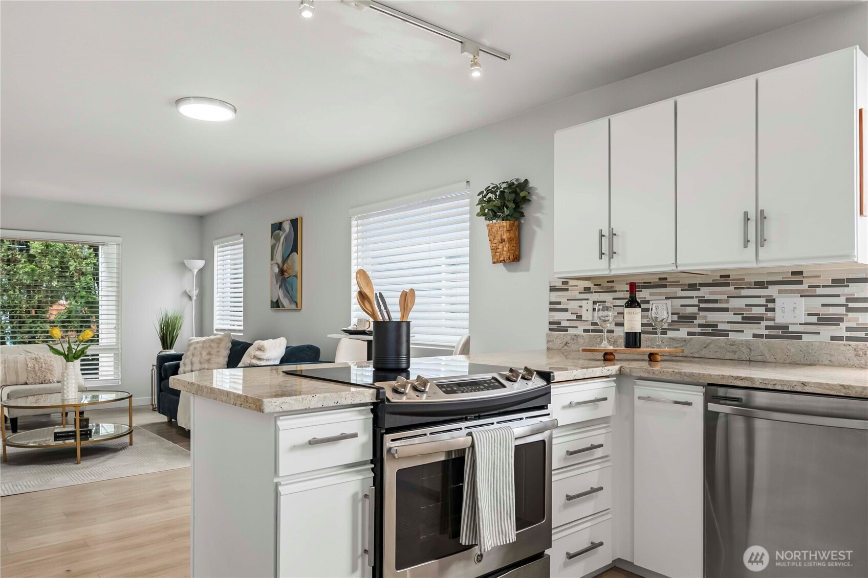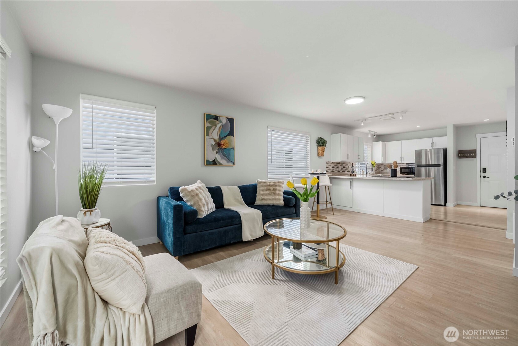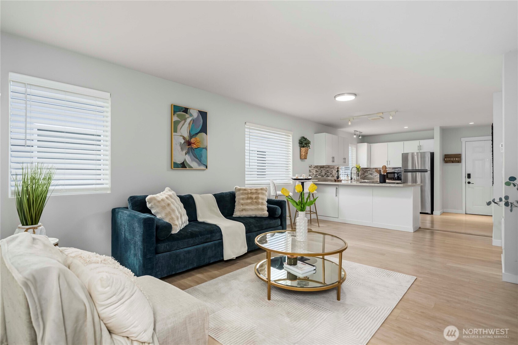 Welcome to Auburn Place - where comfort, convenience, and low-maintenance living come together beautifully. This updated 2-bedroom, 2-bath ground-floor end unit offers just under 900 square feet of thoughtfully designed space, perfect for easy everyday living. Enjoy the added privacy of an end unit, the convenience of no stairs, and a covered parking space just steps away. Inside, you’ll find modern upgrades throughout, including sleek quartz countertops, stainless steel appliances, durable vinyl plank flooring, and fresh paint that creates a clean, move-in-ready feel. The location is hard to beat-just minutes from shopping, dining, and major freeway access, making commuting and daily errands simple. Outdoor lovers will appreciate being close to the White River and nearby walking trails, while Gildo Rey Elementary is within walking distance and Mt. Baker Middle School is just a quick 3-minute drive away. Whether you’re stepping into homeownership for the first time or looking to downsize into something more manageable, this condo offers the perfect balance of comfort and ease. With less maintenance and more time to enjoy life, this is a smart move for today-and the future. If you need closing cost help - our preferred lender is offering up to a 1% buyer credit, don't forget to ask your agent or me about this!