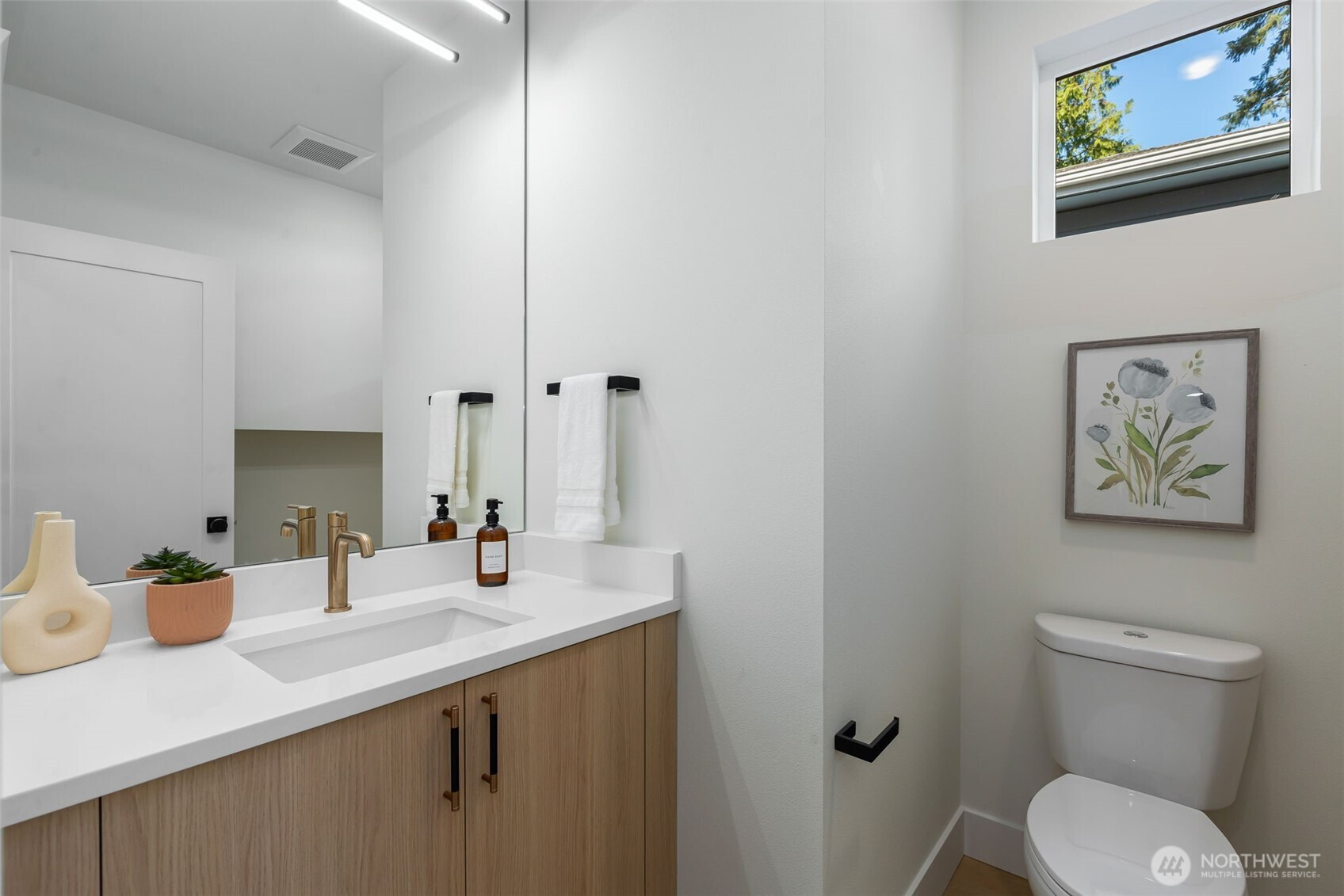 Welcome to this luxury modern 4 star built green 2B2.5B home built by premier builder Seattle Modern Construction. High end design and finishes define this home throughout: Custom kitchen cabinetry w/ soft close cabinets, black SS appliances, luxury vinyl with no carpet, cassette style minisplit, for heating/cooling. Light, bright open floor plan with vaulted ceilings and primary suite featuring heated floors, and built-in closets. Lower level features a media/flex room and another bedroom. One car carport and additional driveway space. Located in the heart of Victory Heights, easy commute to SLU/Bellevue, Greenlake, Ravenna and all that Seattle has to offer. Welcome Home!