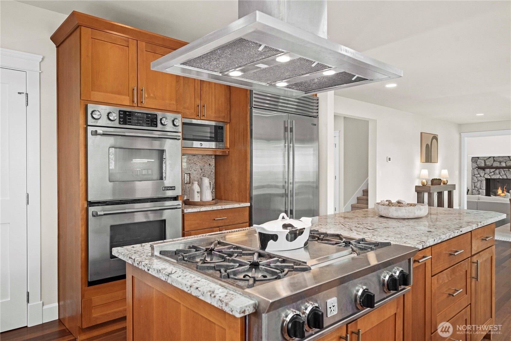 Tucked away on a private 12,782 sq ft lot, this impeccably designed NW Craftsman offers 96 feet of frontage on the Sammamish River. Enjoy tranquil water views and your own private dock—navigable all the way to Lake Washington. Excellent curb appeal sets the tone, while inside you’ll find gorgeous hardwood floors, a gourmet kitchen with commercial-grade appliances, and a striking great room anchored by a stone fireplace with soaring vaulted ceilings and river views. The main level also features a sunny office and a bedroom with a ¾ bath. Custom open layout offers dual 2nd floor spaces. One features the gracious primary suite with vaulted ceilings and a private balcony overlooking the river, and a second bedroom that include it's own on-suite bathroom. Above the main floor great room is an oversized rec room with wet bar, vaulted ceilings, skylights and new carpet. Step outside to an expansive partially covered deck and riverside patio—perfect for relaxing or entertaining year-round. Fresh interior and exterior paint, new carpet, and thoughtful updates throughout complete this move-in ready waterfront retreat. Ideally located just minutes to downtown Bothell’s shops and restaurants, the Burke-Gilman Trail, and the University of Washington Bothell, with easy access to I-405 and HWY 522—offering the perfect balance of peaceful waterfront living and everyday convenience.