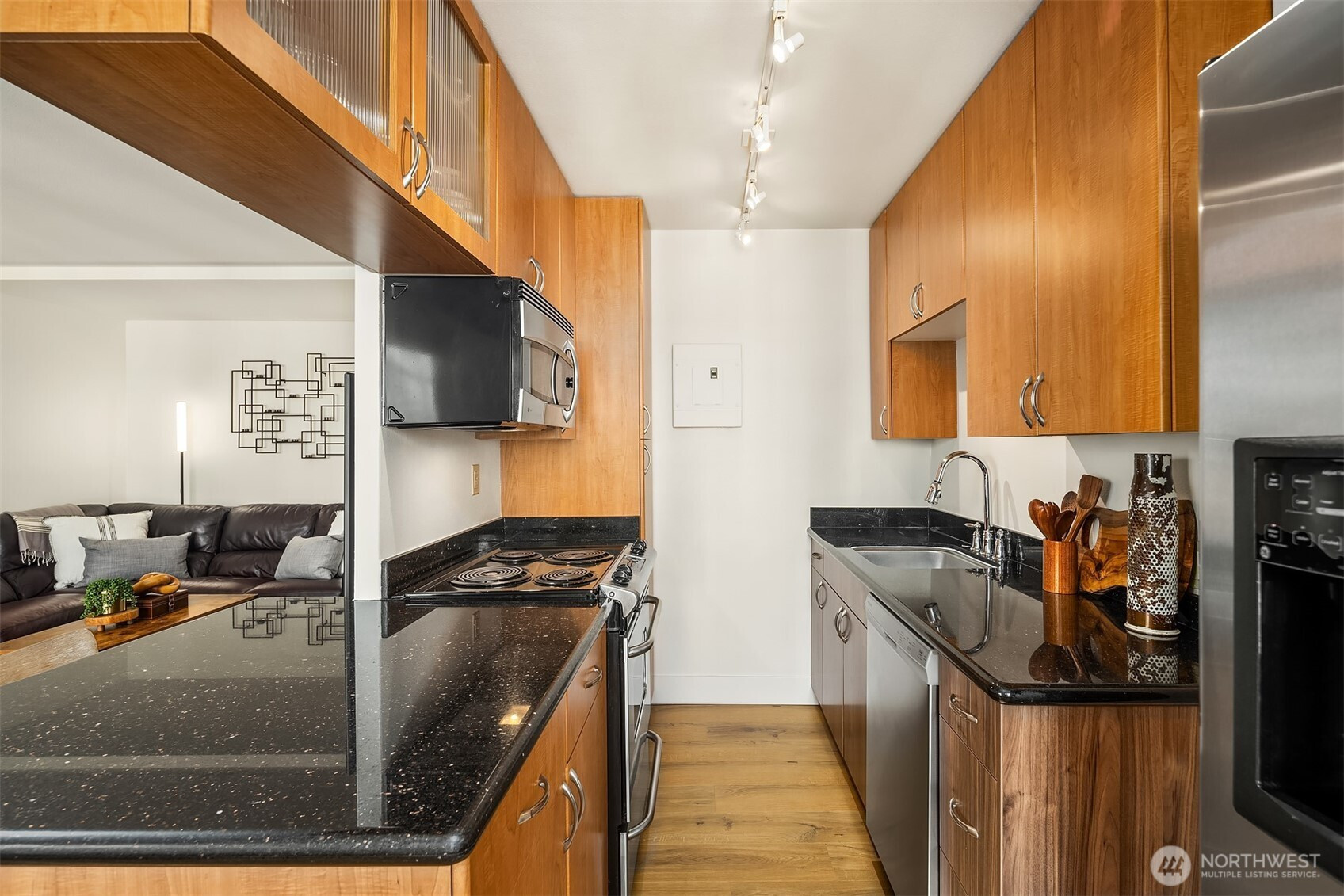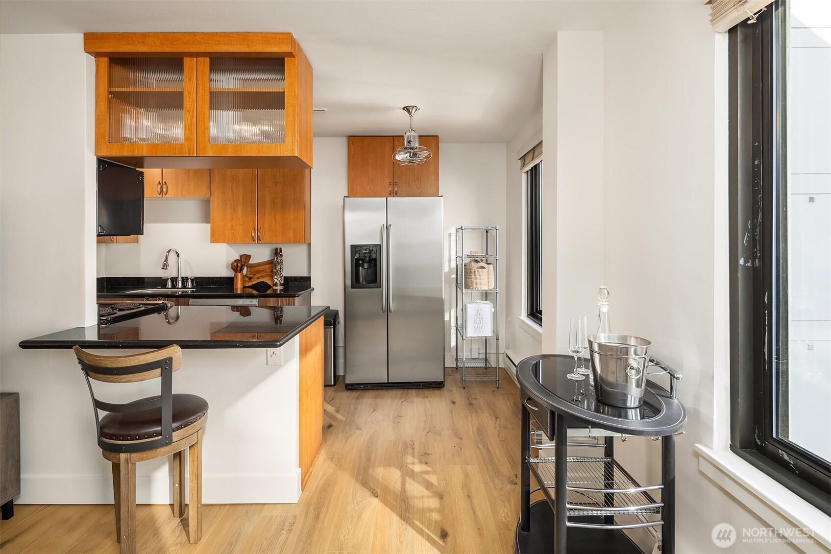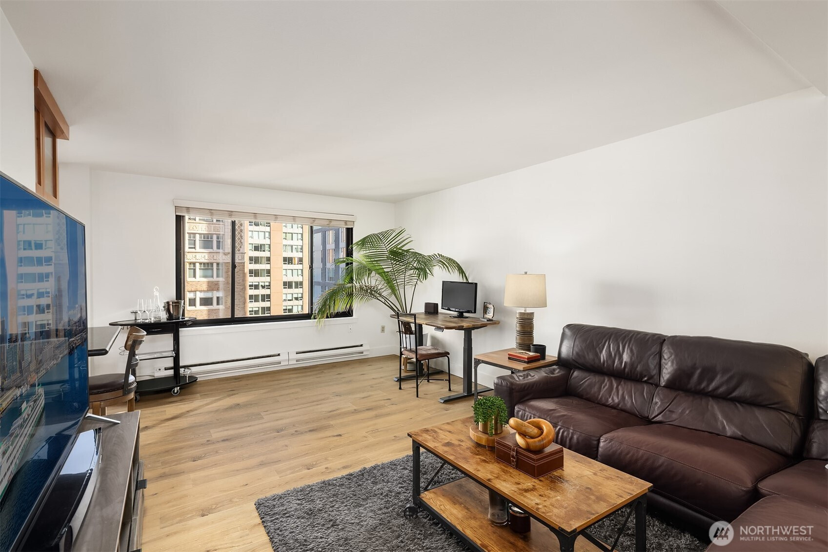 Rarely available spacious 700 square foot floorplan with parking in the Decatur Building, an iconic mid-century gem. The building’s steel and concrete design blends classic Art Deco with contemporary styling. Inside, oversized windows frame views of First Hill’s historic brick buildings while filling the home with natural light. The layout offers a generous living room, a dining area, an updated kitchen, and a large bedroom complete with built-ins and a walk-in closet. The large foyer includes both a linen and a coat closet. In addition to a basement bonus storage unit the building also has secured bike storage and easy parking on the main floor. The Decatur is known for its thoughtful amenities, including a full-time on-site manager, free laundry on each floor and a large typical Laundromat style room in the basement, fiber optic internet, and a rooftop gas grill with sweeping city and Mt. Rainier views. With a Walk Score of 99 and a Transit Score of 100, you’re minutes from Downtown, Capitol Hill, major medical centers, dining, parks, grocery and more. Currently rented through April. Inquire about a long-term tenant open to staying.